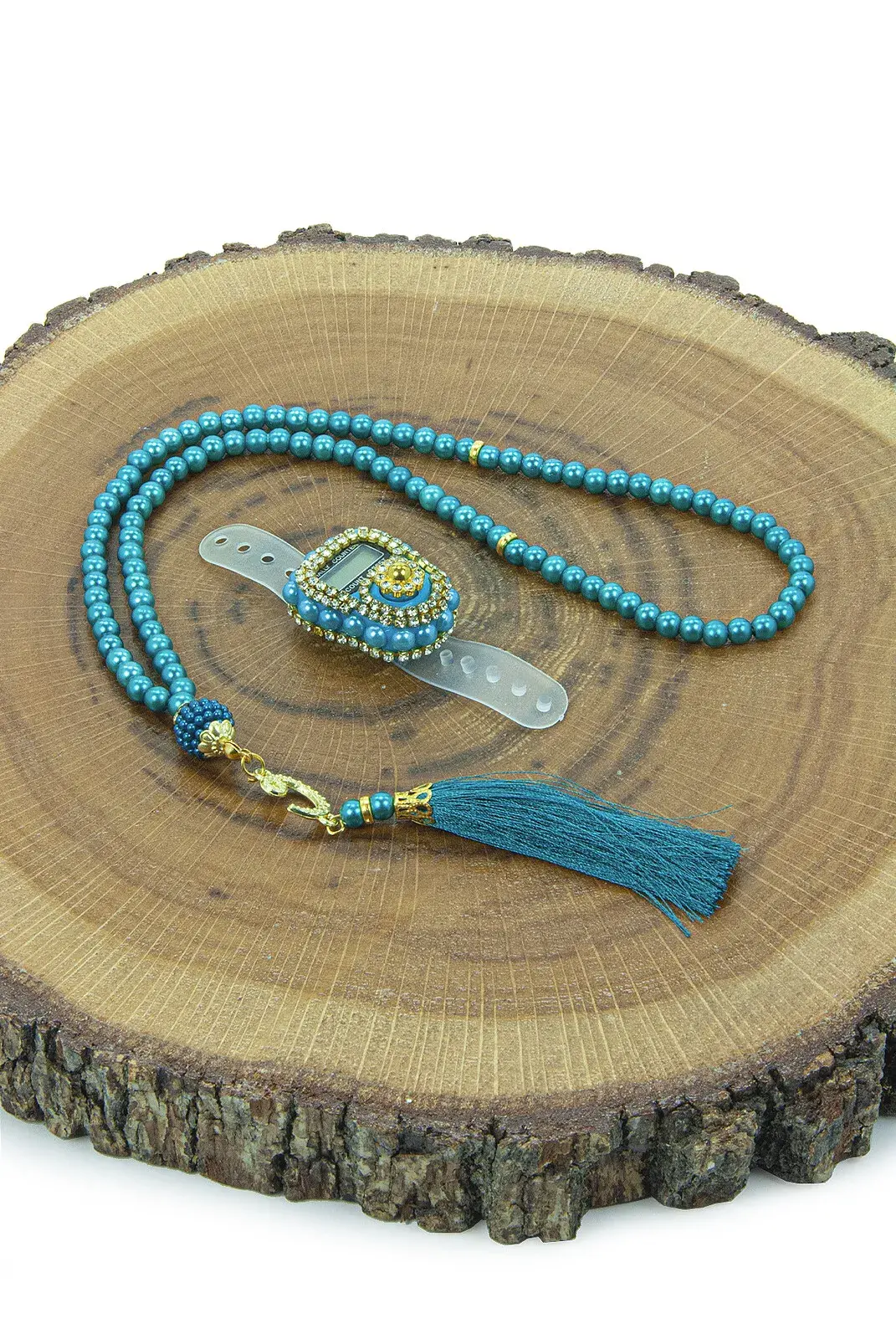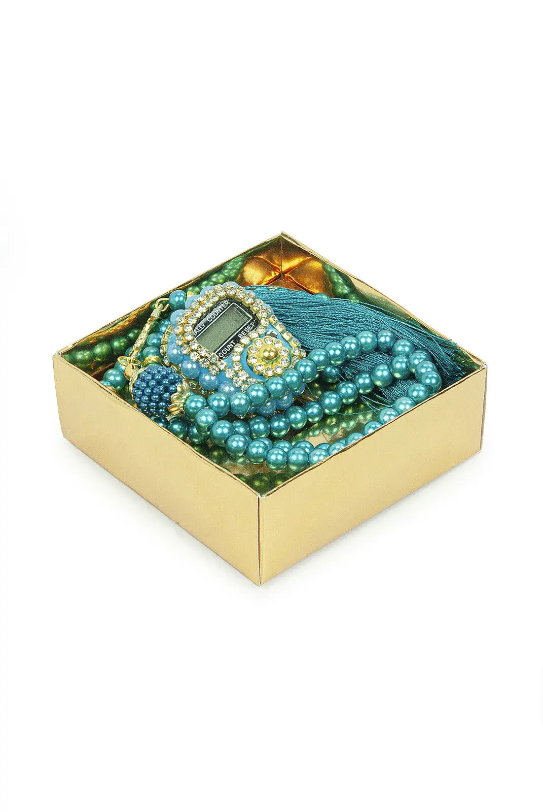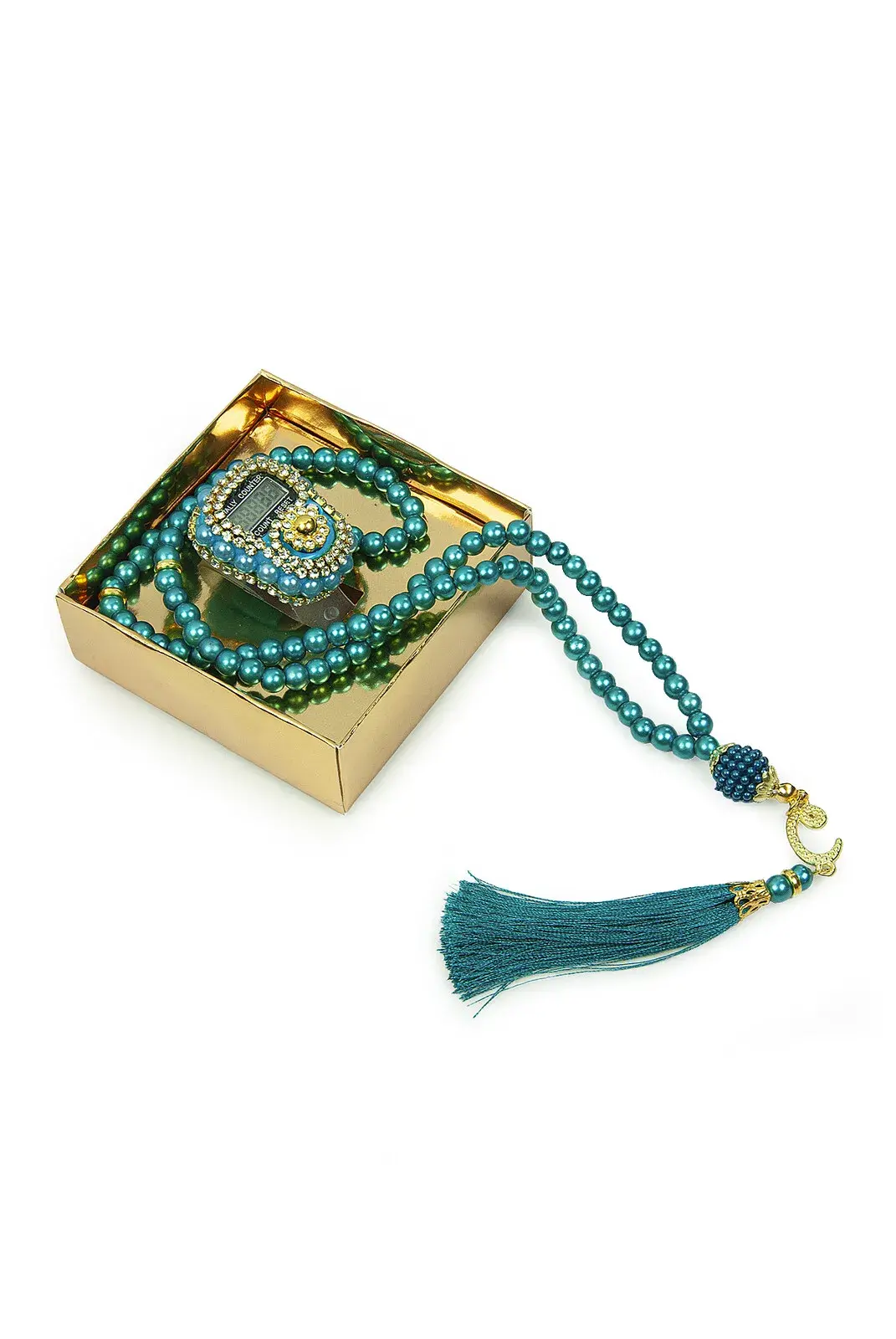 İsme Özel Kutulu İnci Tesbihli Taşlı Zikirmatik Mevlüt Hediyesi Petrol