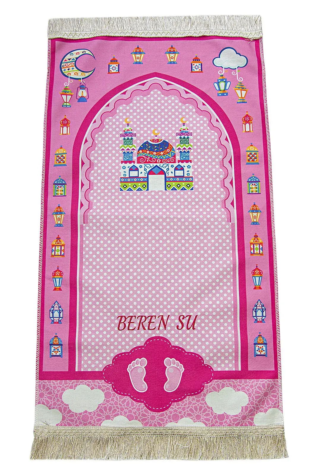 İsme Özel Nakışlı Ramazan Temalı Çocuk Seccadesi Pembe