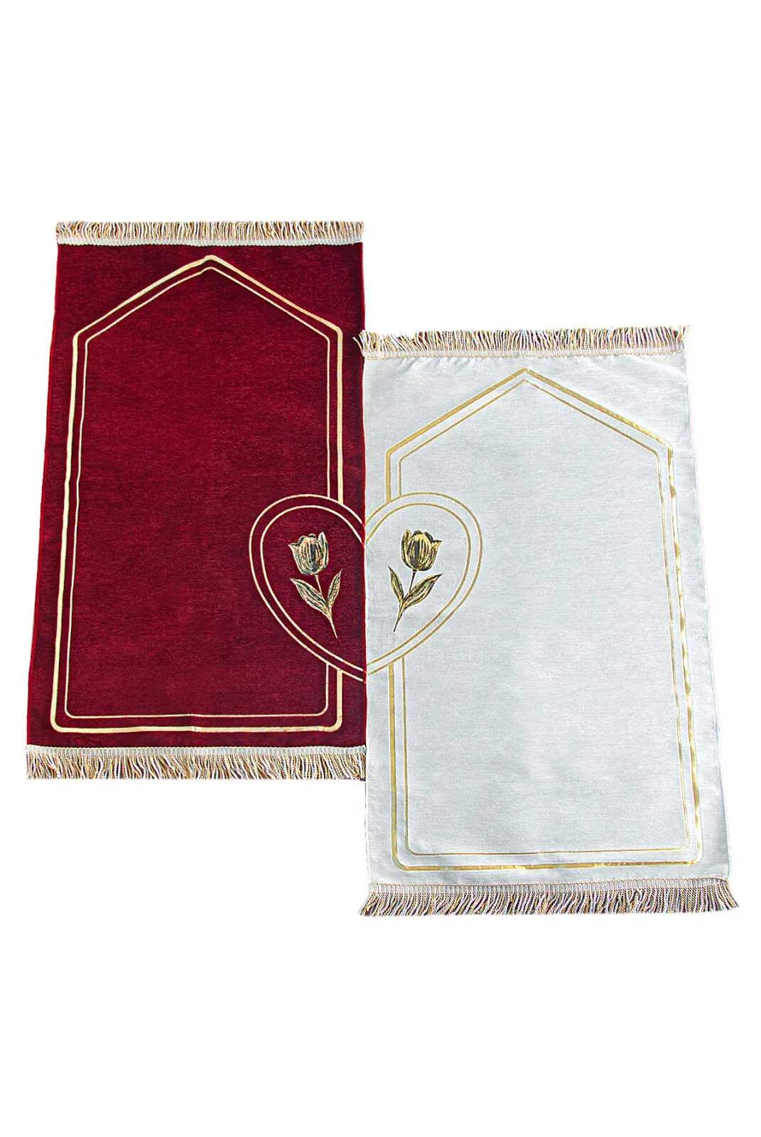 Zarif kalp desenleriyle süslenmiş, yumuşacık dokusuyla buluşan bu seccade, namazlarınızı kılarken size huzur verecek. Eşinize olan sevginizin yanı sıra Allah'a olan bağlılığınızı da ifade edecek.