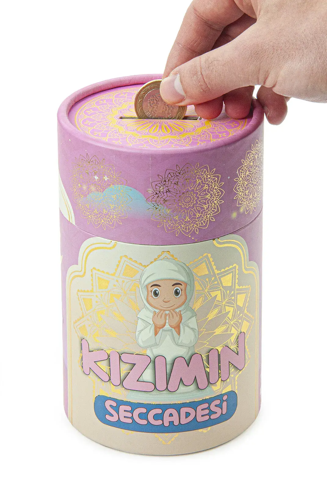 İsme Özel Nakışlı Çocuk Seccadesi Seti Silindir Kutulu Tesbihli Pembe