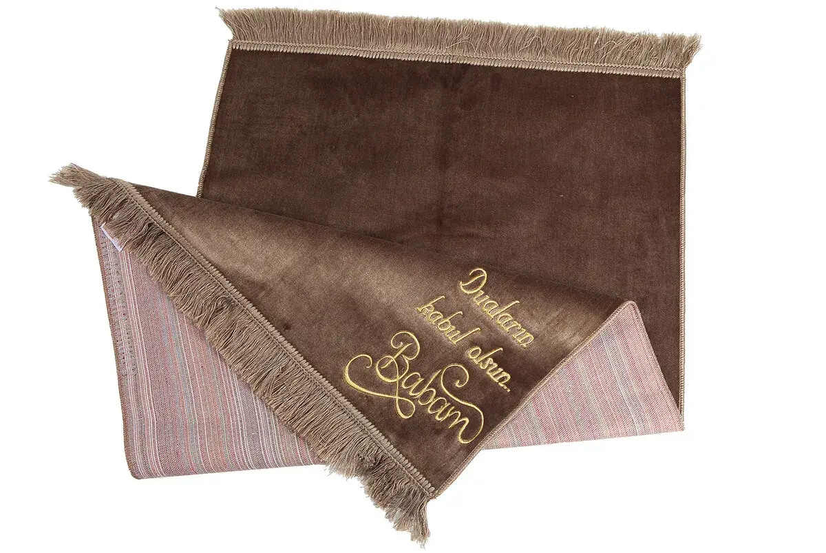 Seccade üzeine iplikten nakış işlemeli olarak yazı yazılmaktadır
