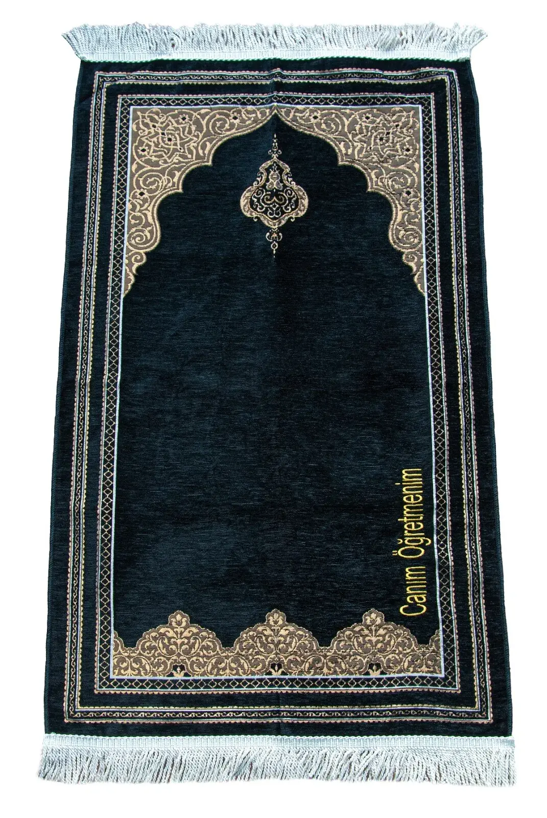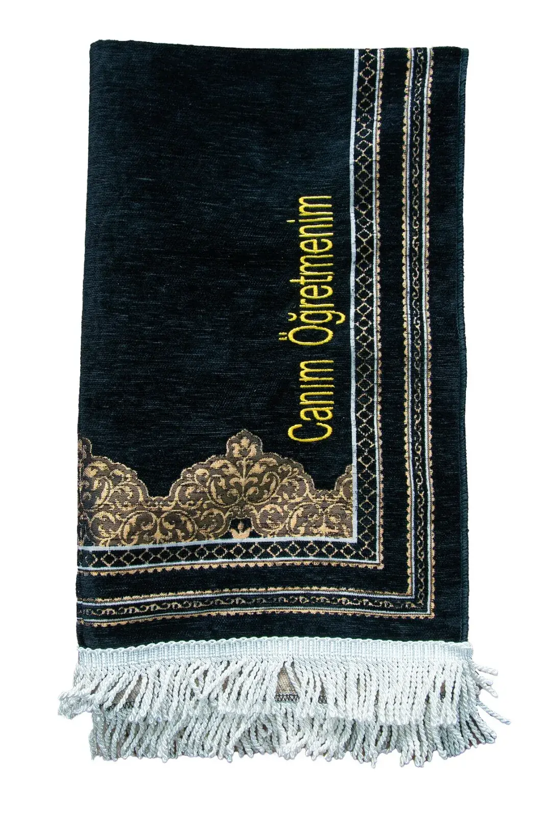 İsme Özel Öğretmenler Günü Hediyesi Siyah Şönil Seccade ve İsim Nakışlı Tasarım