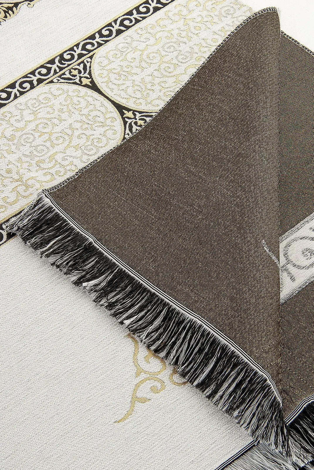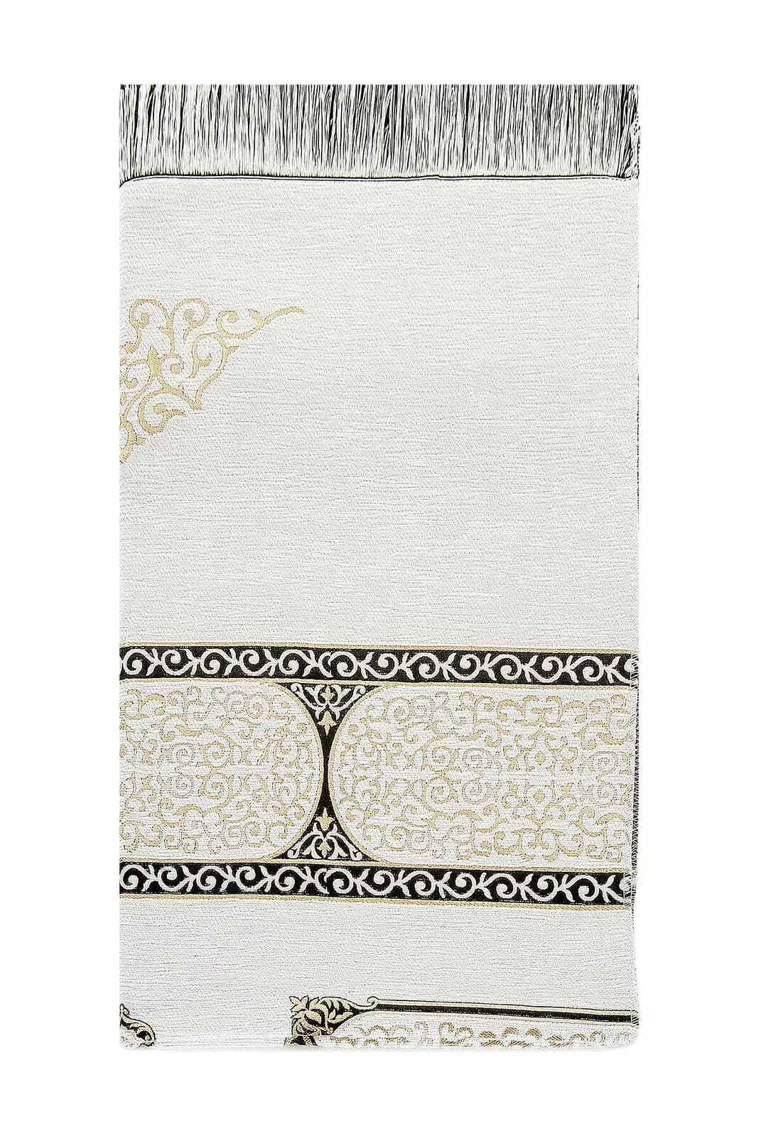 Kaaba Door Patterned Chenille Prayer Rug - White