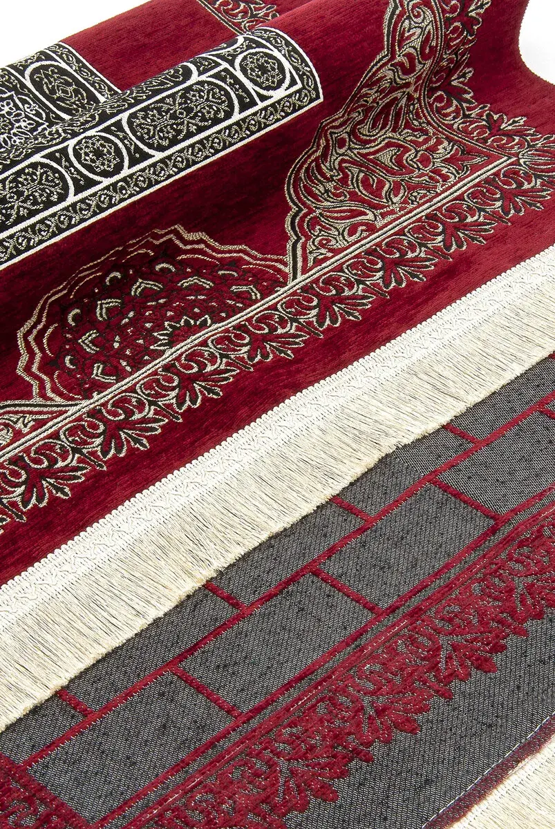Inspired by the cover of the Kaaba, it is a prayer rug named Kaaba Cover, specially produced to breathe the spiritual air and bring those sacred places to our minds.