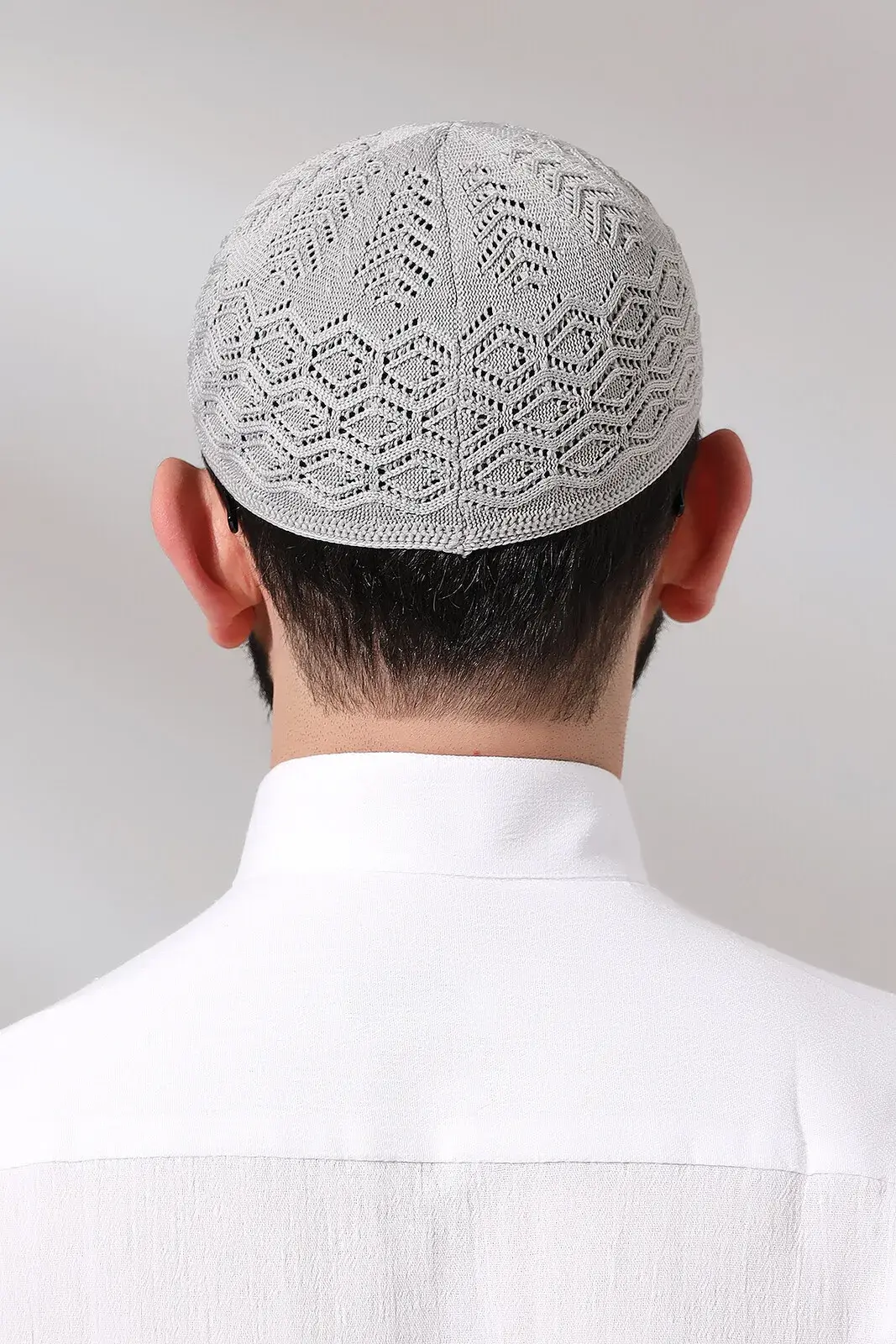 Kabartma Desen Örgülü Platinum Namaz Takkesi Gri