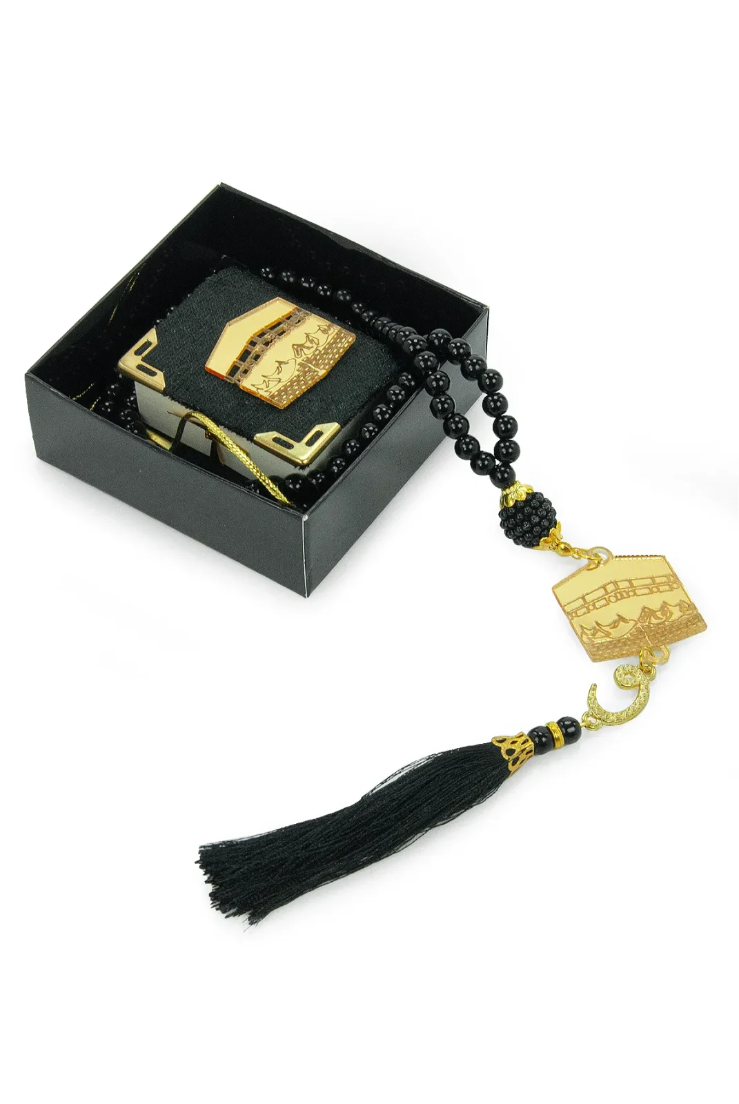 Kabe Desen Kutulu Pleksili İnci Tesbihli Kadife Kaplı Mini Kur’an Mevlüt Hediyesi – Siyah