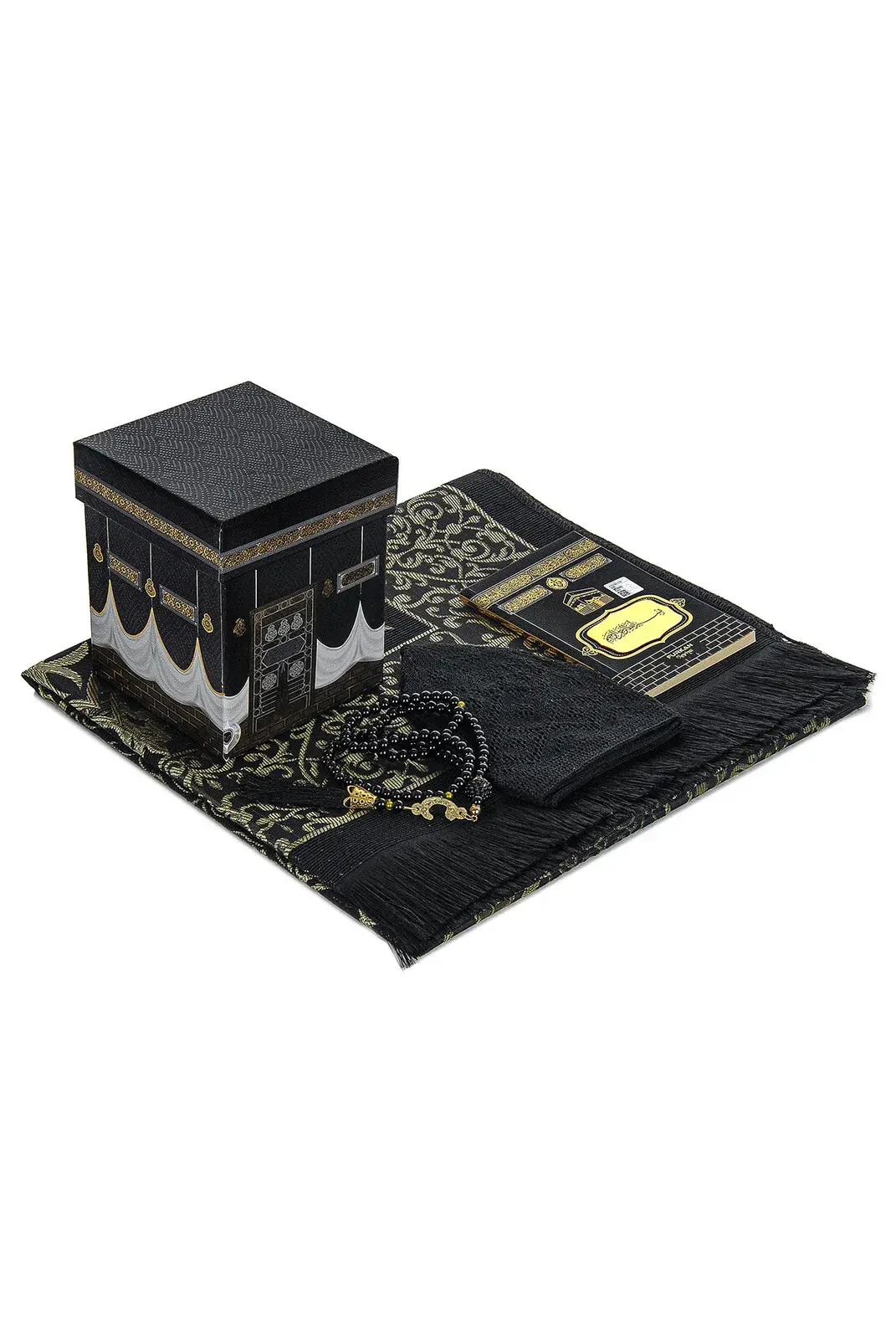 Kabe Desenli Özel Kutusunda Seccadeli Hediyelik Mevlüt Seti Siyah