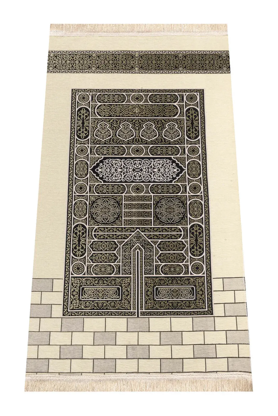 Kabe Kapıdsından esinlenilerek,manevi havayı solumak,aklımıza o mukaddes yerleri getirmek amacıyla özel olarak üretilmiş, tamamen dokuma Kabe Desenli isimli seccadedir.