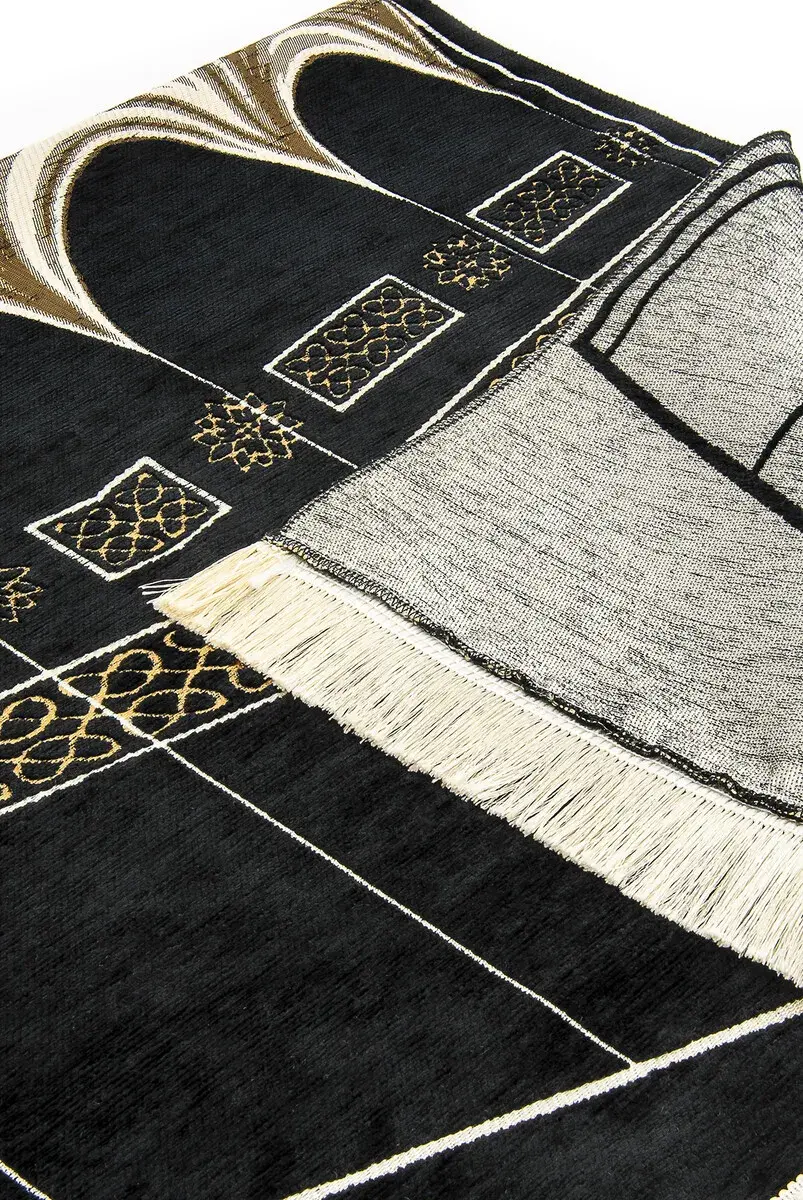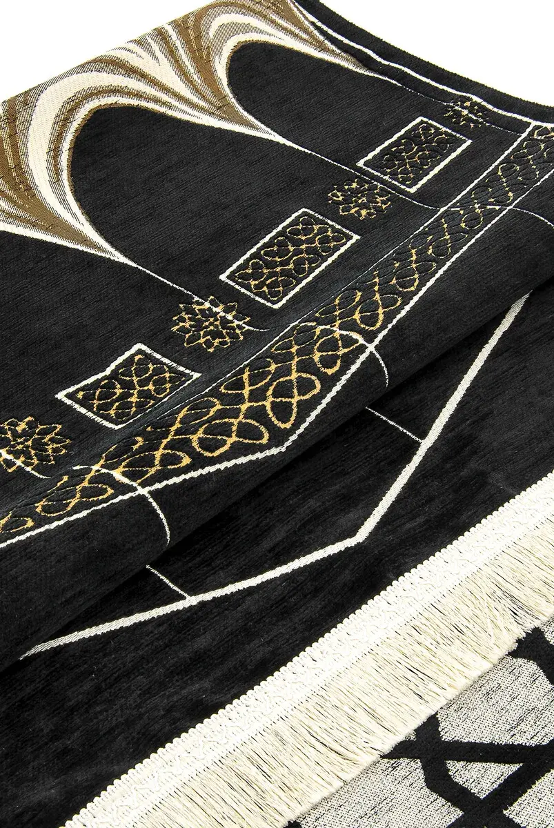 - Kabe örtüsünden esinlenilerek,manevi havayı solumak,aklımıza o mukaddes yerleri getirmek amacıyla özel olarak üretilmiş, tamamen dokuma KABE ÖRTÜSÜ isimli seccadedir.