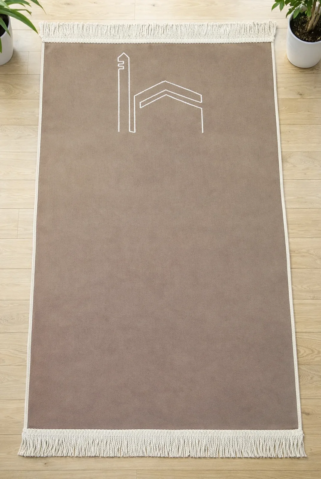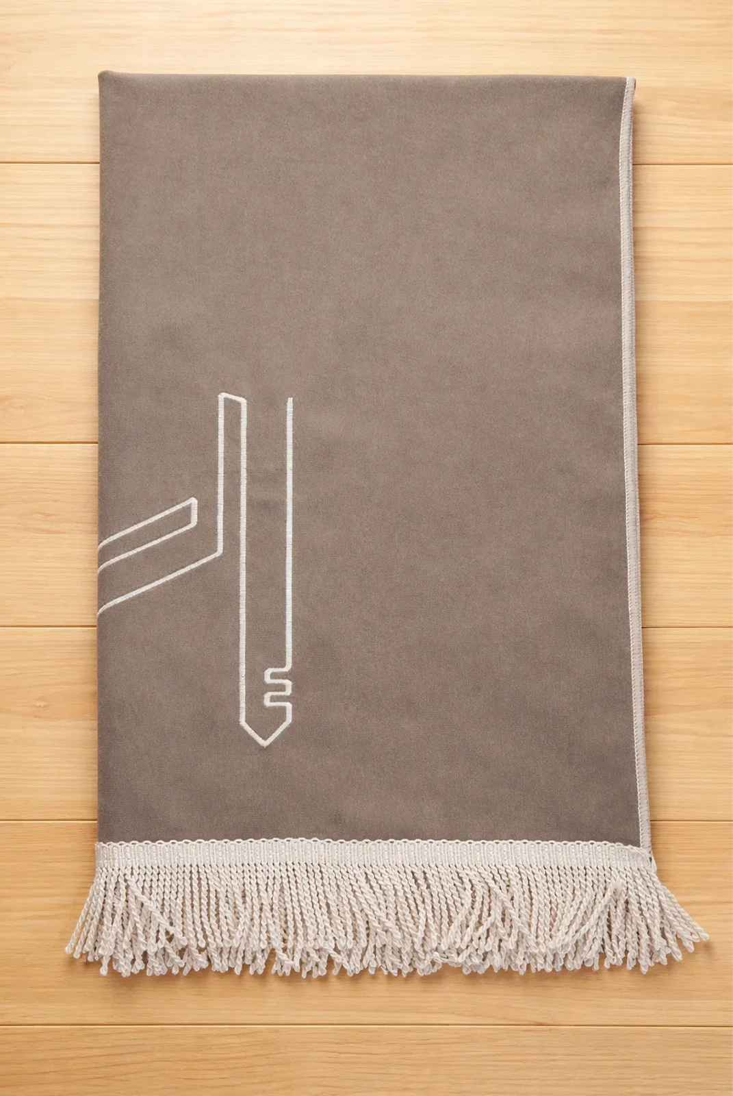 Kabe İşlemeli Lüks Kadife Seccade - Çeyizlik, Hac ve Umre Hediyelik Namazlık - Bej