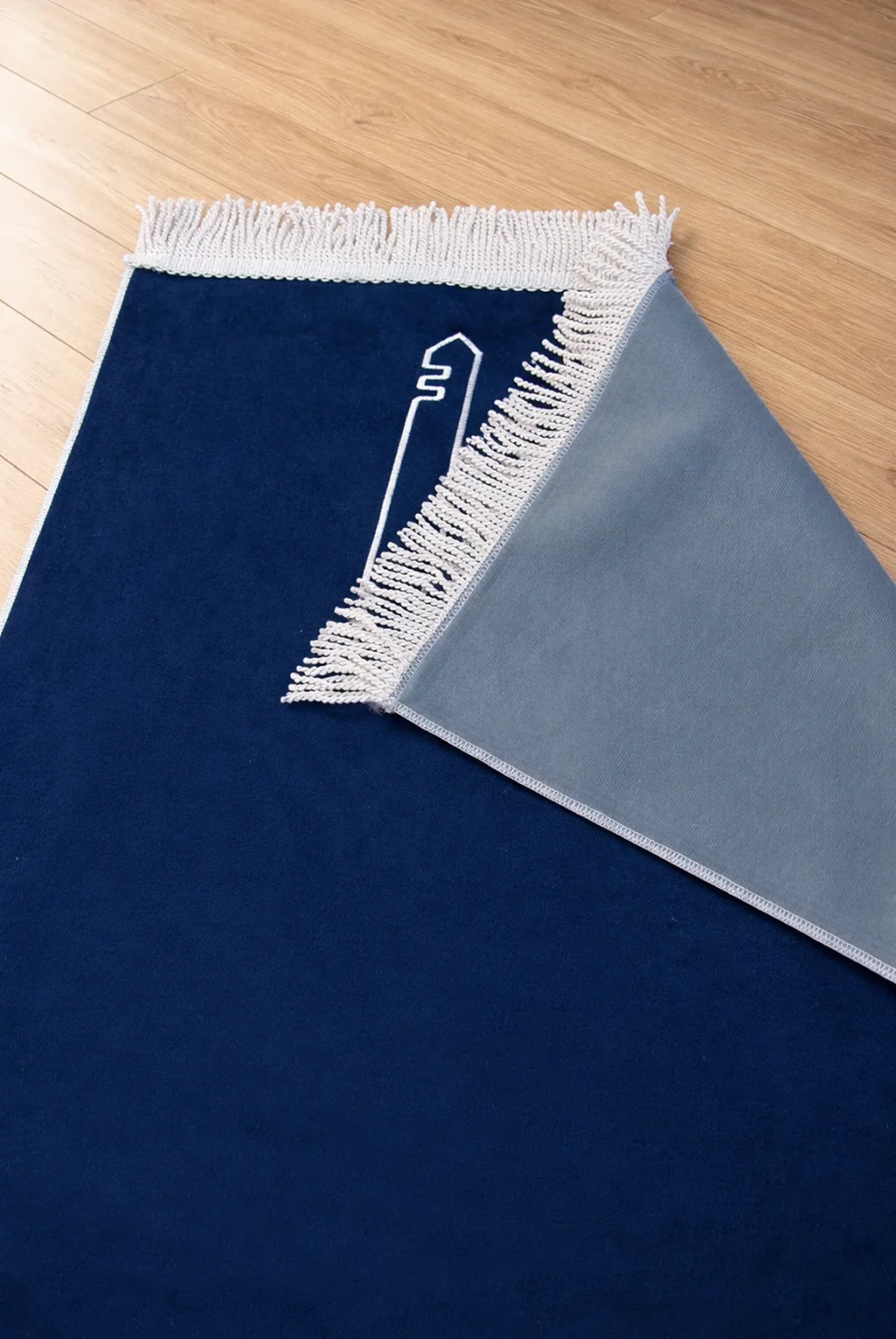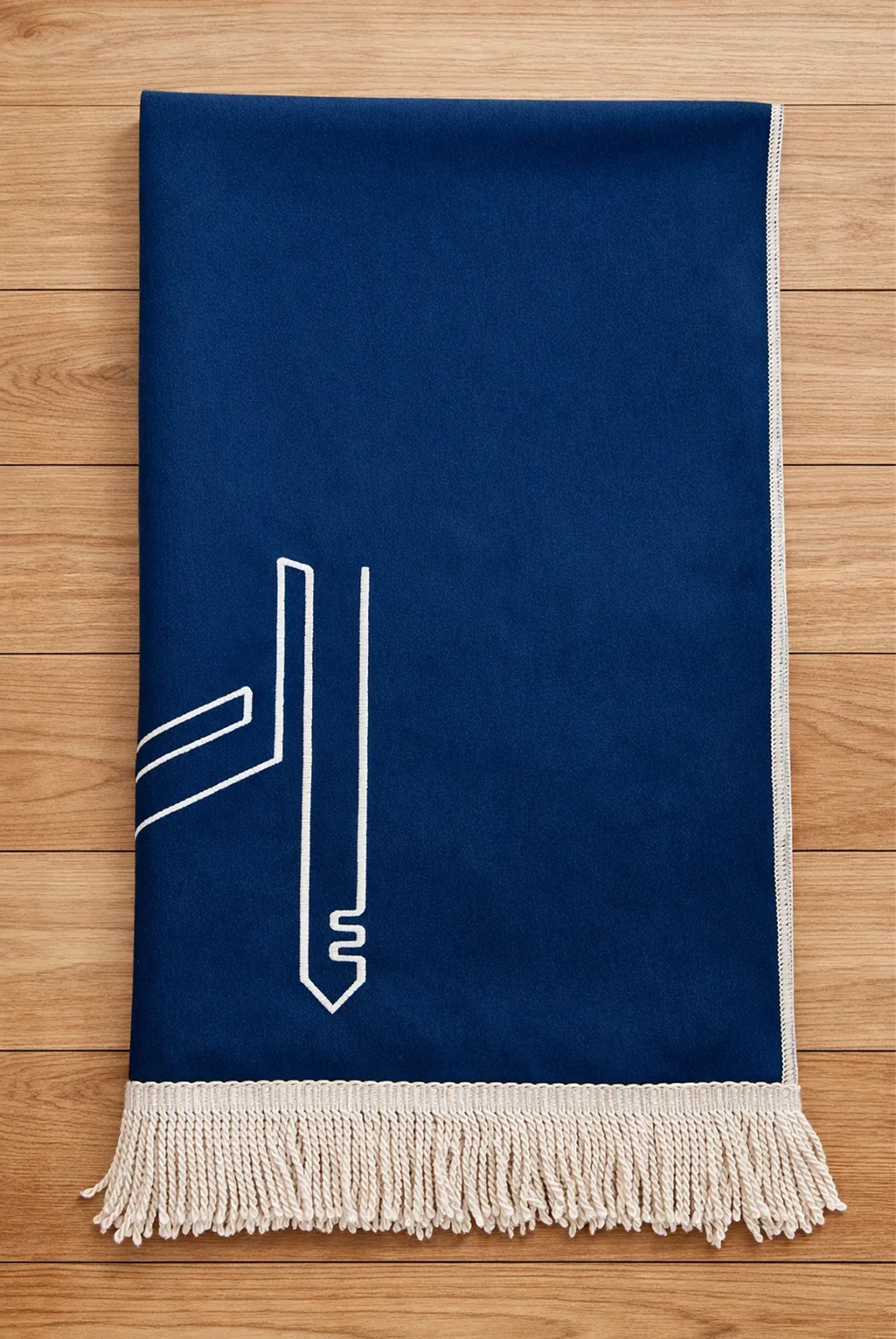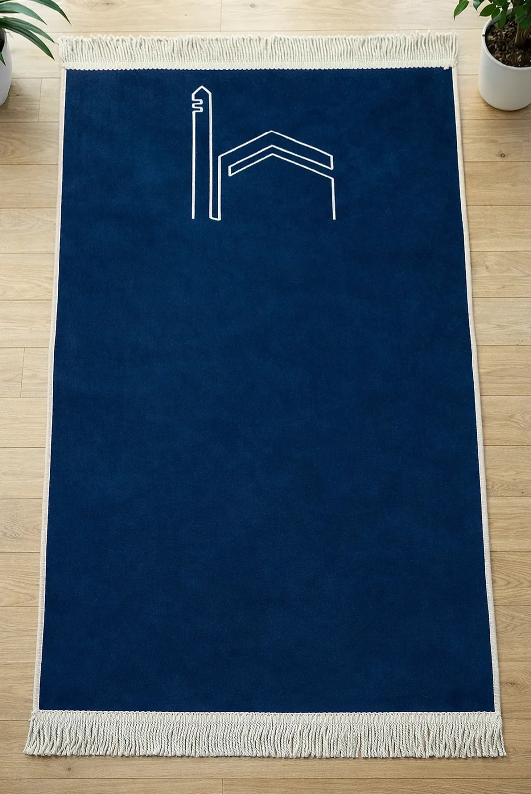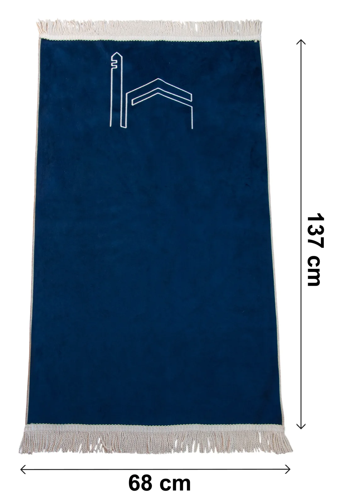 Kabe İşlemeli Lüks Kadife Seccade - Çeyizlik, Hac ve Umre Hediyelik Namazlık - Lacivert