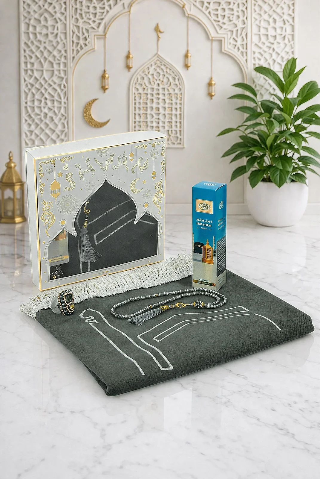 Gelince Haber VerÖzenle hazırlanan ürünlerimiz , hem günlük kullanım hem de özel günler için ideal bir hediyelik settir. İçeriğinde yer alan kabe işlemeli lük kadife seccade, inci tesbih, zikirmatik ve 150 ml alkolsüz Makamı İbrahim kokusu ile hem estetik hem de manevi değeri yüksek bir settir.