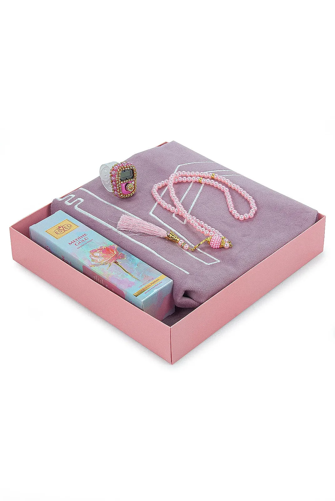 Gelince Haber VerÖzenle hazırlanan ürünlerimiz , hem günlük kullanım hem de özel günler için ideal bir hediyelik settir. İçeriğinde yer alan cami desenli seccade, inci tesbih, zikirmatik ve 150 ml alkolsüz medine gülü kokusu ile hem estetik hem de manevi değeri yüksek bir settir.