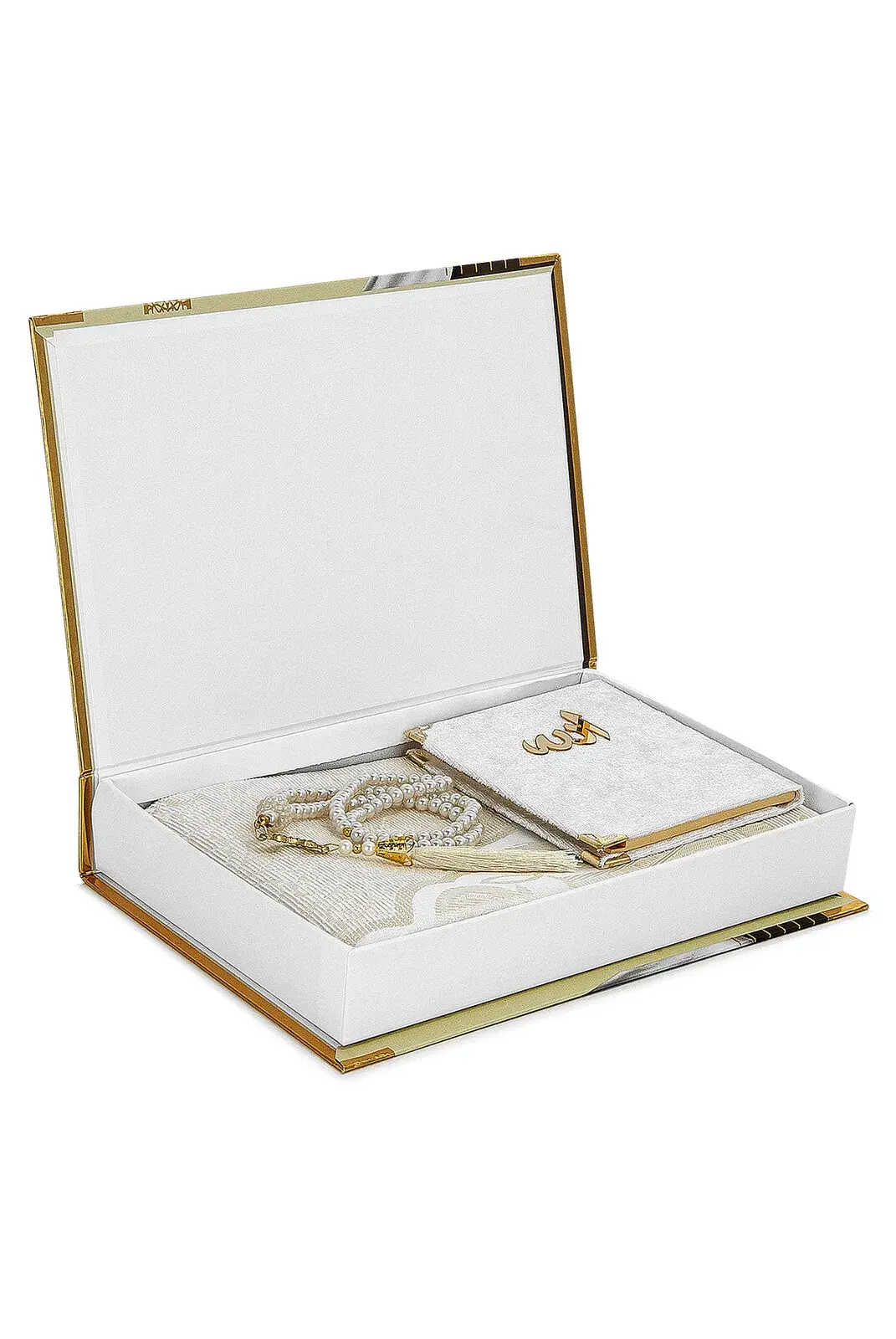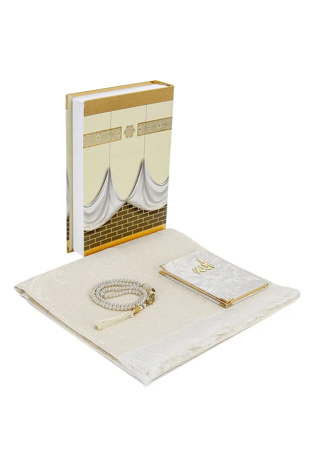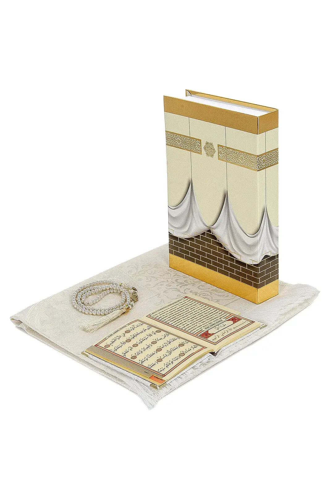 Kabe Kutulu ve Tafta Seccadeli Yasin Seti Krem Renk
