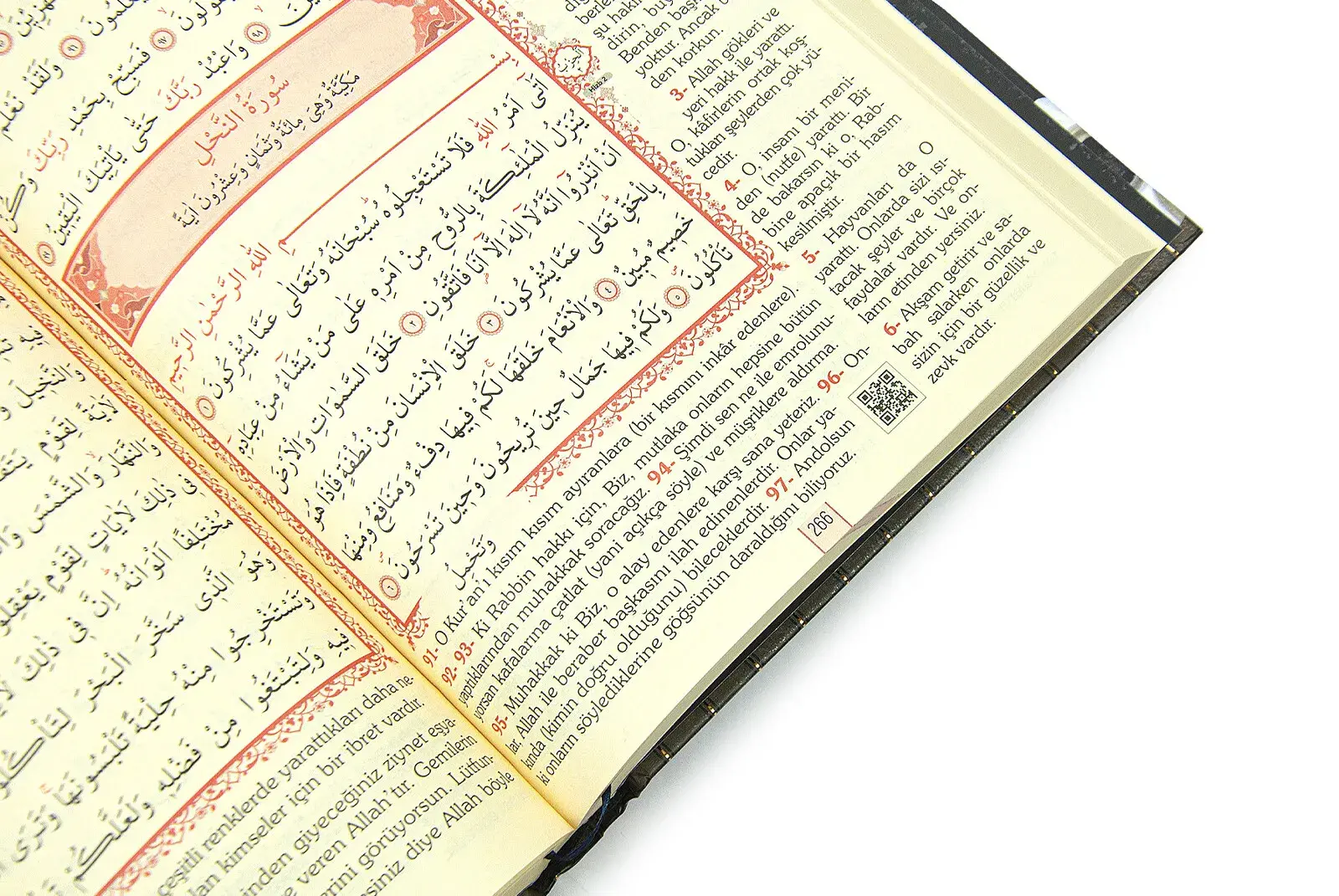 Kabe tasarımlı rahle boy Kur'an-ı Kerim, şıklığı ve işlevselliği bir araya getiriyor. Sıvama kapak tasarımı, selefon kapak, şamua kağıt iç baskı yapısıyla öne çıkıyor. Bu özel Kur'an, bilgisayar hatlı 627 sayfasıyla işlevsellik, yan kağıt detayı da kitaba dekoratif bir dokunuş katıyor. Ağırlığı 1.410 gram olan bu Rahle Boy Kur'an, Diyanet İşleri Başkanlığı onaylı ve mühürlüdür. Sesli QR kod teknolojisi, içerdiği meal ve fihris ile kullanıcı deneyimini zenginleştiriyor. Zarif tasarımı ve Diyanet onayıyla güvenilir bir Kur'an kaynağı sunmaktadır..