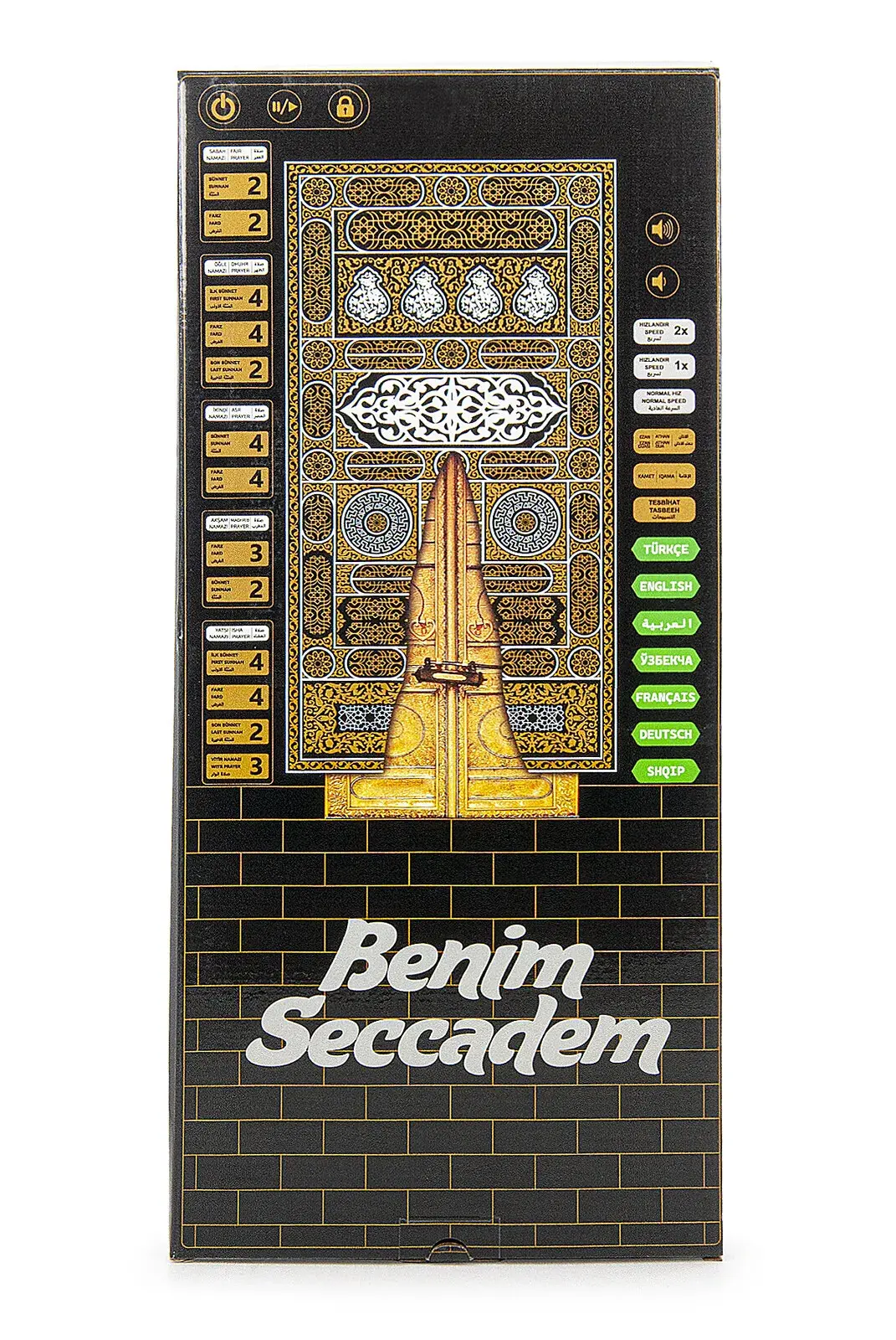 Çocukların namaz kılmayı öğrenmeleri için mükemmel bir yardımcı olan bu elektronik seccade, inovasyon ve geleneksel ibadetin birleşimiyle tasarlandı. Bu seccade, pembe rengiyle kız çocuklarına ve mavi rengiyle erkek çocuklarına özel olarak sunulmaktadır.