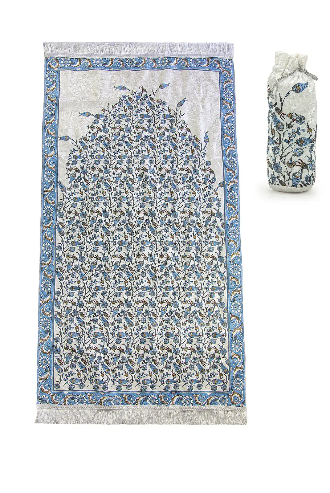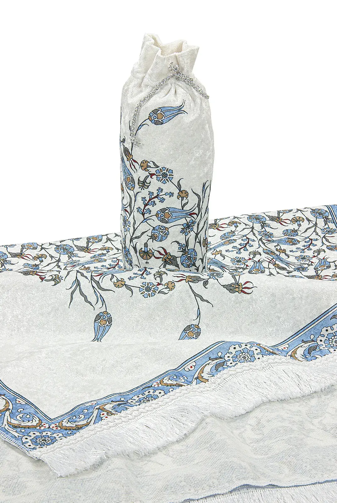 İpek Dokulu Taşıma Çantalı Lale İşlemeli Seccade