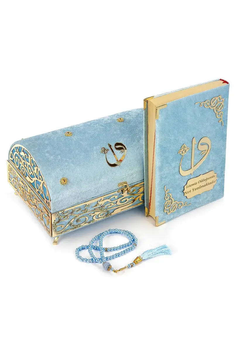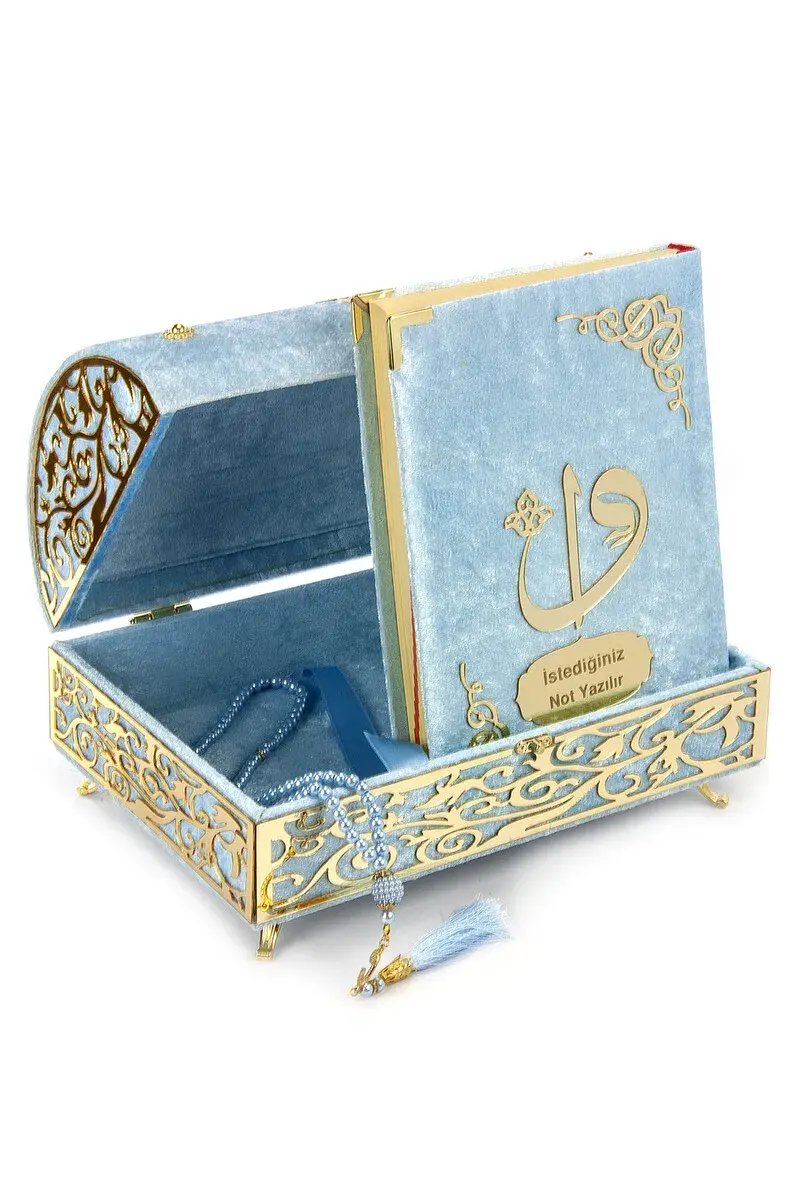 Sandık Ve Kuranı Kerim Aynı Renk Kadife Kumaş İle Kaplı olup Üzeri islami,osmanlı,arapça Elif Vav İle Süsleniştir