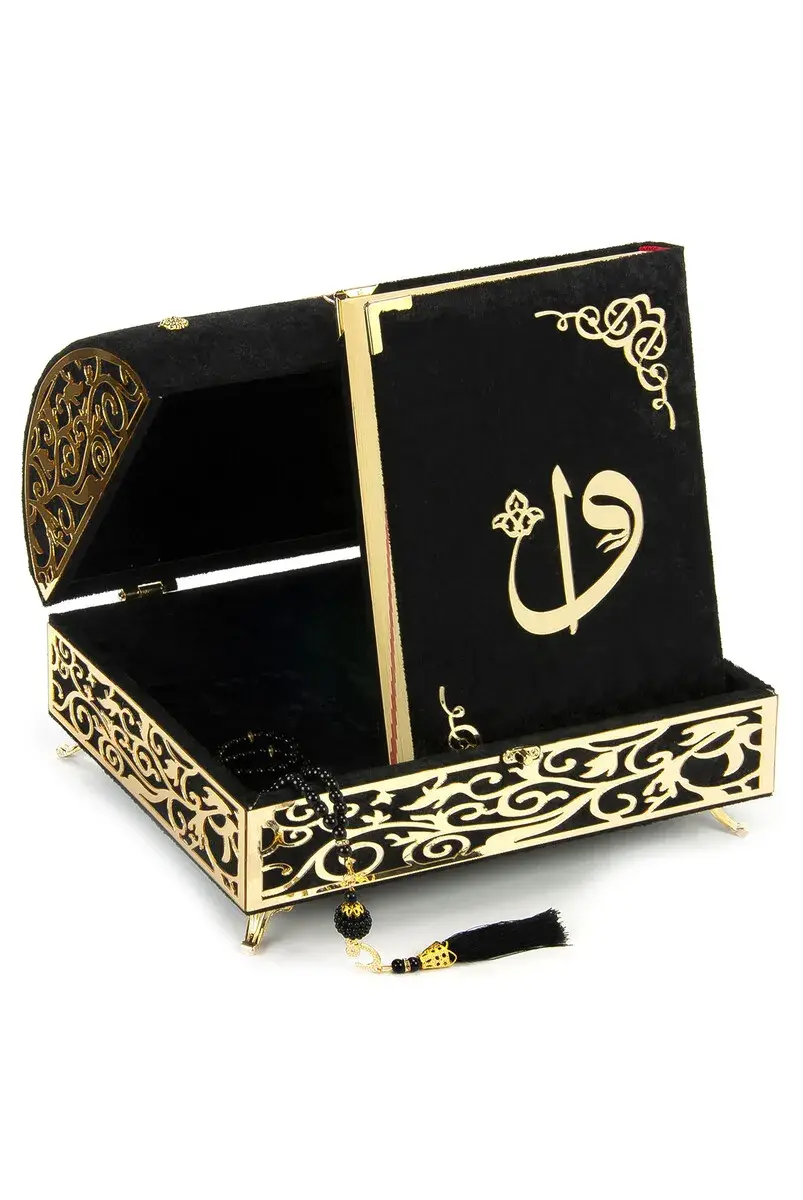 Sandık Ve Kuranı Kerim Aynı Renk Kadife Kumaş İle Kaplı olup Üzeri islami,osmanlı,arapça Elif Vav İle Süsleniştir