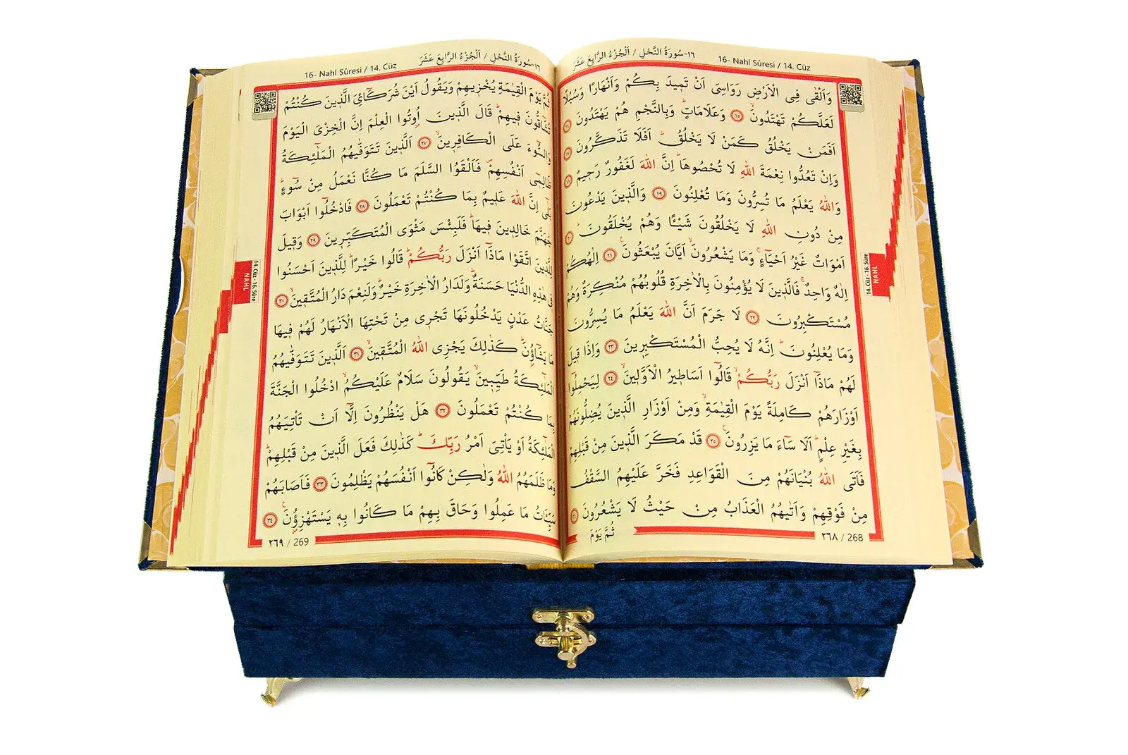 In order to keep the Quran, there is a space to put the Quran in the lidded chest.