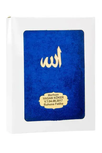Kadife Kaplı Yasin Kitabı - Çanta Boy - İsme Özel Plakalı - Kutulu - Lacivert Renk - İslami Dini Hediyeler