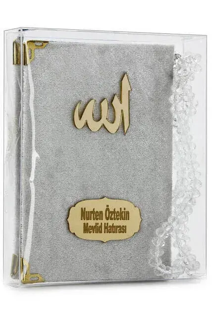 Kadife Kaplı Yasin Kitabı - Cep Boy - İsme Özel Plakalı - Tesbihli - Kutulu - Beyaz - Mevlüt Hediyeliği