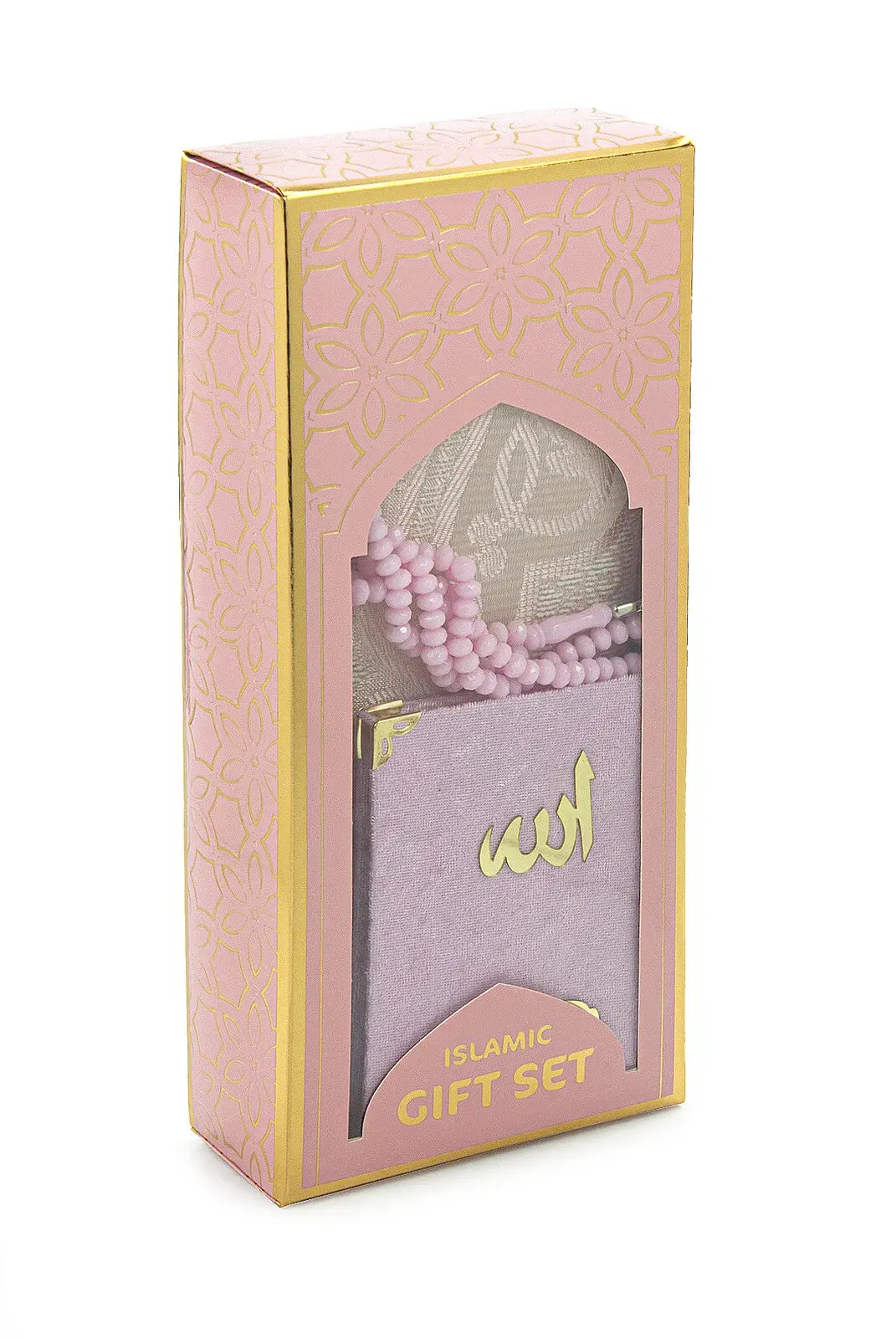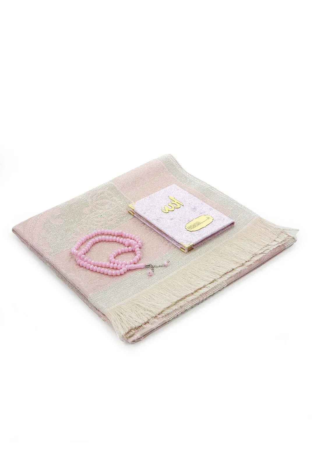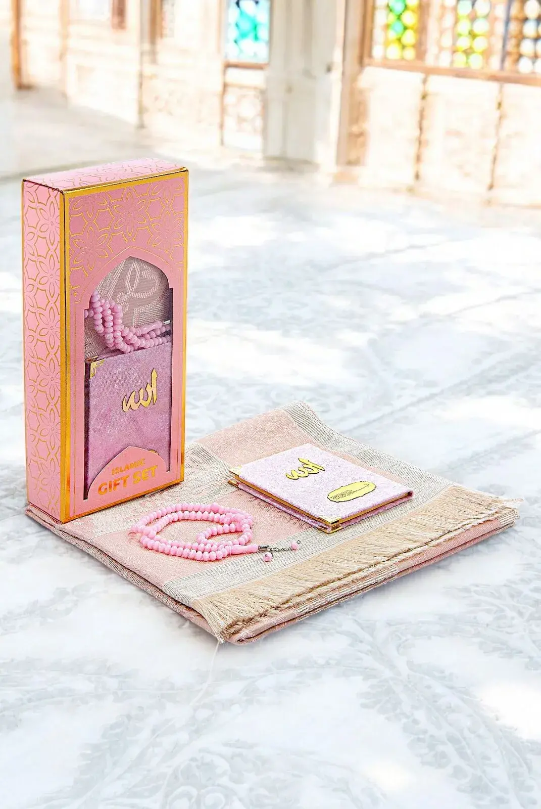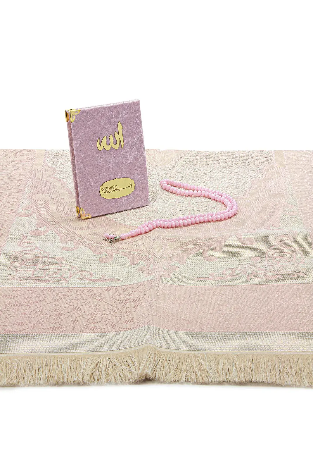 Çanta Boy Kadife Yasin Kitabı - Seccade - Tesbih ve Şeffaf Kutulu Mevlid Hediyeliği - Pembe