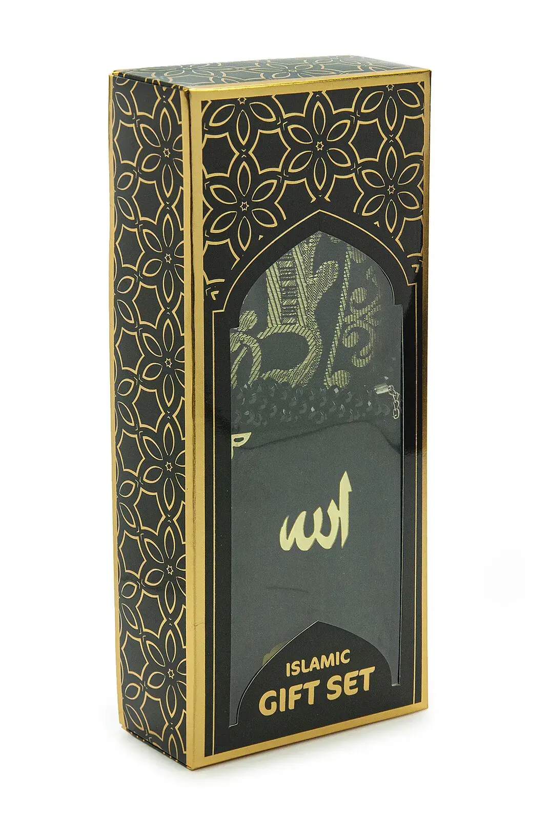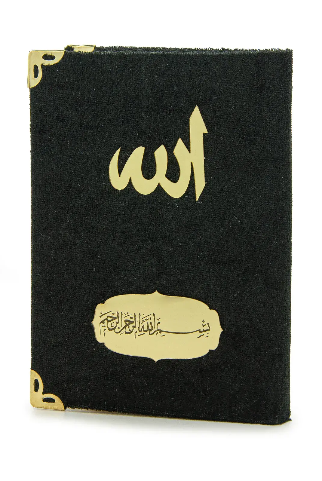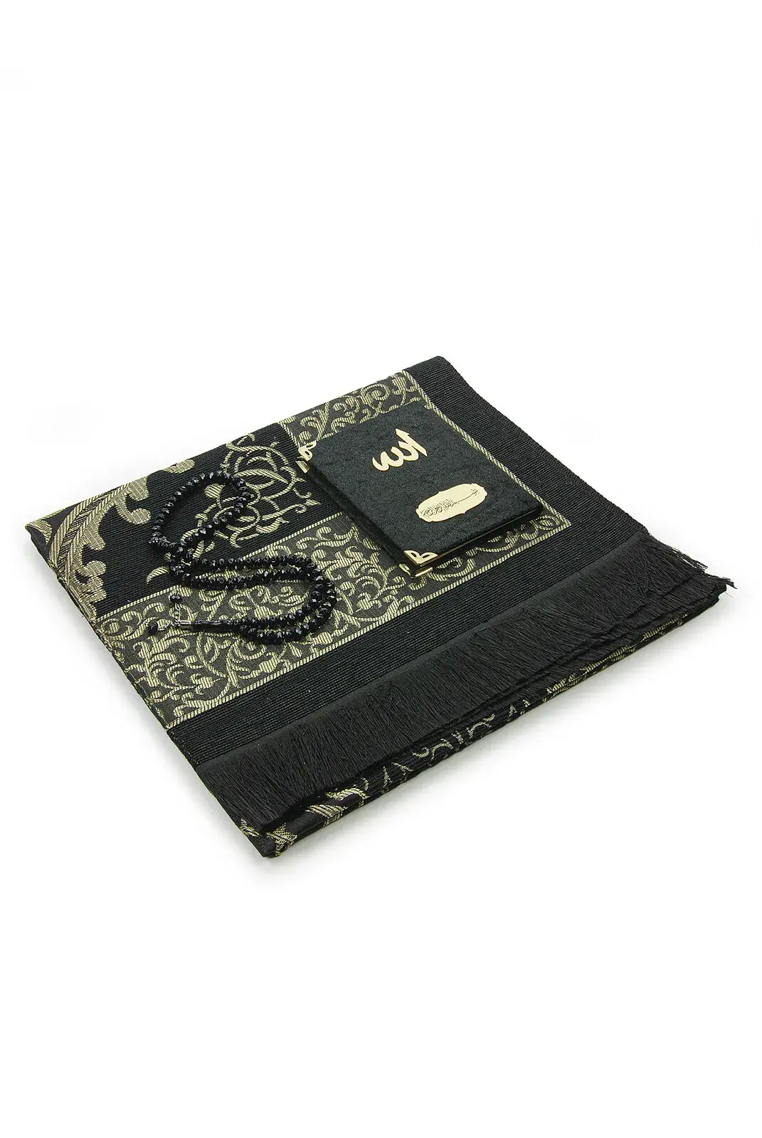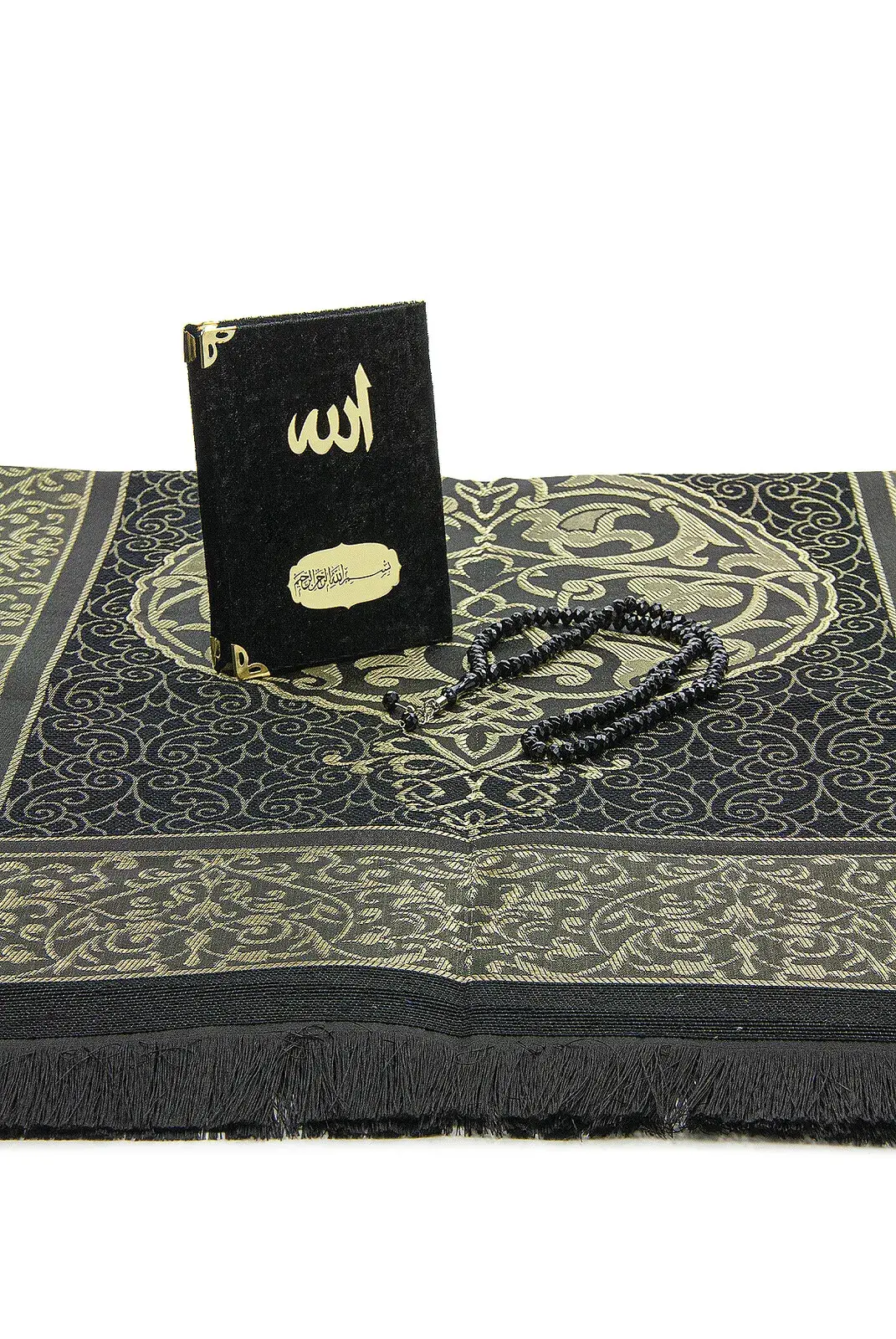 Çanta Boy Kadife Yasin Kitabı - Seccade - Tesbih ve Şeffaf Kutulu Mevlid Hediyeliği - Siyah