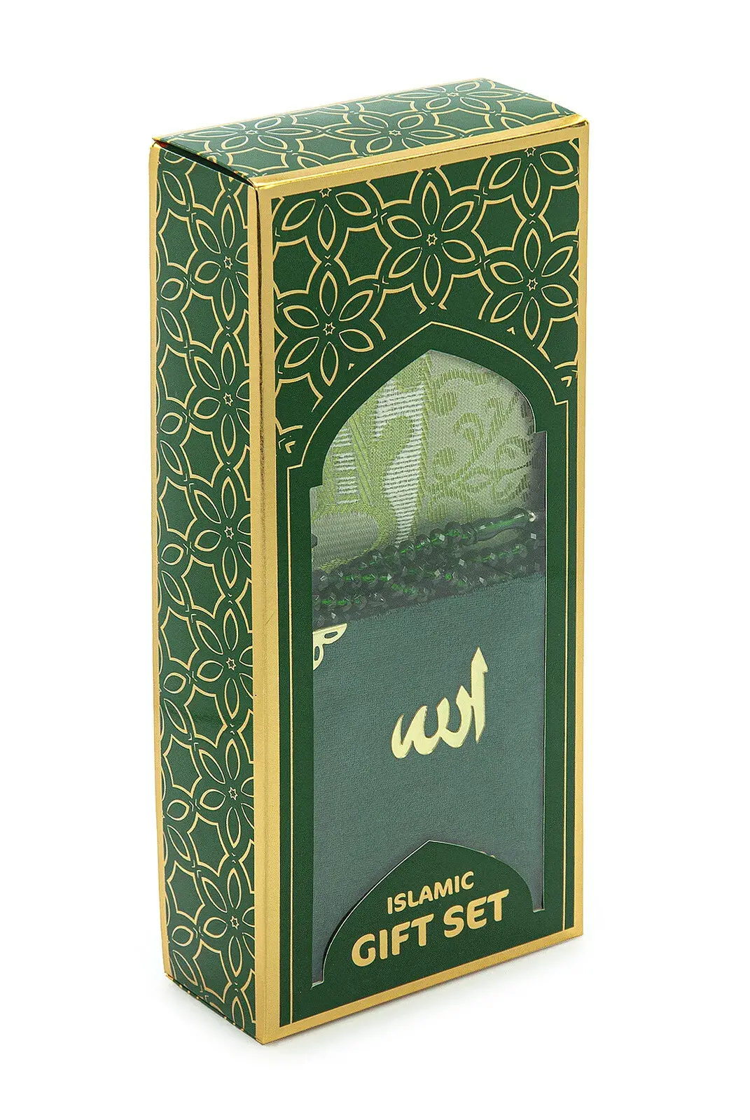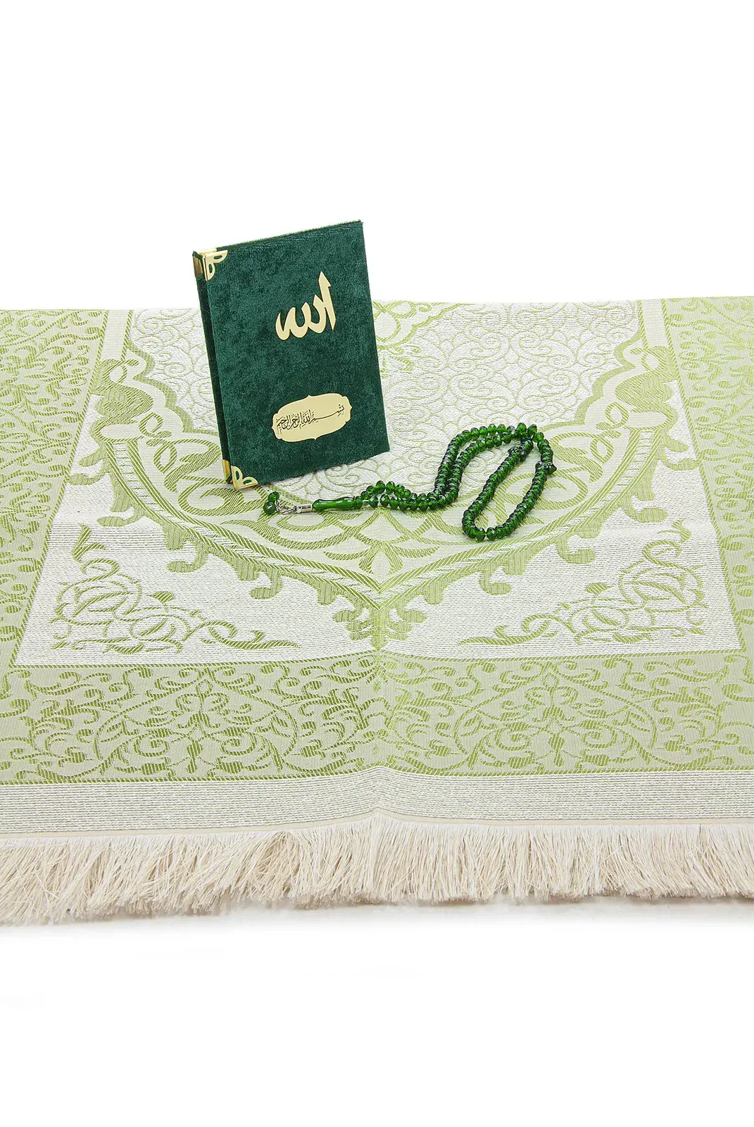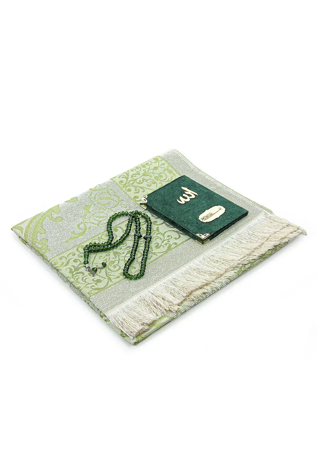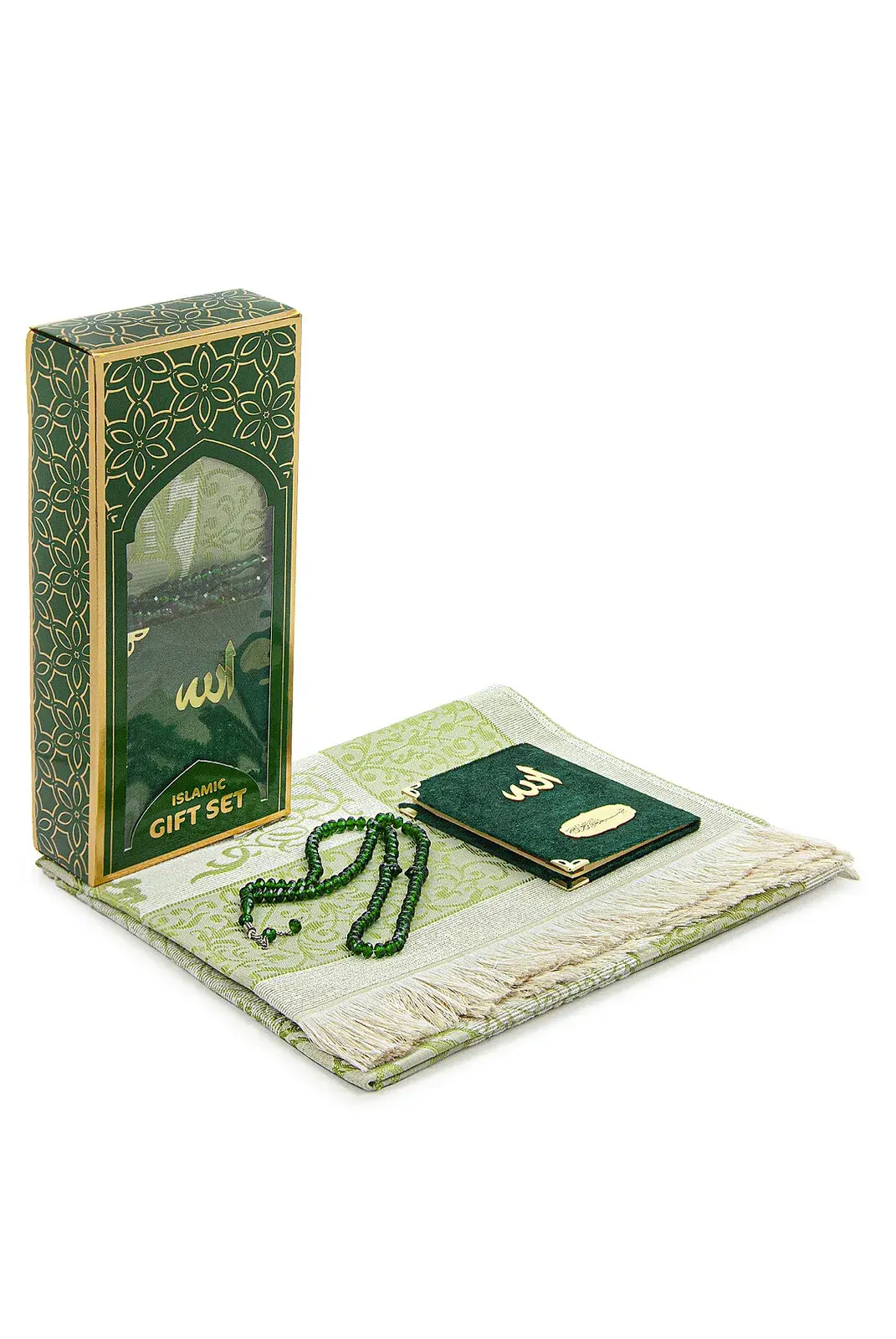 Çanta Boy Kadife Yasin Kitabı - Seccade - Tesbih ve Şeffaf Kutulu Mevlid Hediyeliği - Yeşil