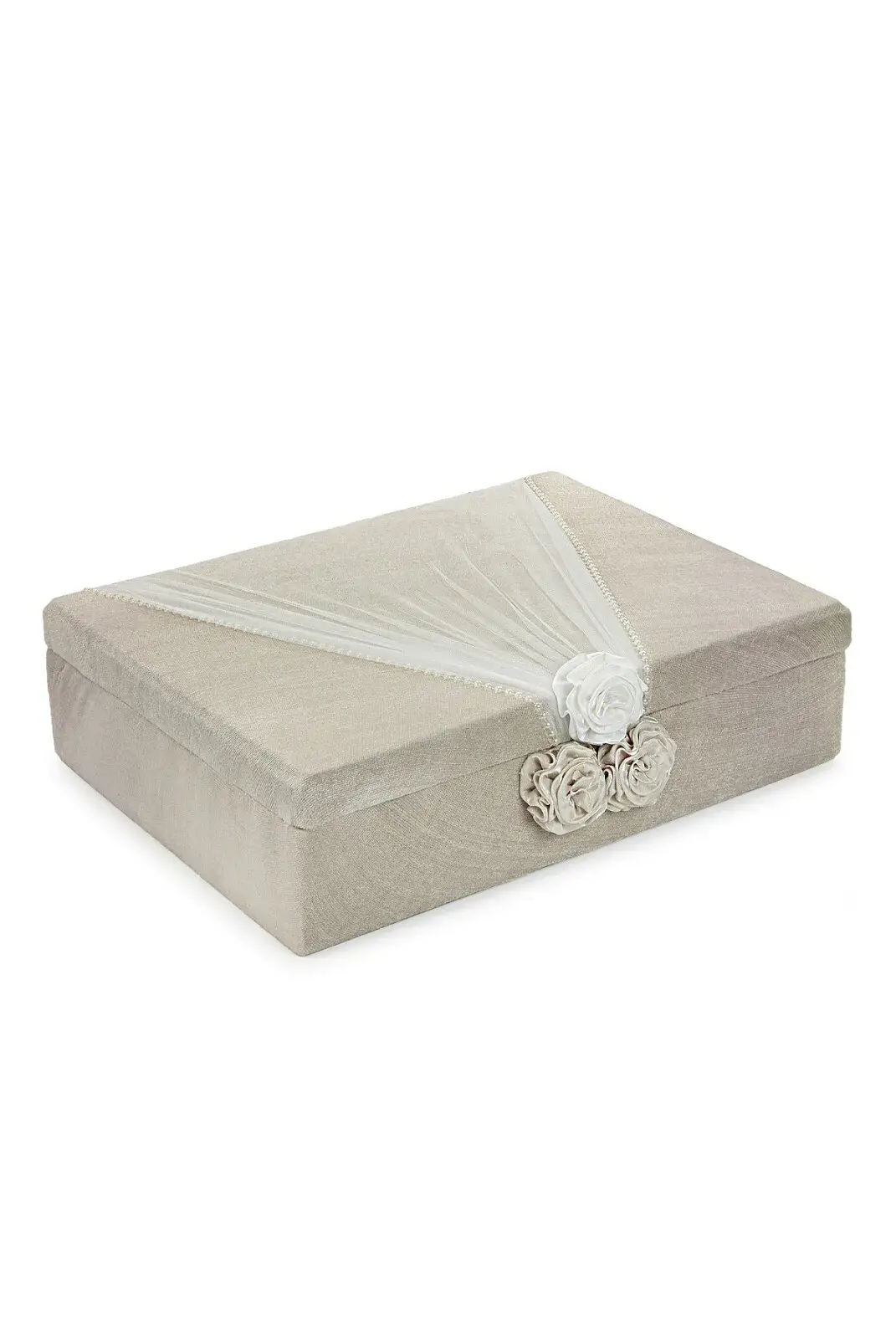 - 1 Adet Gül ve İnci Detaylı Kadife Çeyiz Sandığı (40 x 30 x 11 cm)