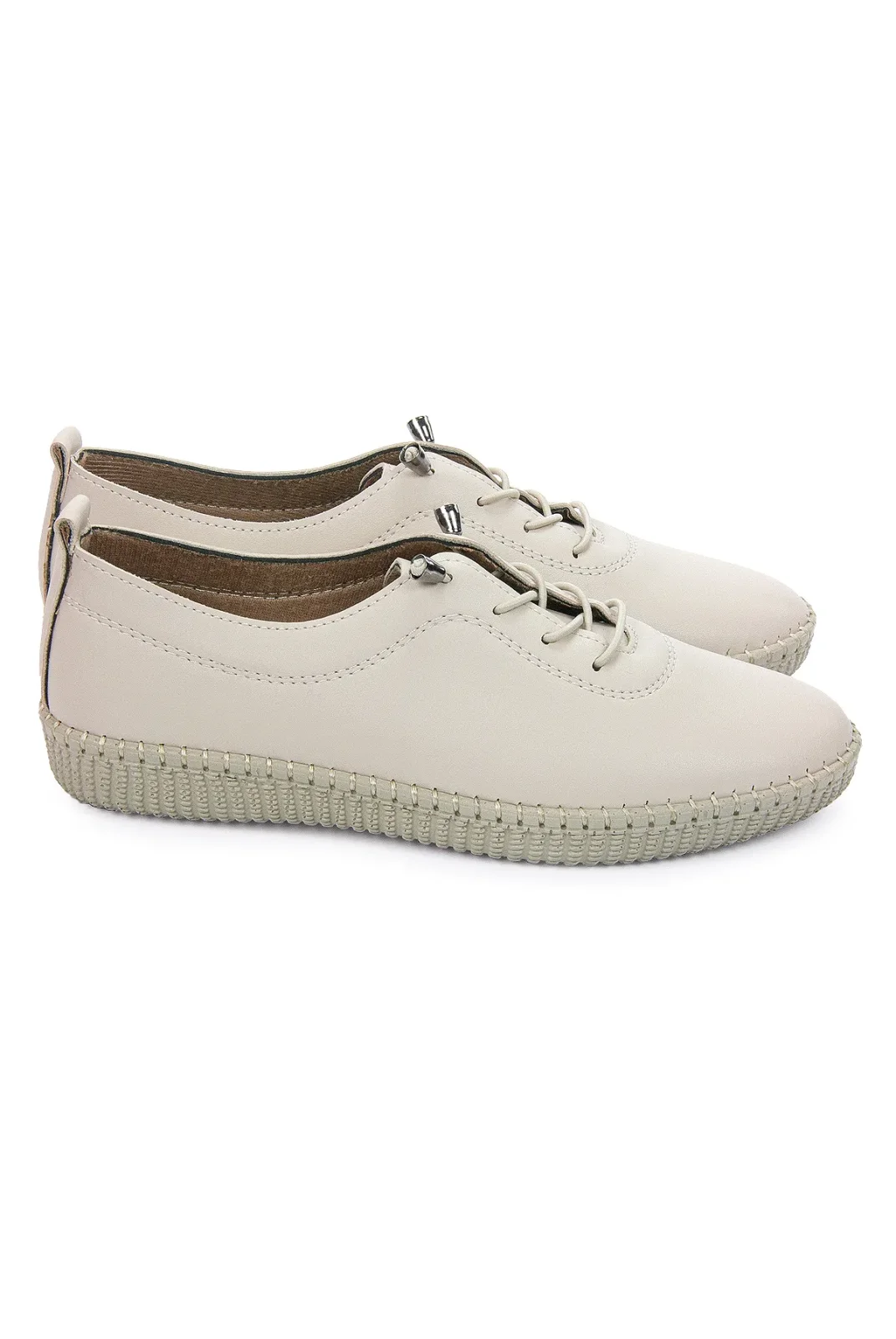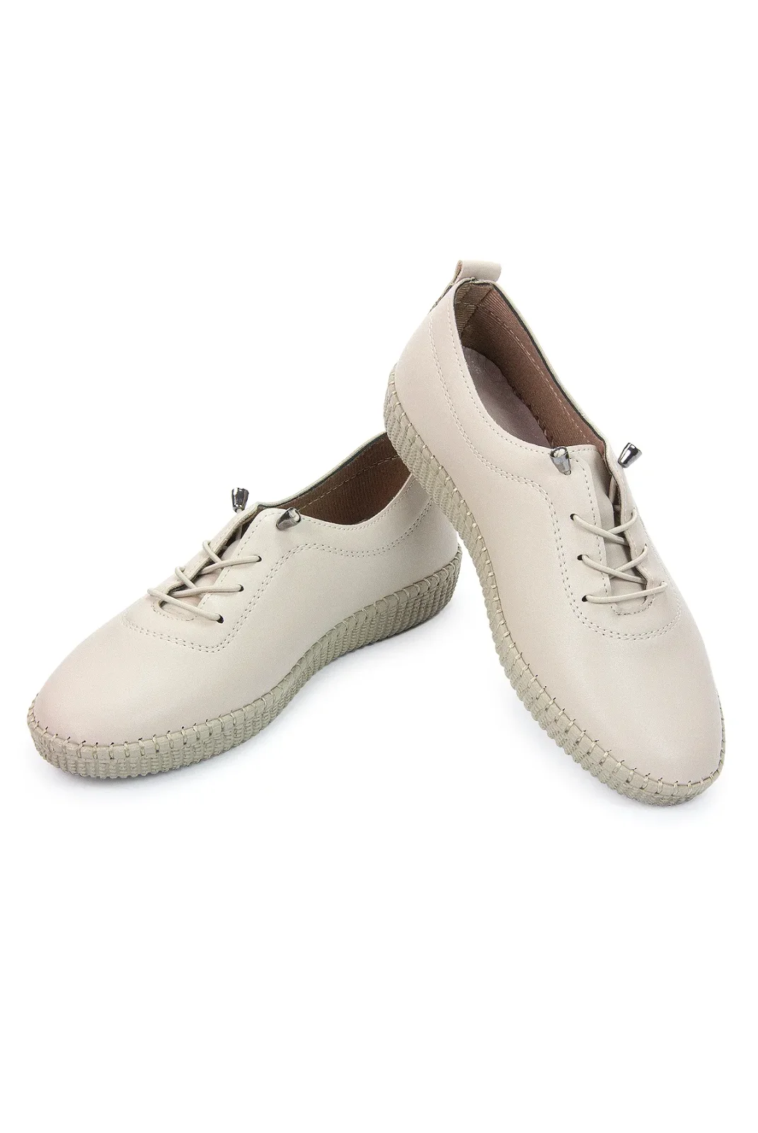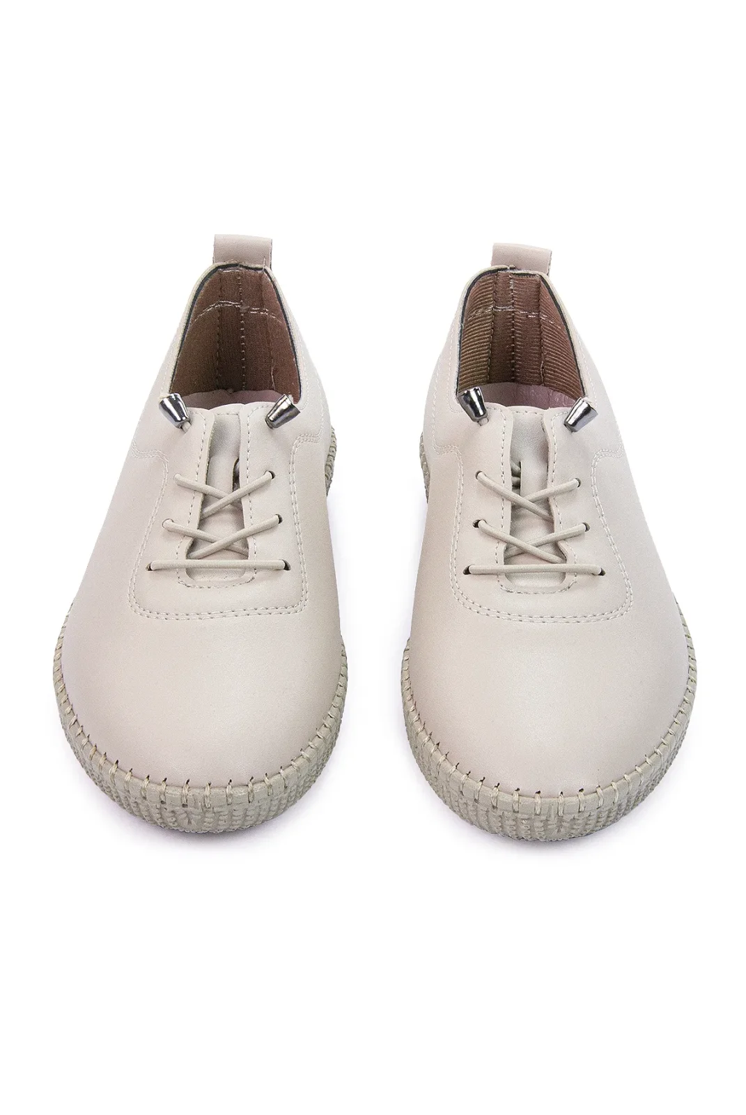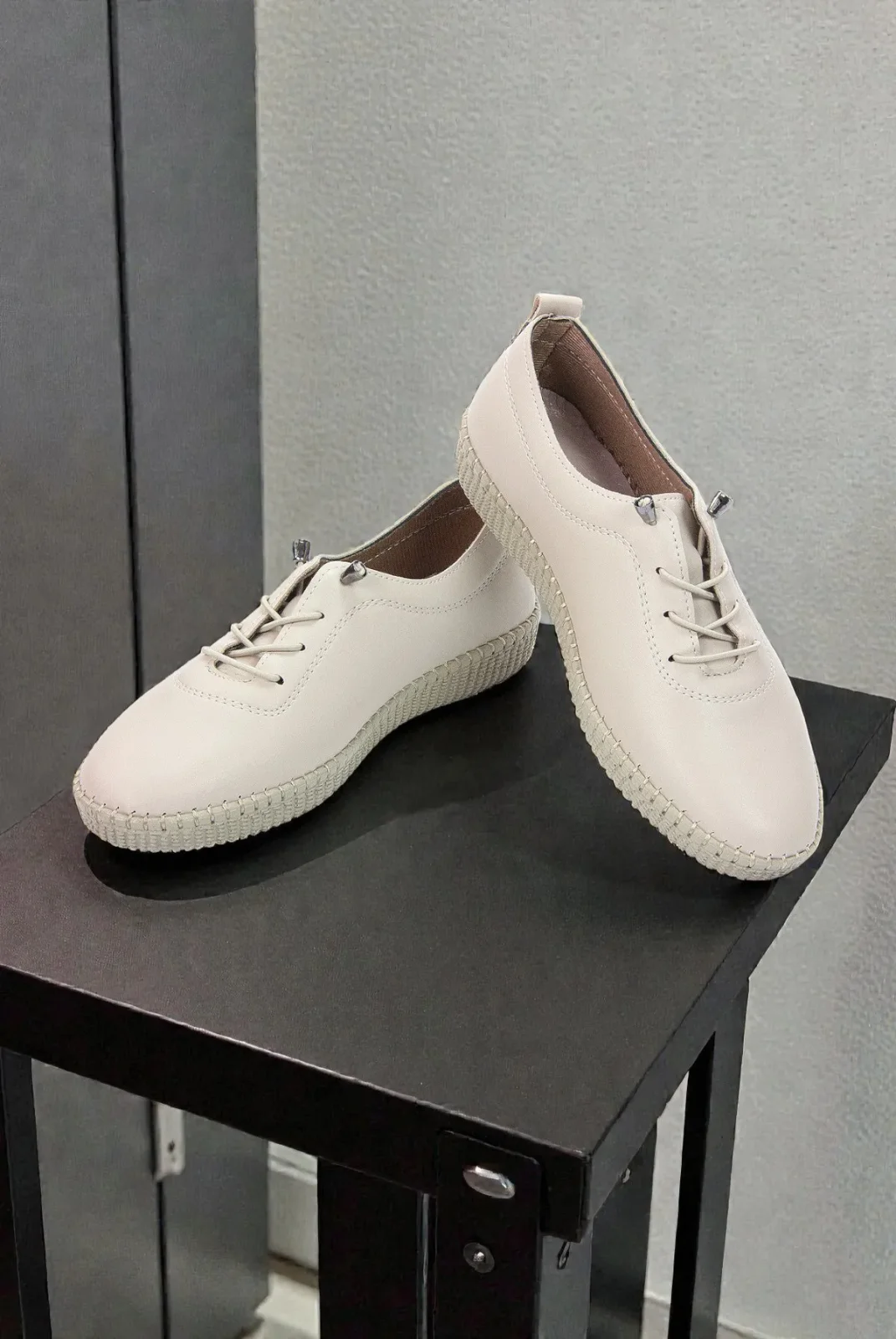 Kadın Deri Ortopedik Günlük Ayakkabı, Esnek ve Yumuşak Tabanlı Hac Umre Ayakkabısı - Bej