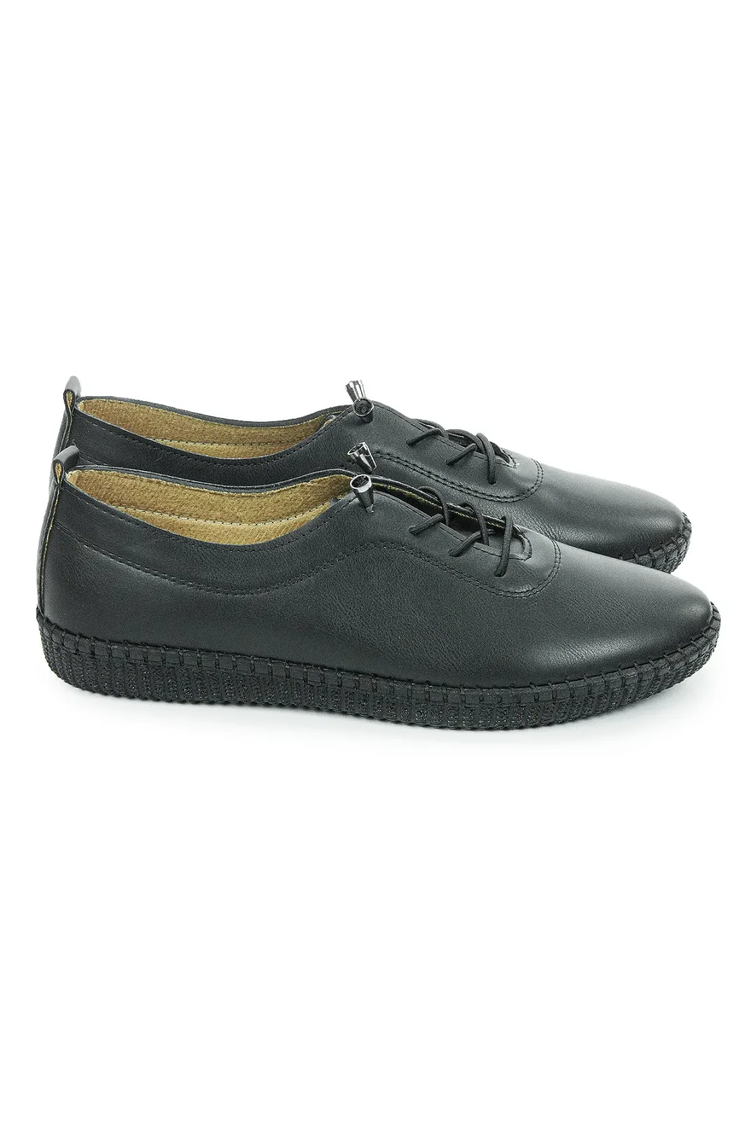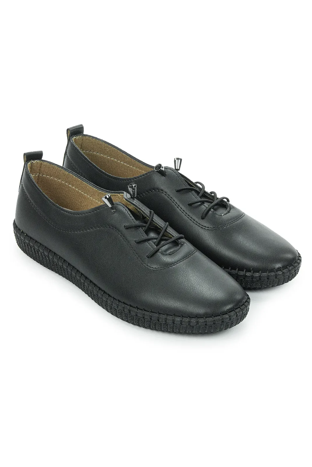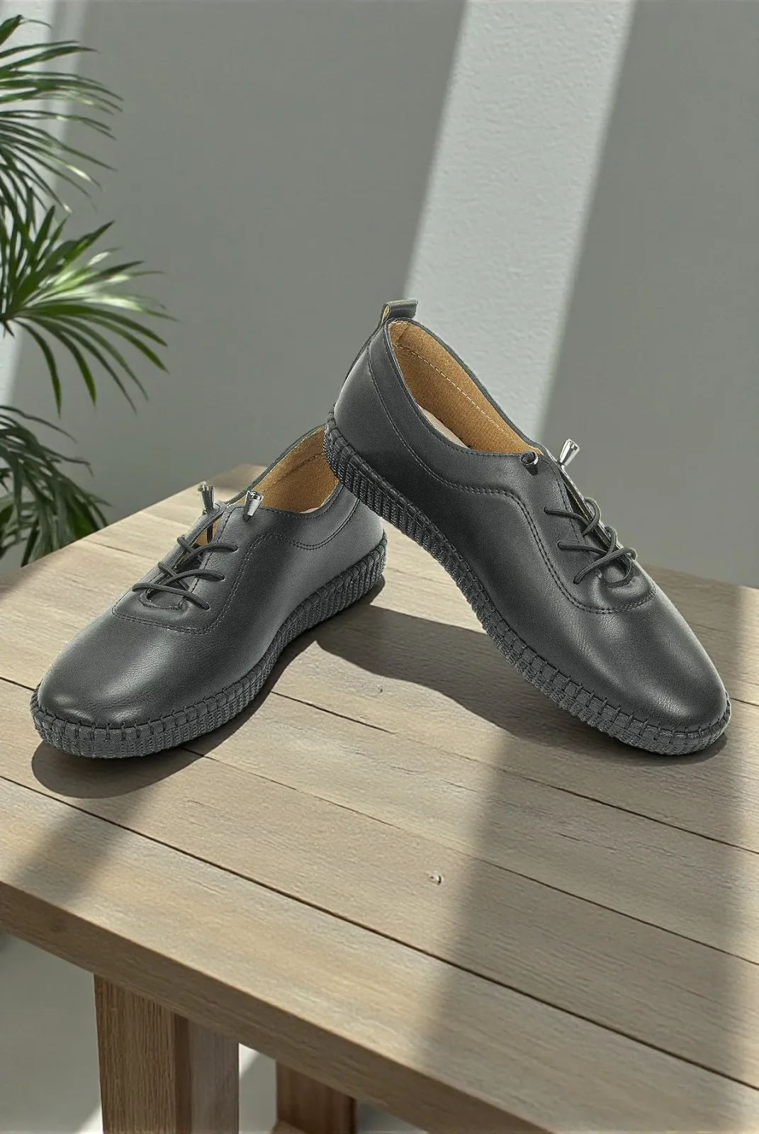 Kadın Deri Ortopedik Günlük Ayakkabı, Esnek ve Yumuşak Tabanlı Hac Umre Ayakkabısı - Siyah