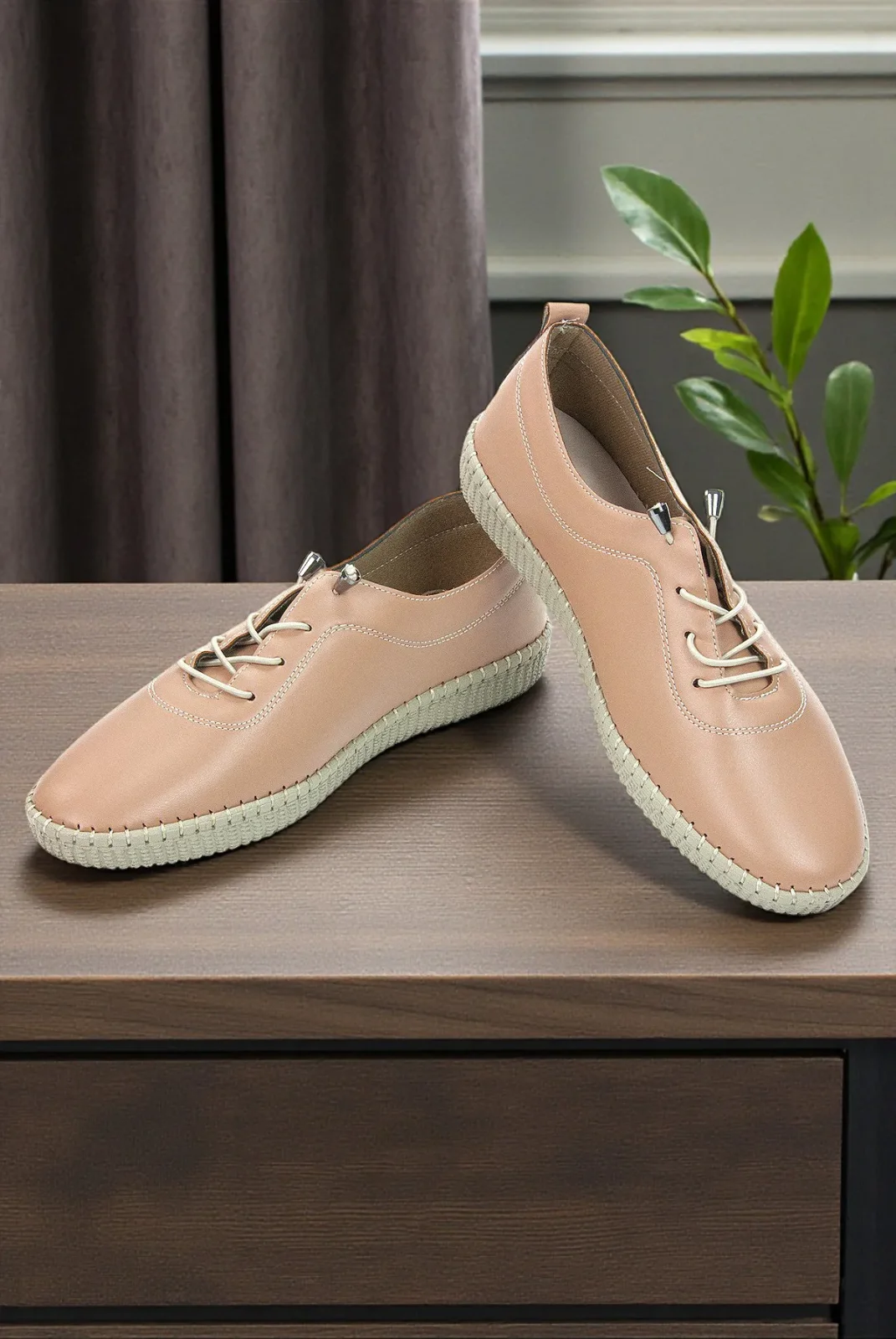 Kadın Deri Ortopedik Günlük Ayakkabı, Esnek ve Yumuşak Tabanlı Hac Umre Ayakkabısı - Somon
