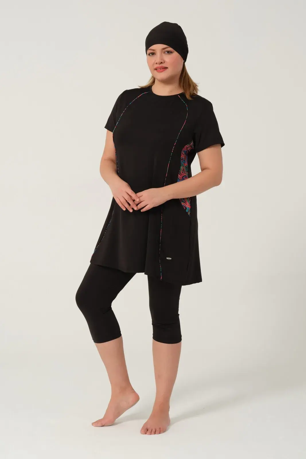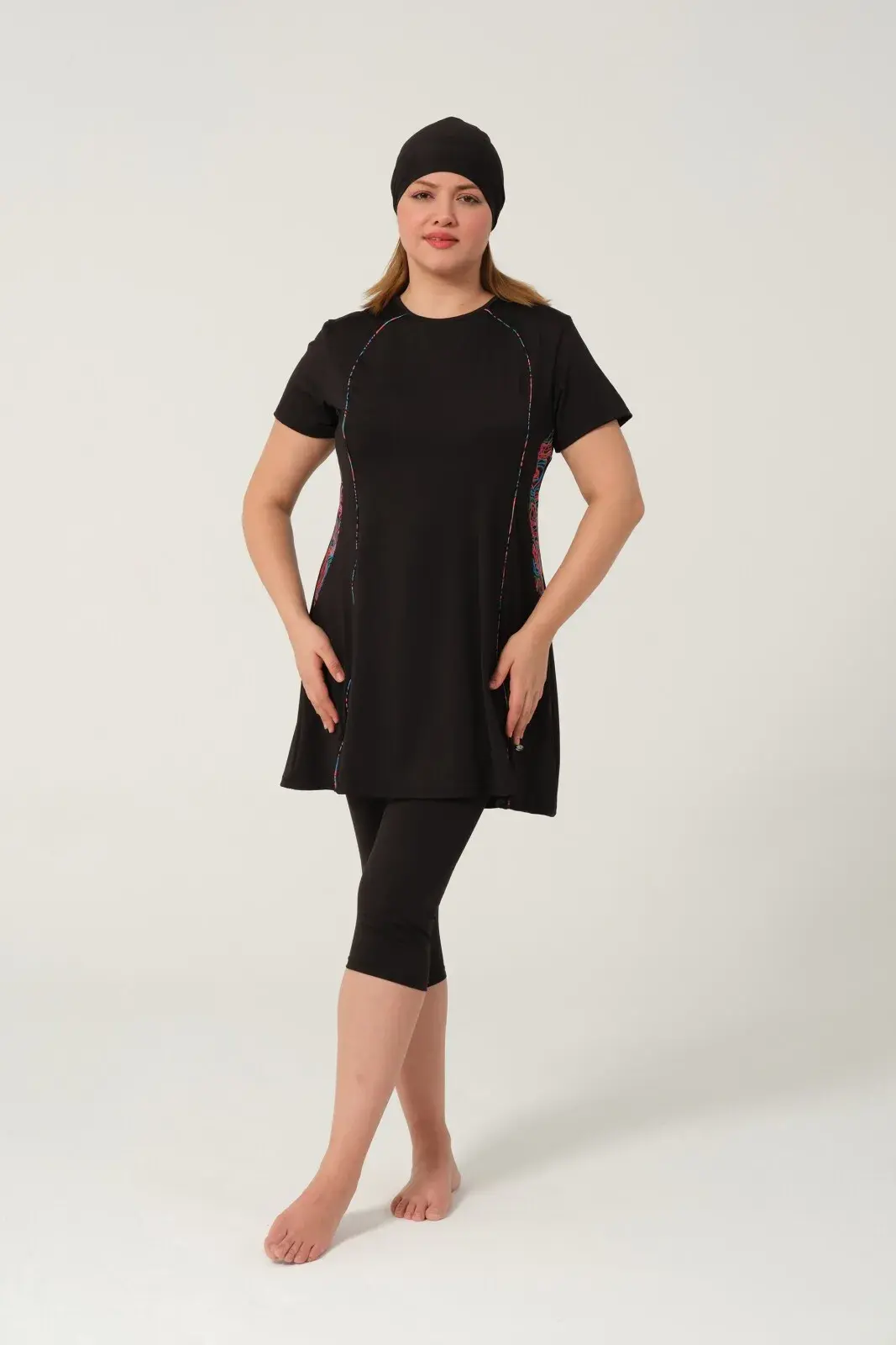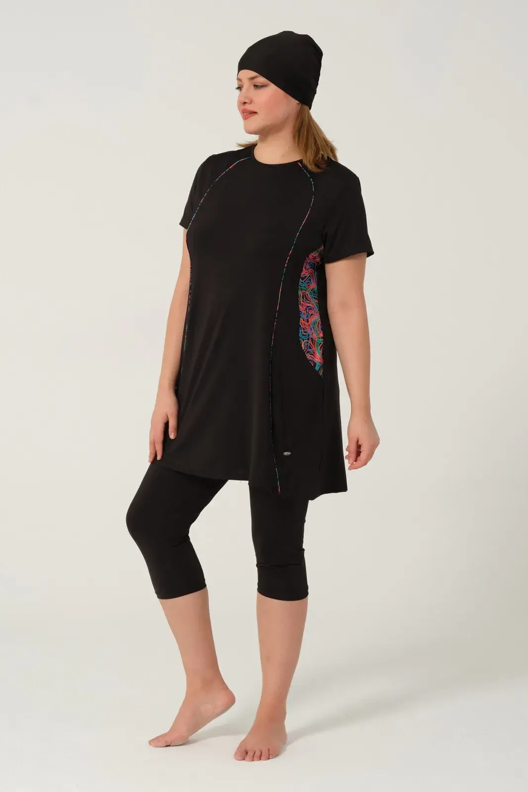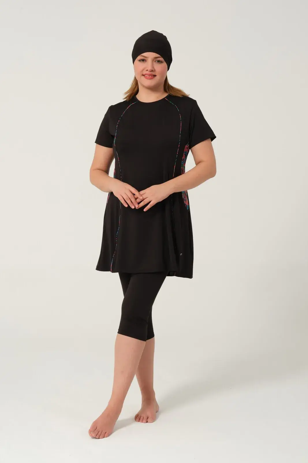 Kadın Desenli Hızlı Kuruyan Yarı Kapalı Tesettür Mayo 2523-25 Siyah