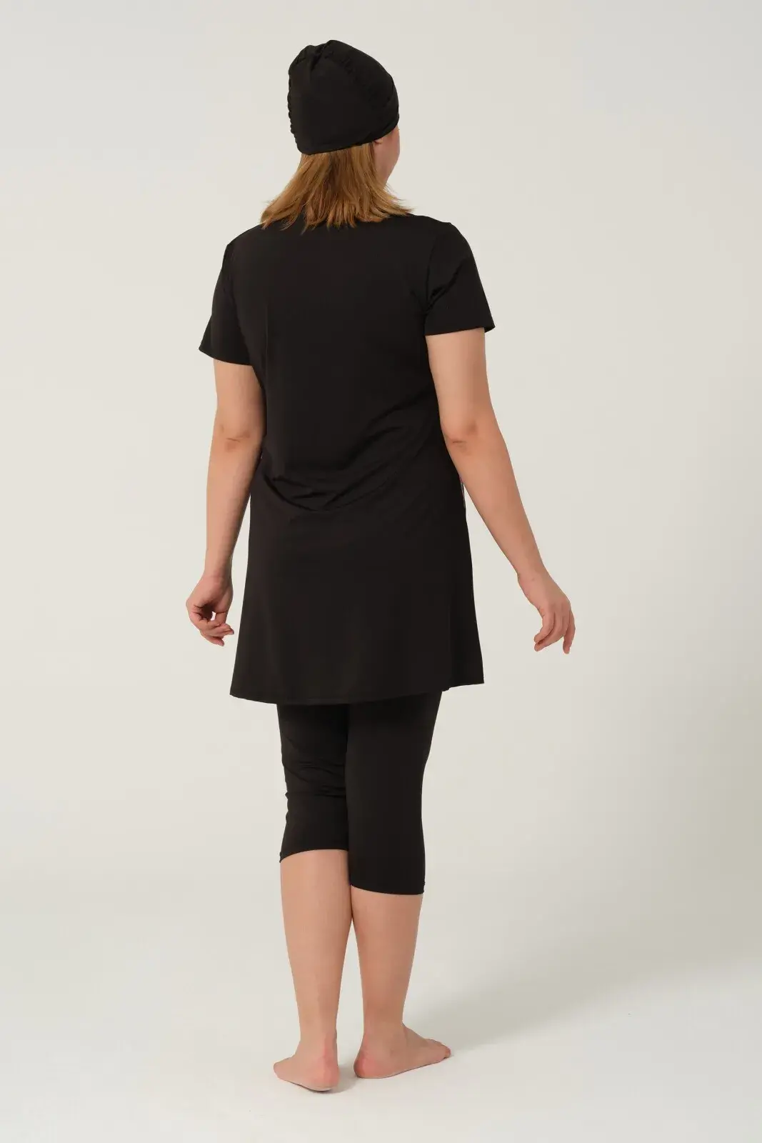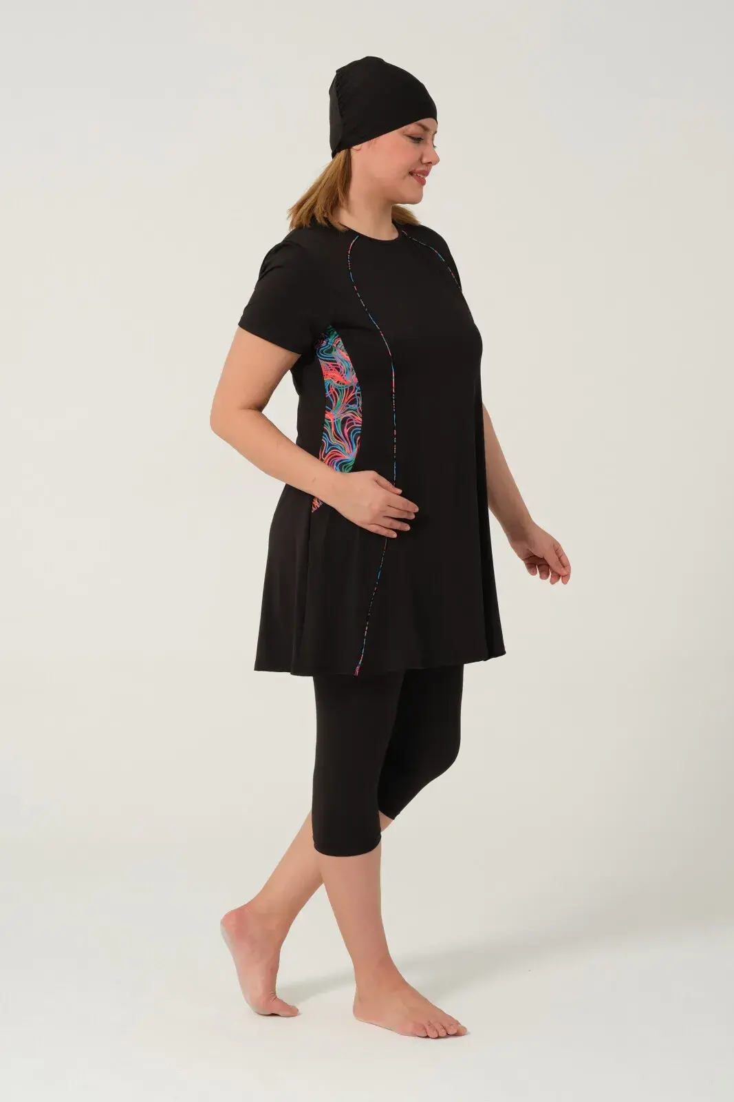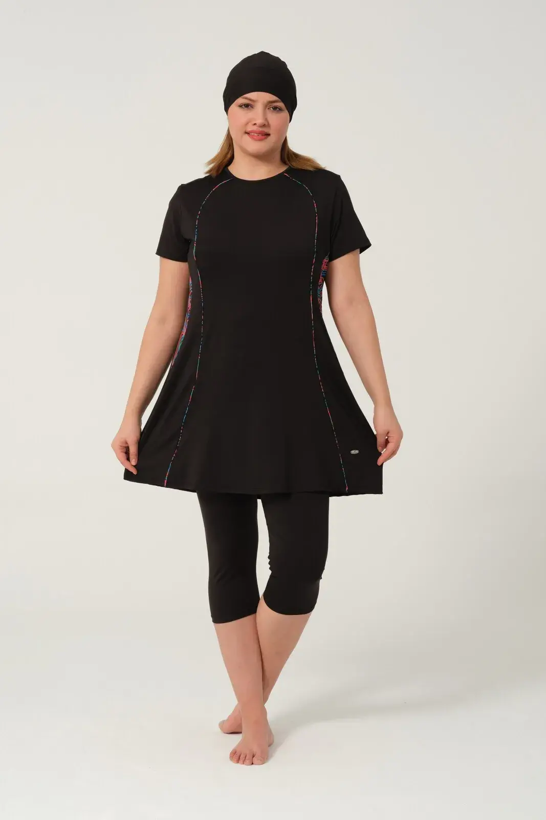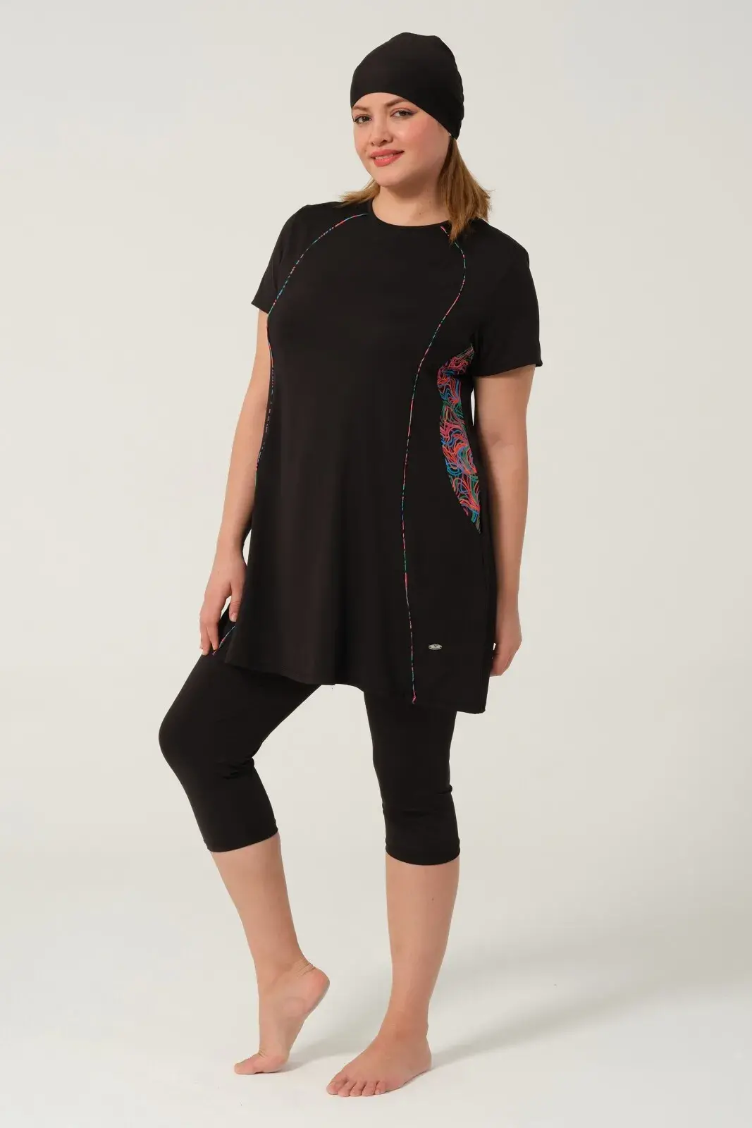 Kadın Desenli Hızlı Kuruyan Yarı Kapalı Tesettür Mayo 2523-25 Siyah