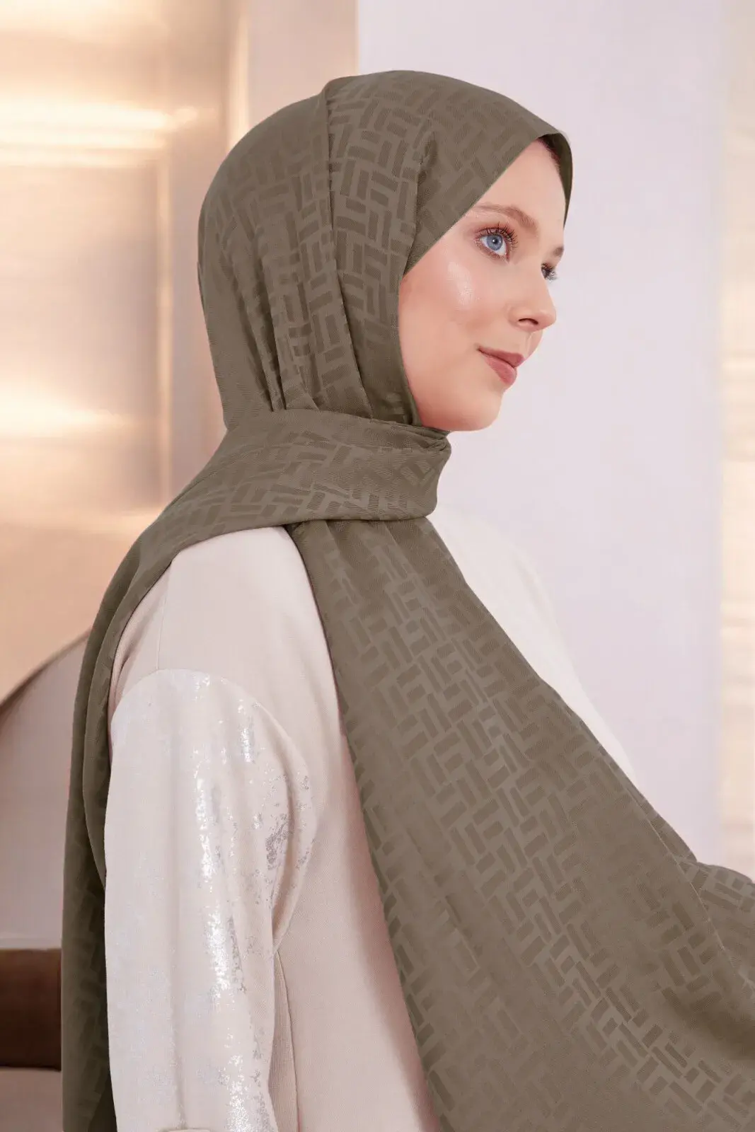Kadın Dikdörtgen Desen Tesettür Blue Jakar Şal Açık Kahve