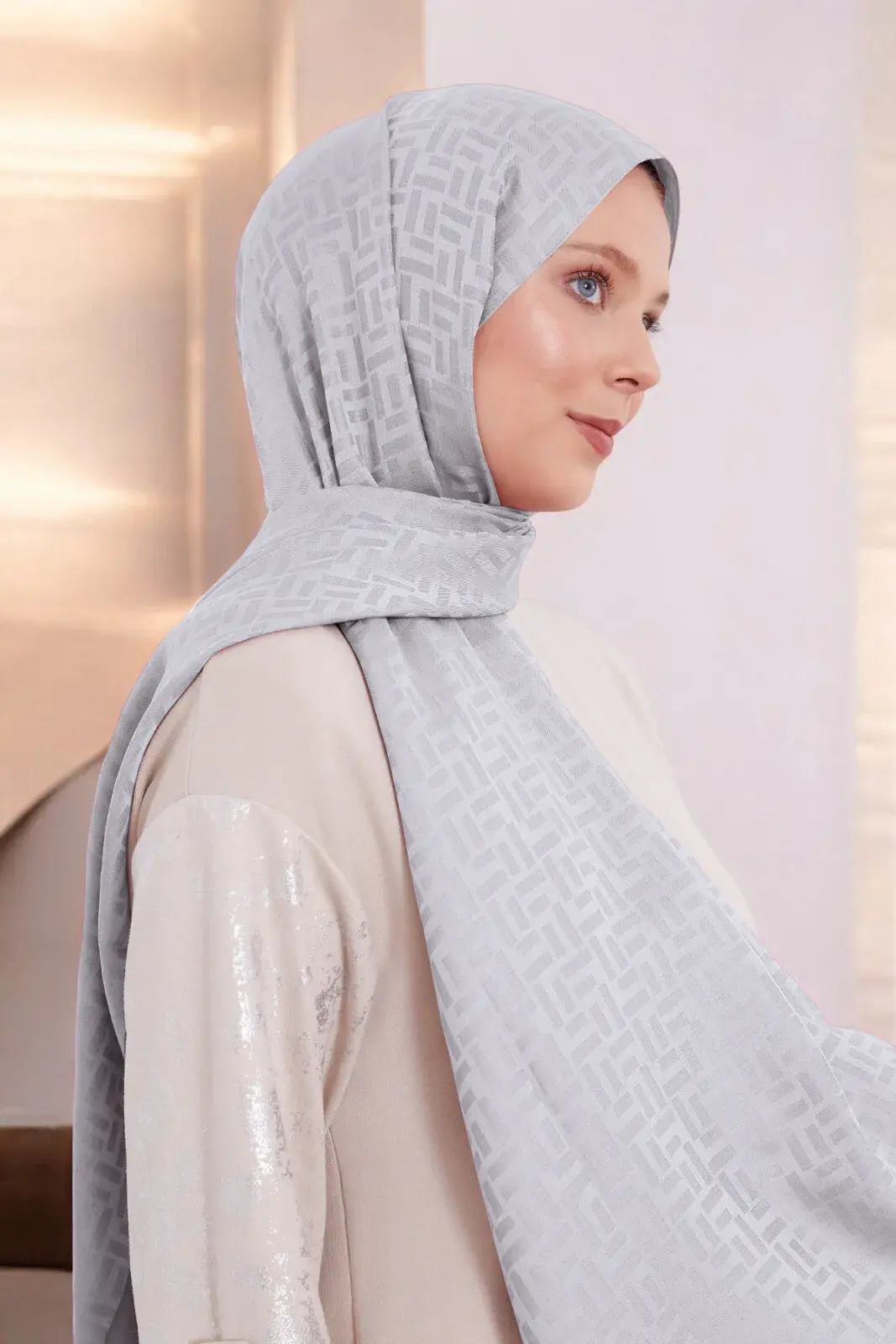 • Dikdörtgen Desenli Jakar Dokuma: Kumaşa işlenmiş zarif ve detaylı modern motifler.