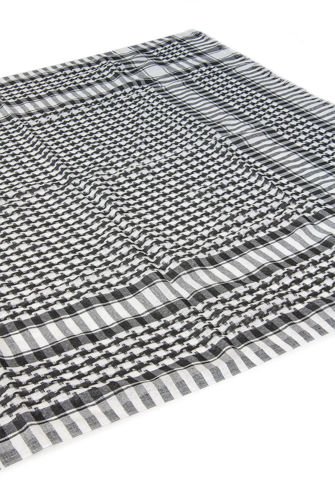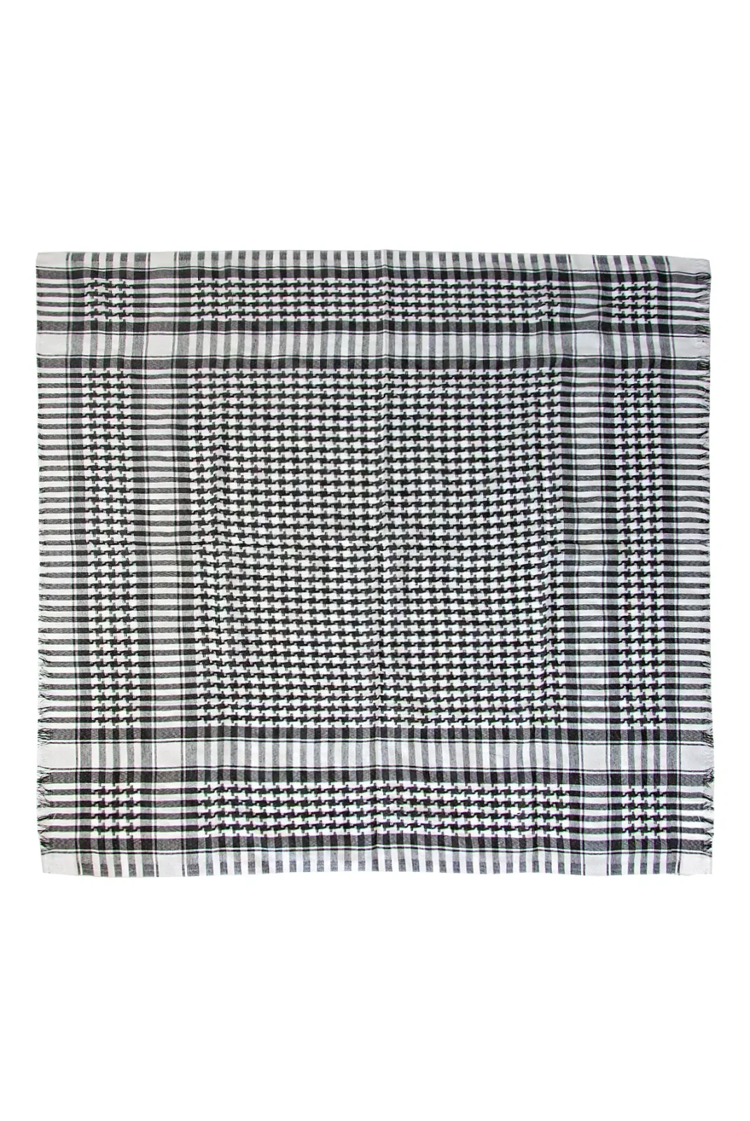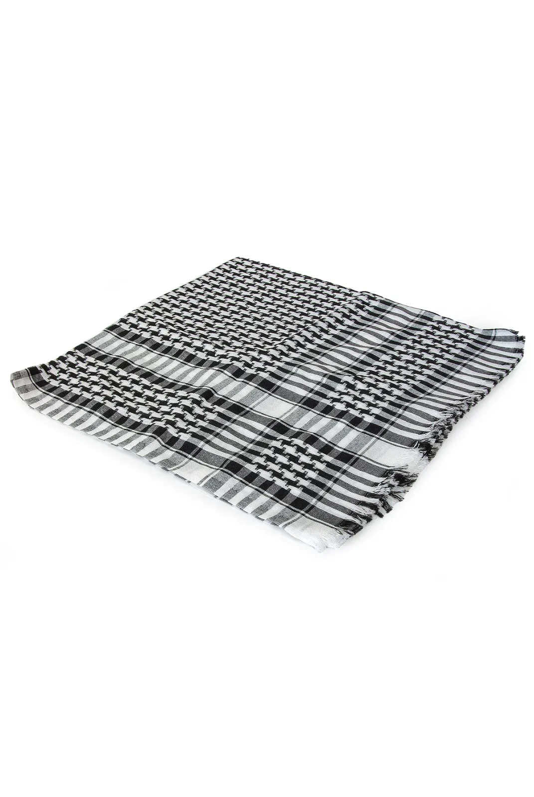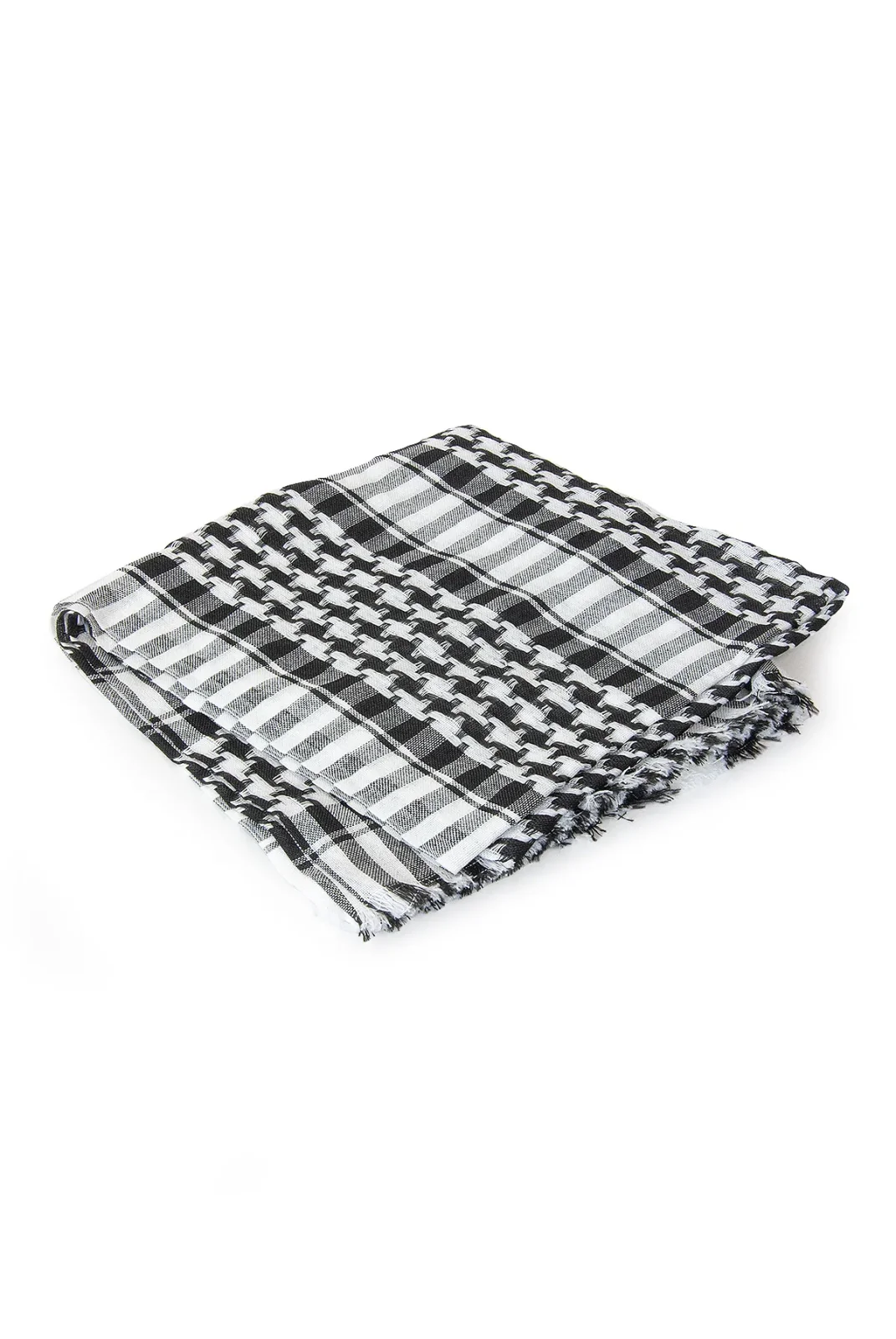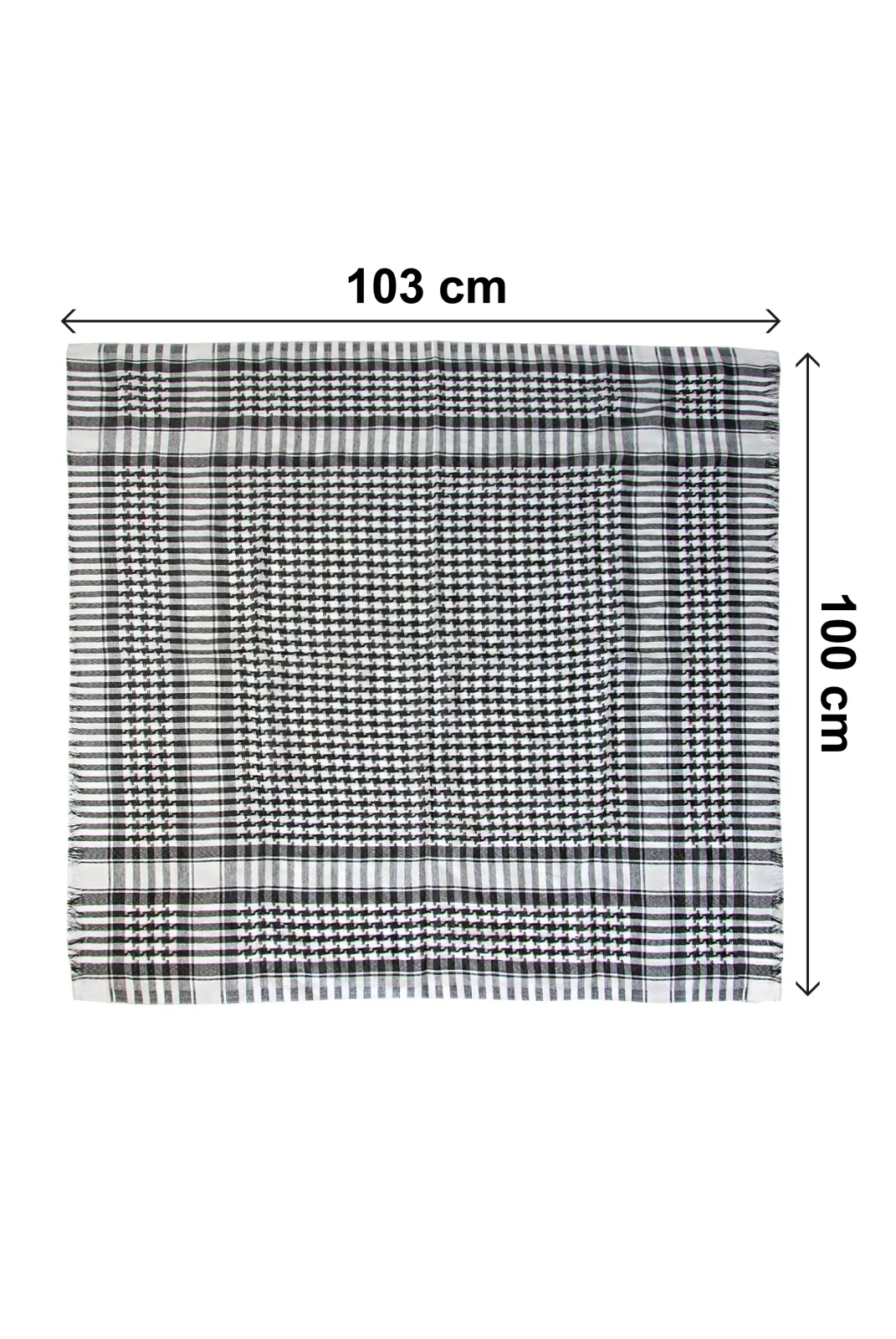 Pamuklu kare desenli siyah beyaz kefiye puşi, geleneksel tarzı modern dokuda sunar.