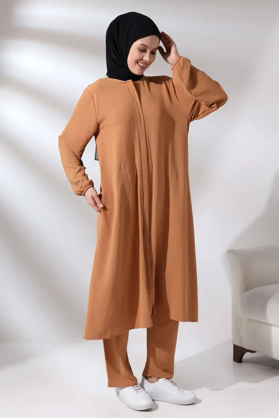 Kadın Hac ve Umre Kıyafeti Afgan İkili Takım Somon