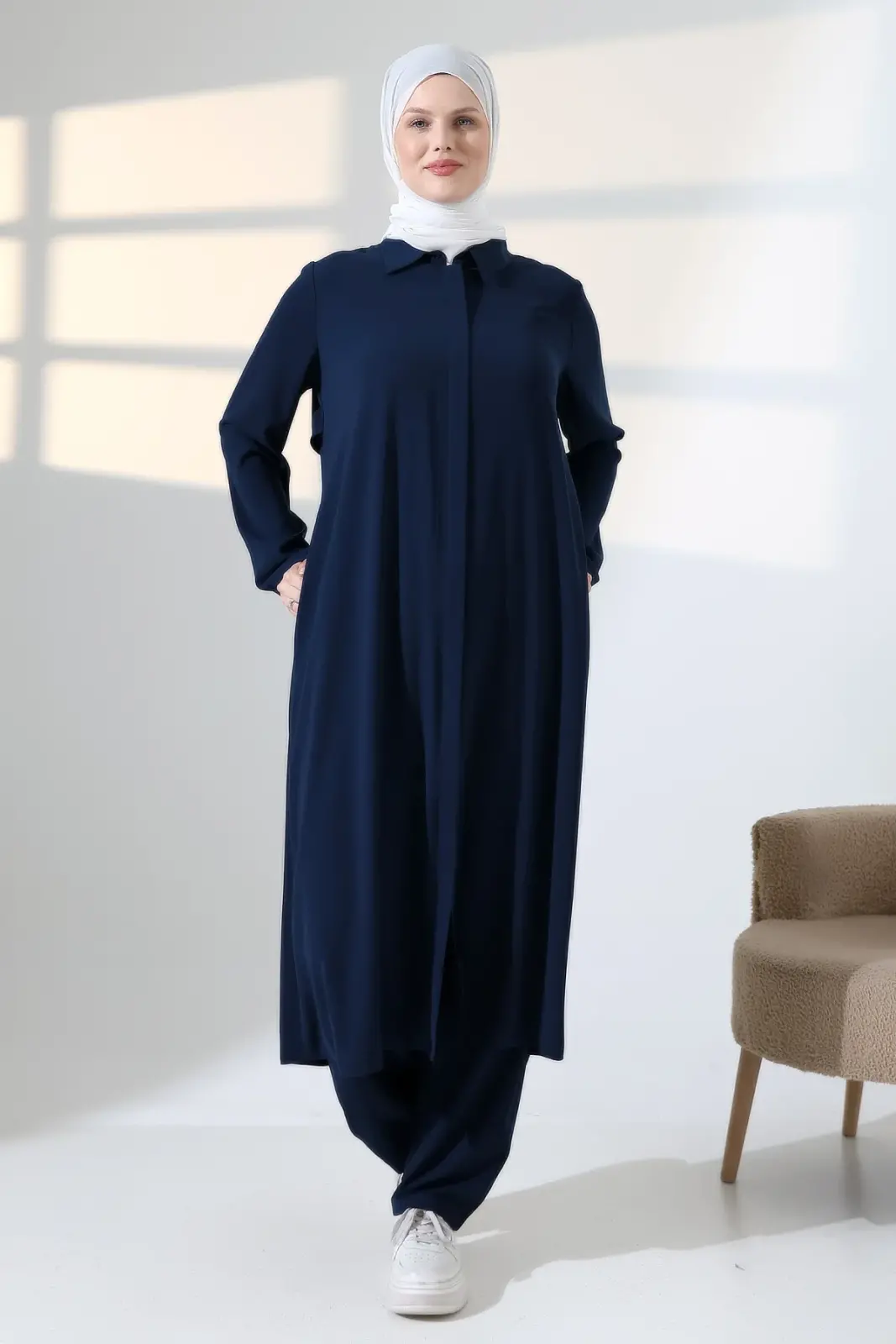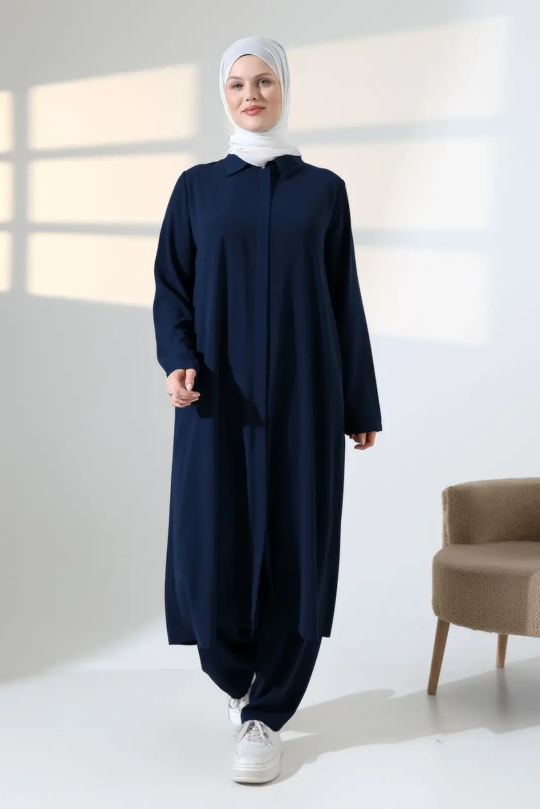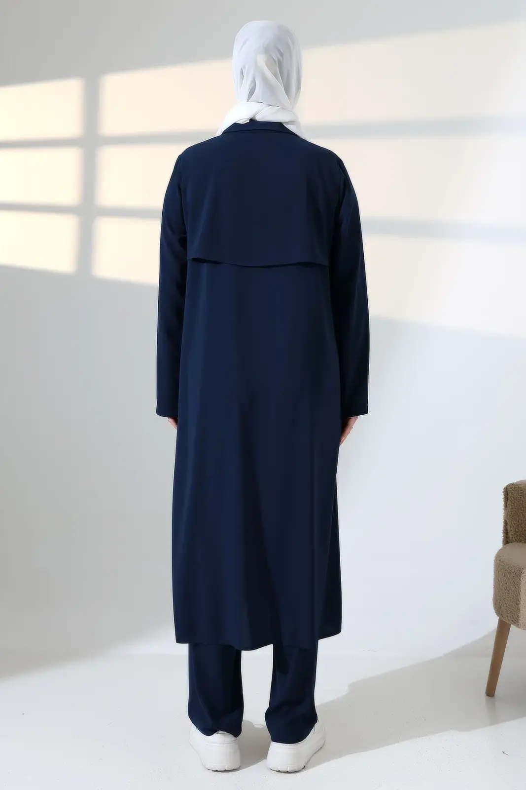 Kadın Hac ve Umre Kıyafeti, Tesettür Cepken Detaylı İkili Takım - Lacivert