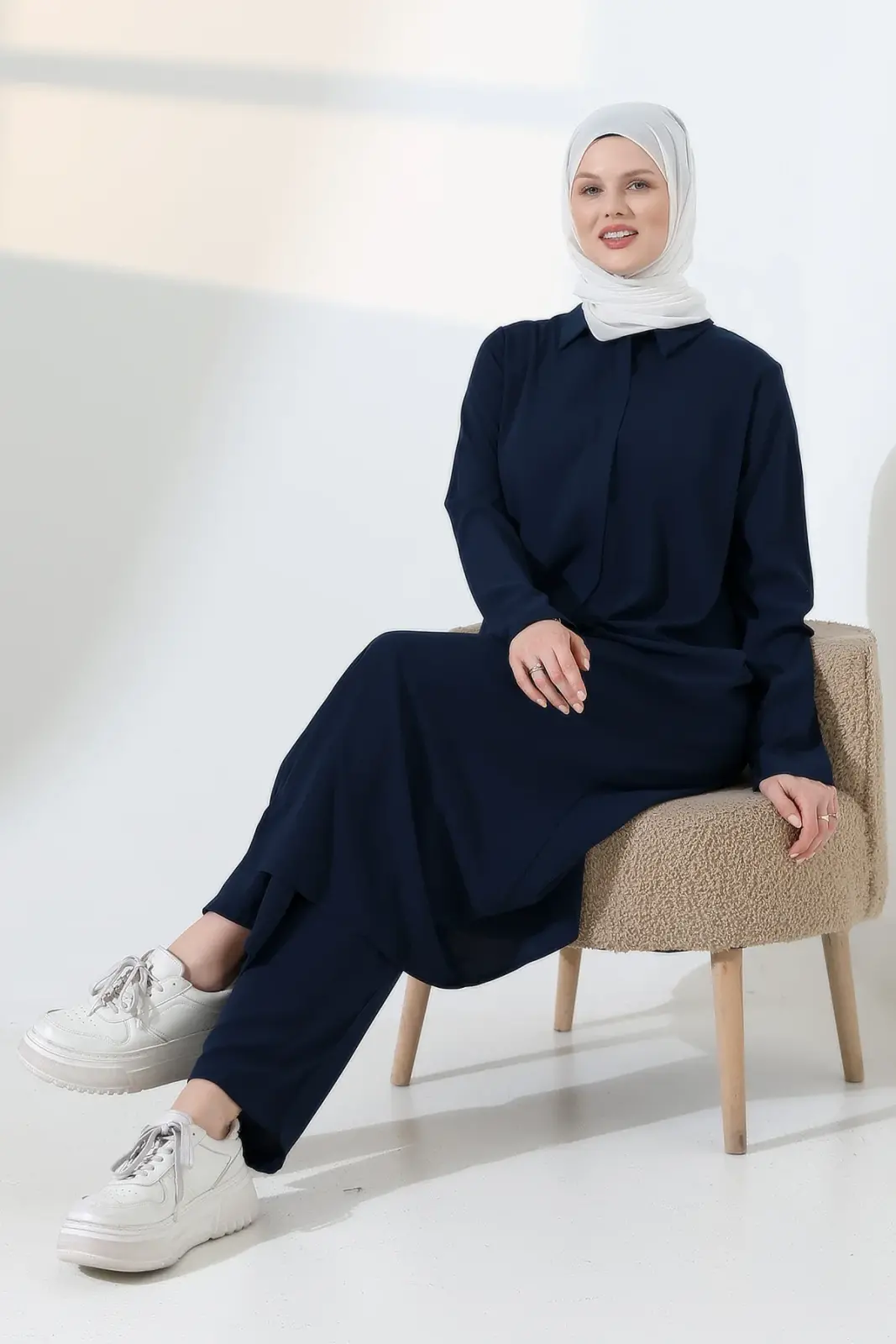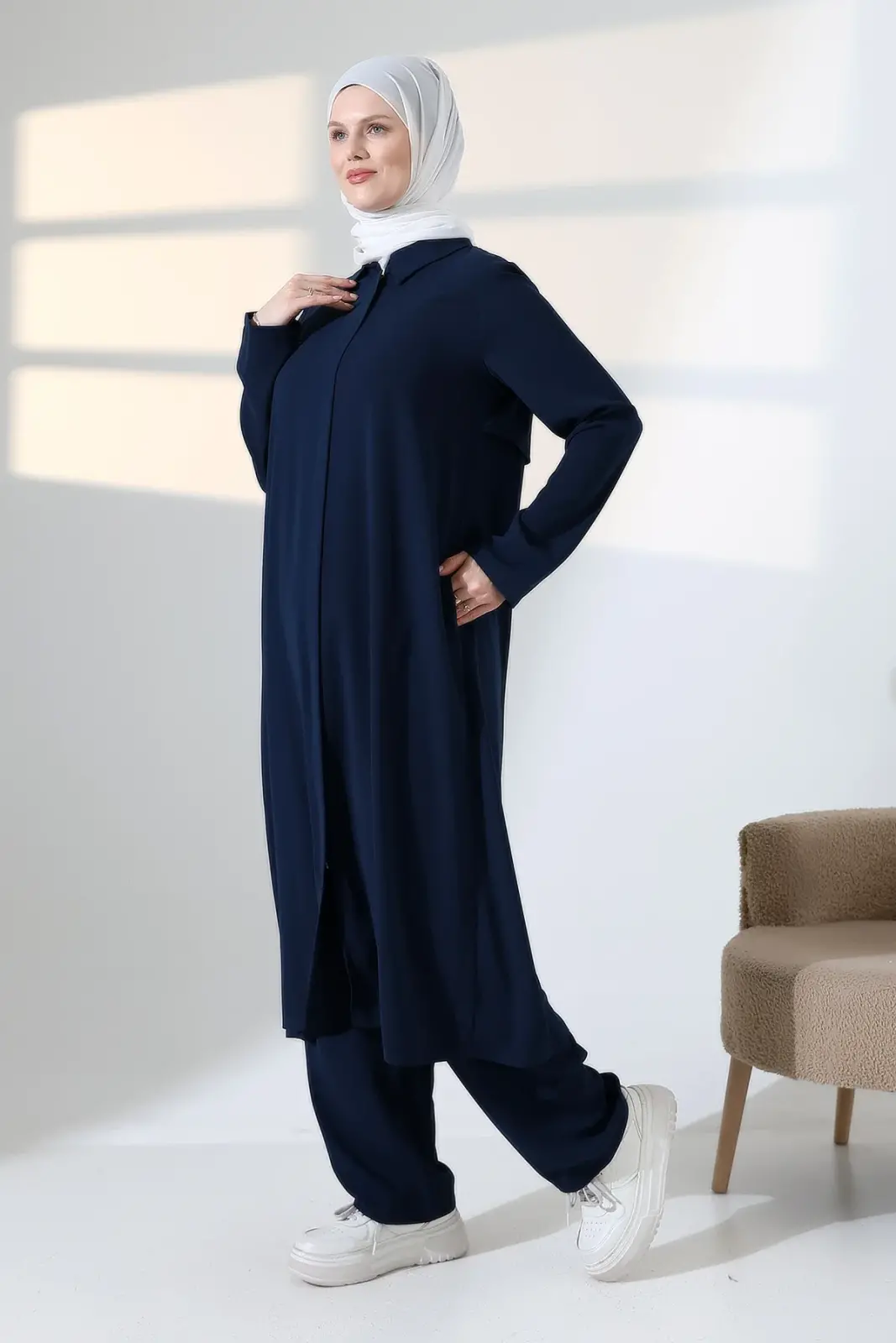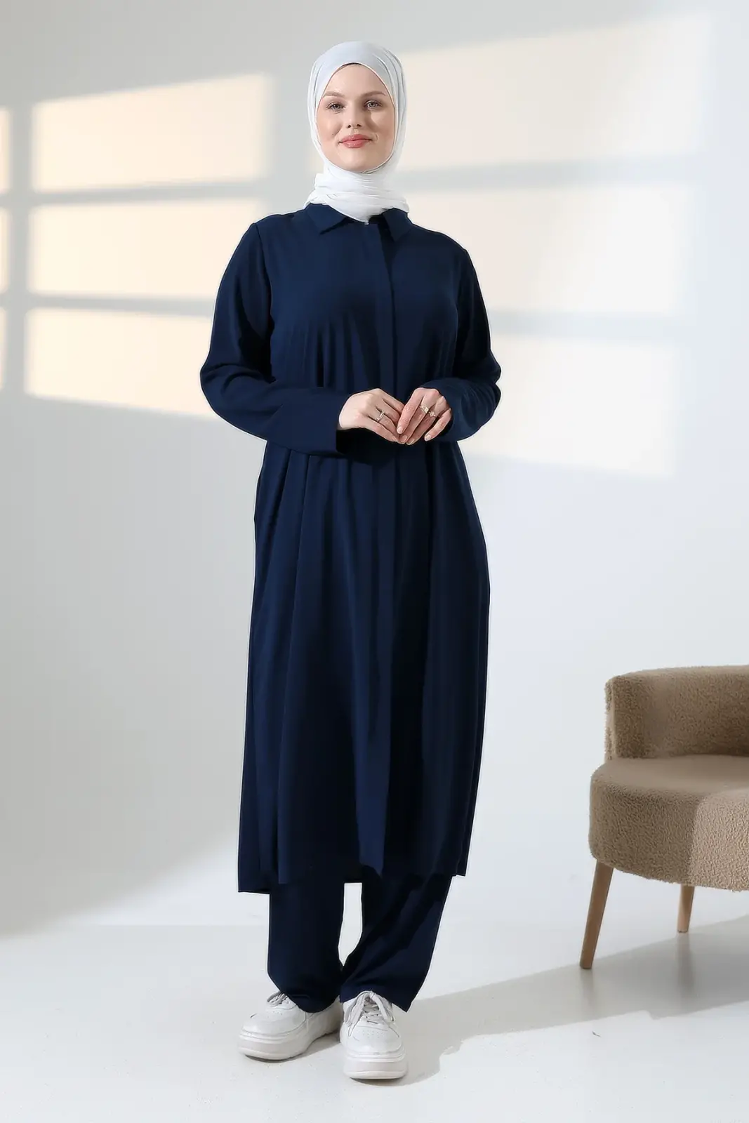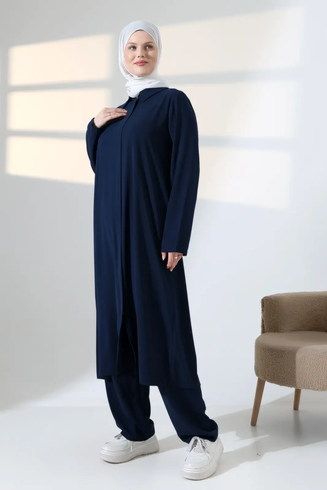 Kadın Hac ve Umre Kıyafeti, Tesettür Cepken Detaylı İkili Takım - Lacivert