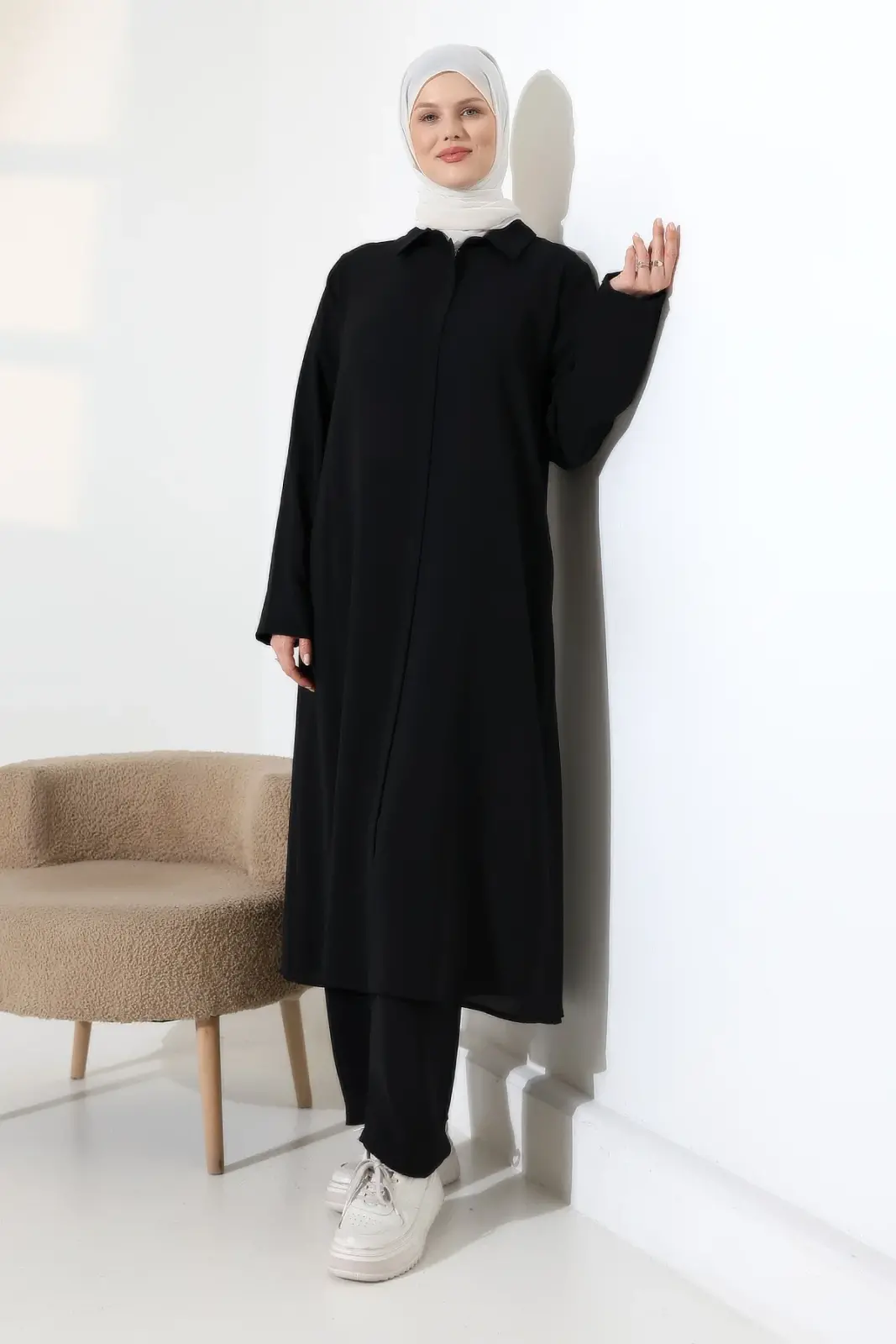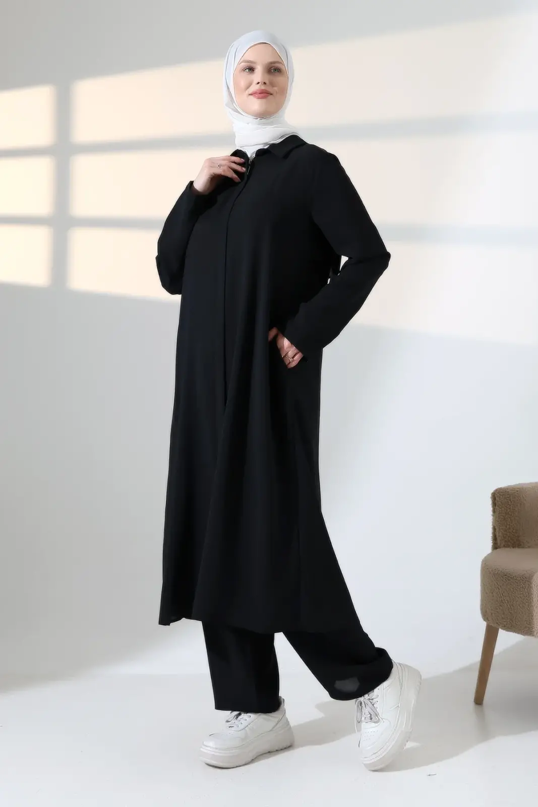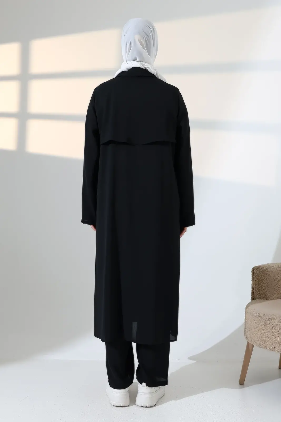 Kadın Hac ve Umre Kıyafeti, Tesettür Cepken Detaylı İkili Takım - Siyah