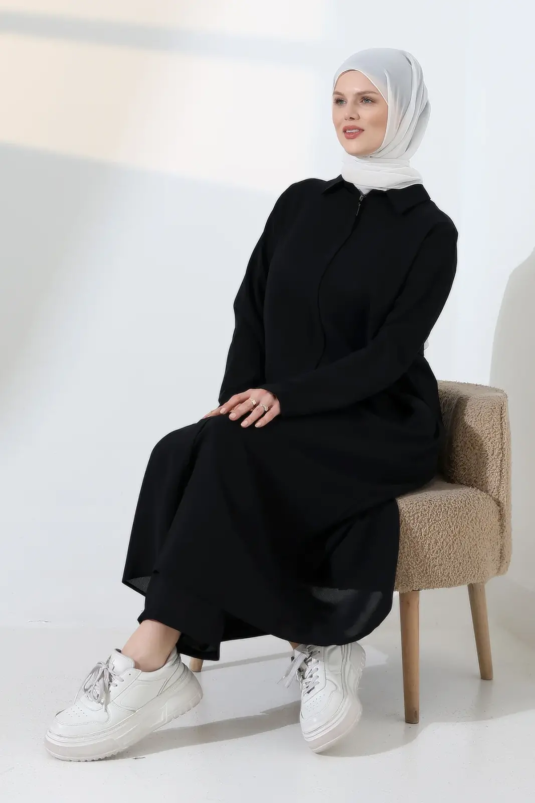 Konforlu ve Pratik: Yolculuk ve günlük kullanım sırasında formunu koruyan, kırışmaya dirençli yapısıyla her an bakımlı görünmenizi sağlar. Önden fermuarlı tasarımı ve salaş kesimi ile maksimum hareket özgürlüğü vaat eder.