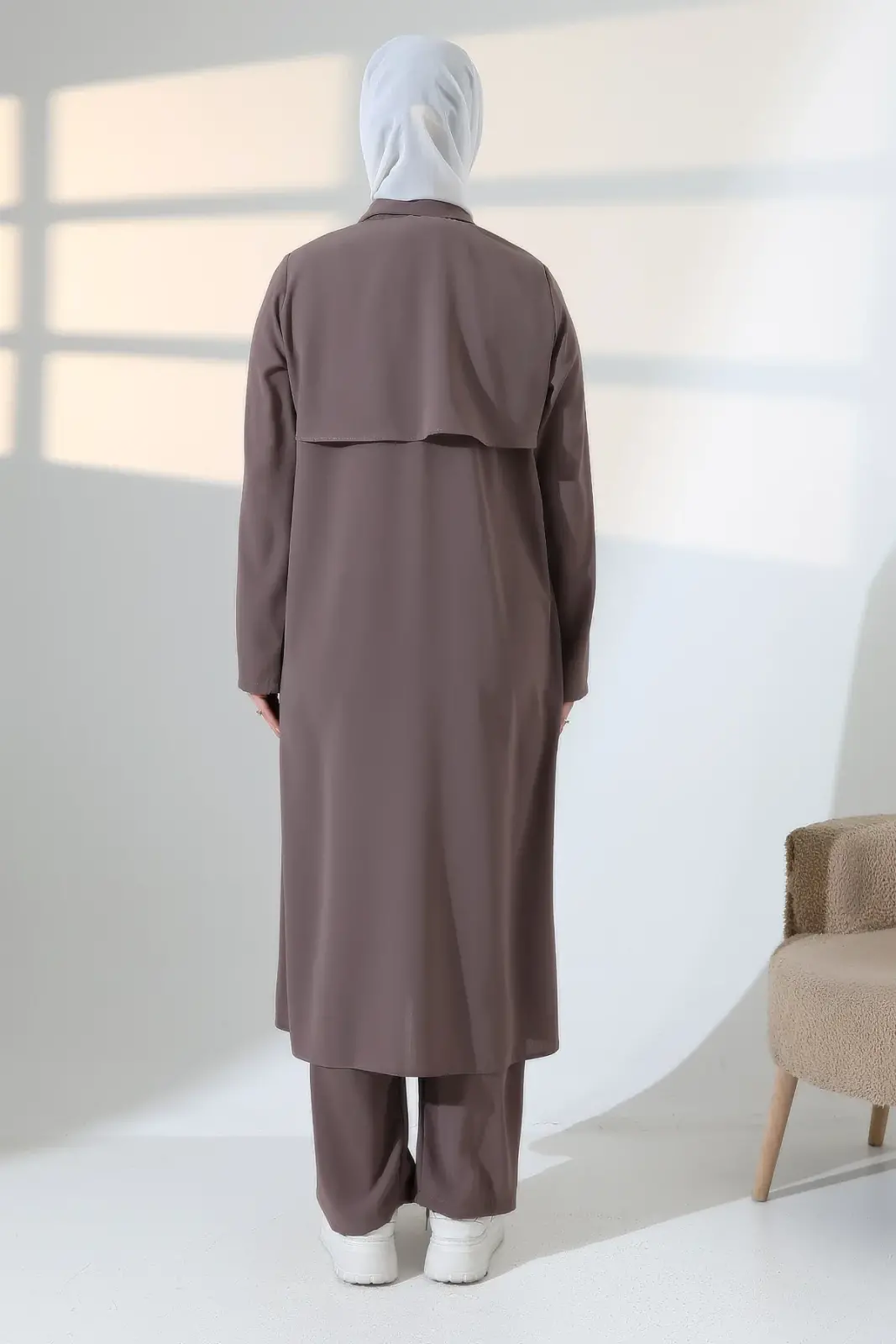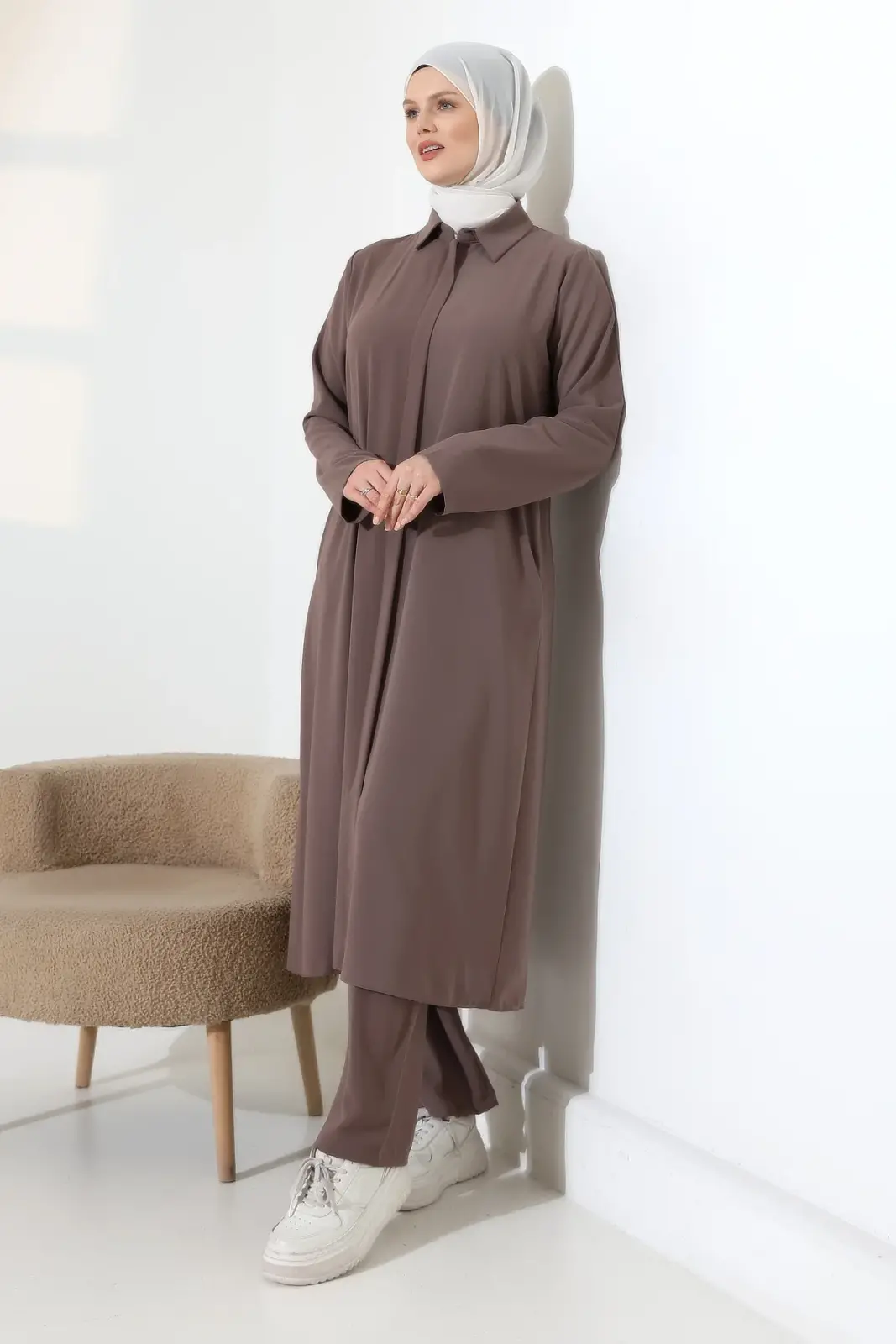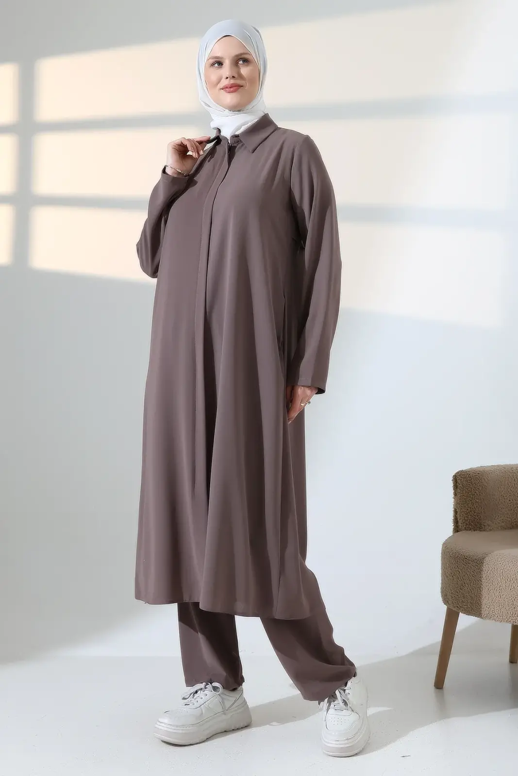 Modern Kesim ve Günlük Şıklık: Özgün sırt cepken detayı ile takıma modern bir dış giyim havası katılmıştır. Dökümlü yapısı sayesinde vücut hatlarını belli etmez, zarif bir silüet oluşturur. Pamuk içerikli dokusu cildinizin nefes almasını sağlayarak gün boyu ferah bir kullanım sunar.