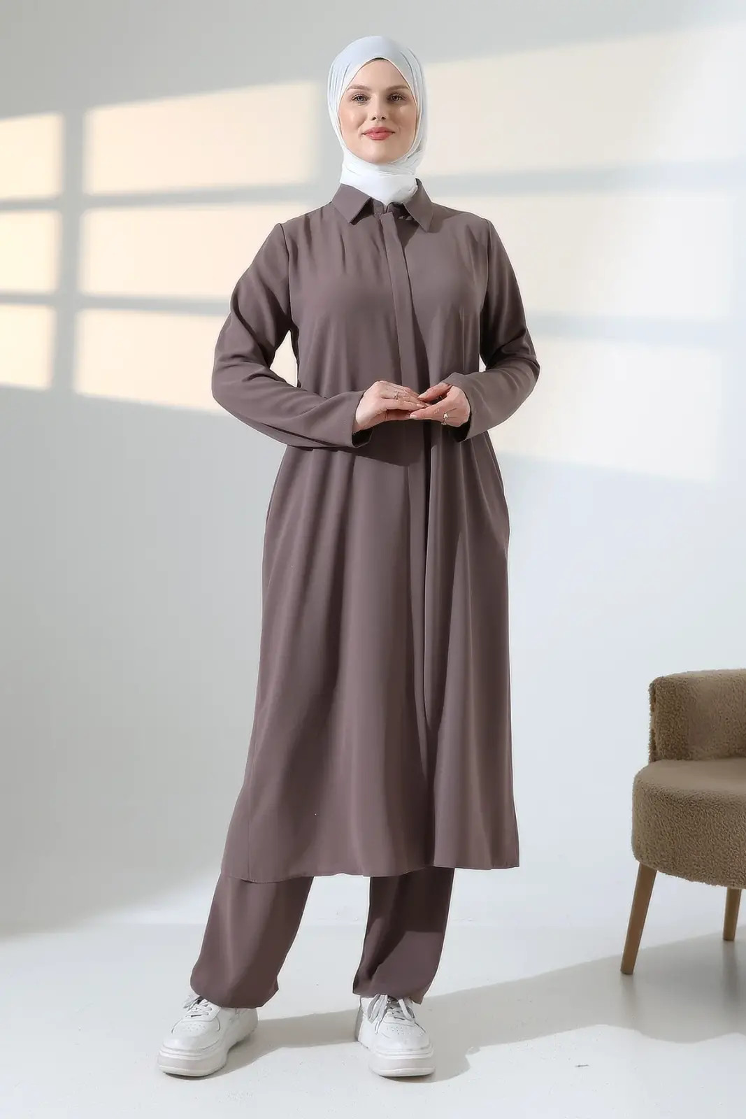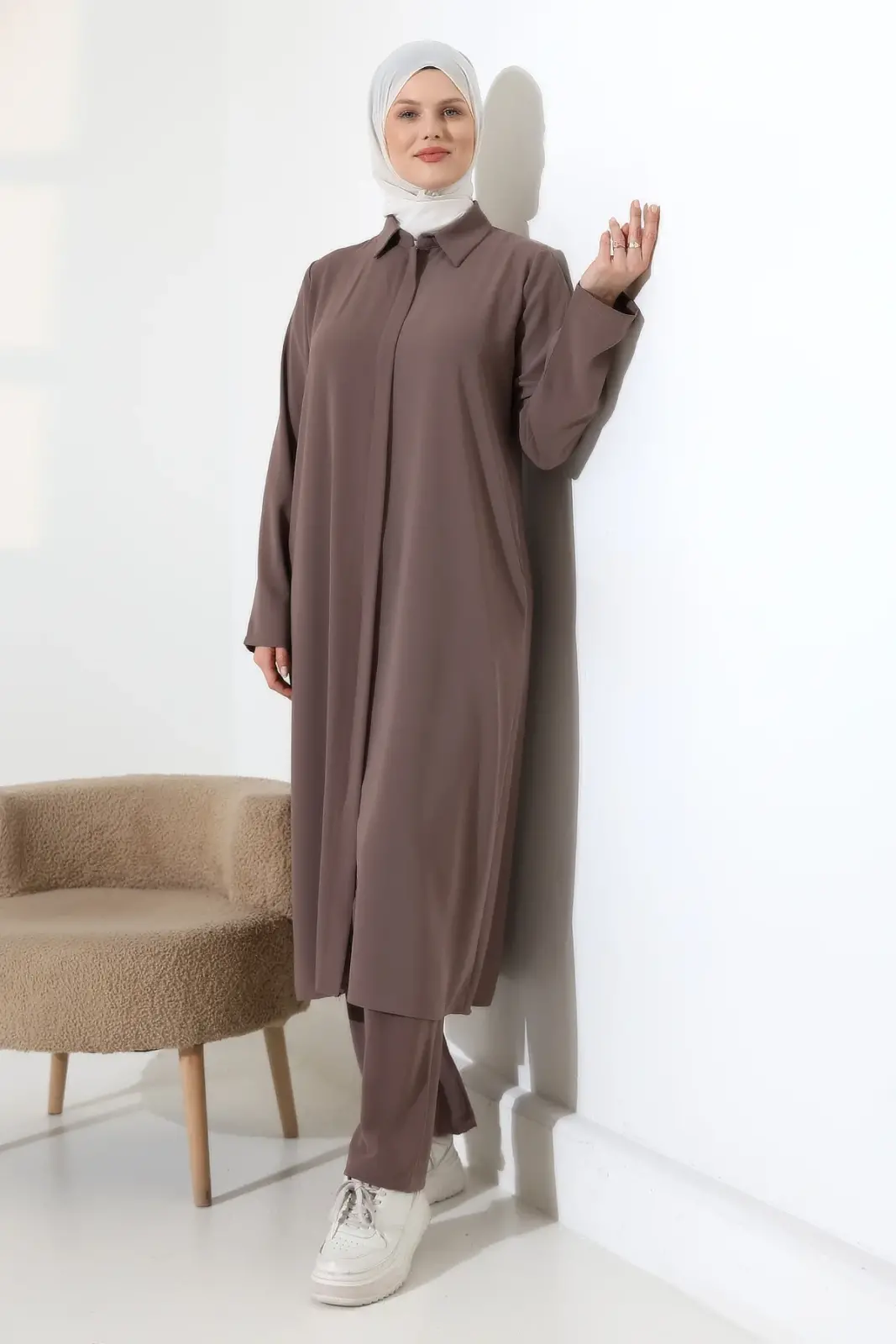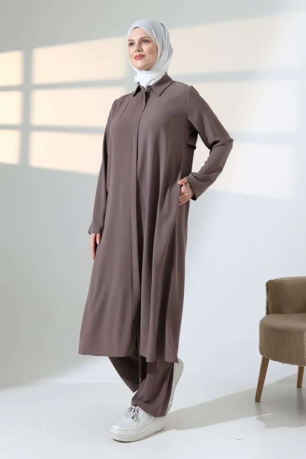 Modern Kesim ve Günlük Şıklık: Özgün sırt cepken detayı ile takıma modern bir dış giyim havası katılmıştır. Dökümlü yapısı sayesinde vücut hatlarını belli etmez, zarif bir silüet oluşturur. Pamuk içerikli dokusu cildinizin nefes almasını sağlayarak gün boyu ferah bir kullanım sunar.