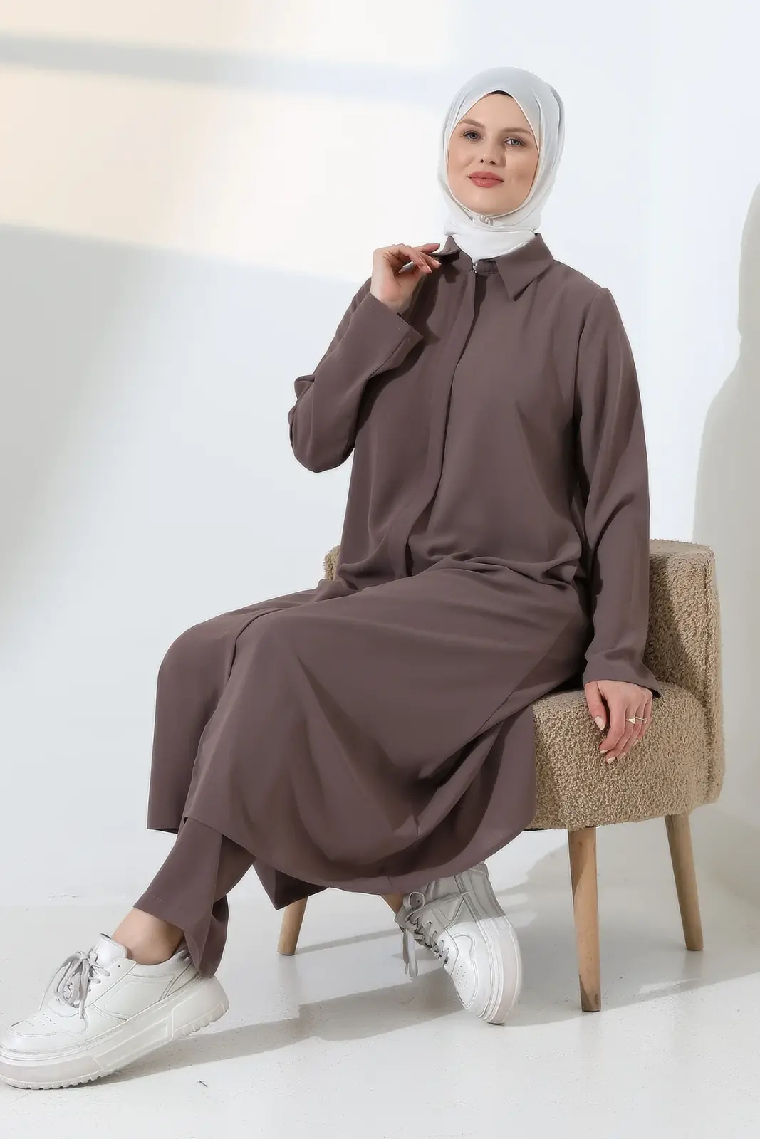 Konforlu ve Pratik: Yolculuk ve günlük kullanım sırasında formunu koruyan, kırışmaya dirençli yapısıyla her an bakımlı görünmenizi sağlar. Önden fermuarlı tasarımı ve salaş kesimi ile maksimum hareket özgürlüğü vaat eder.