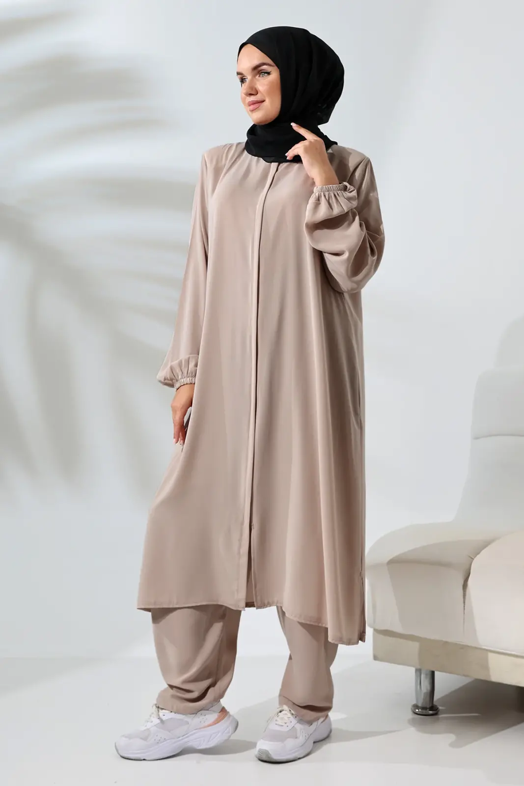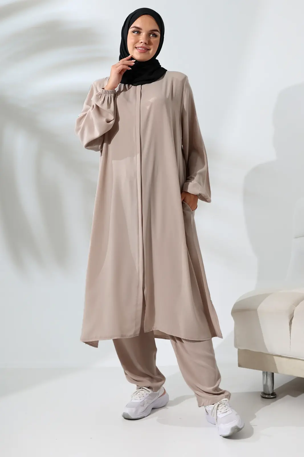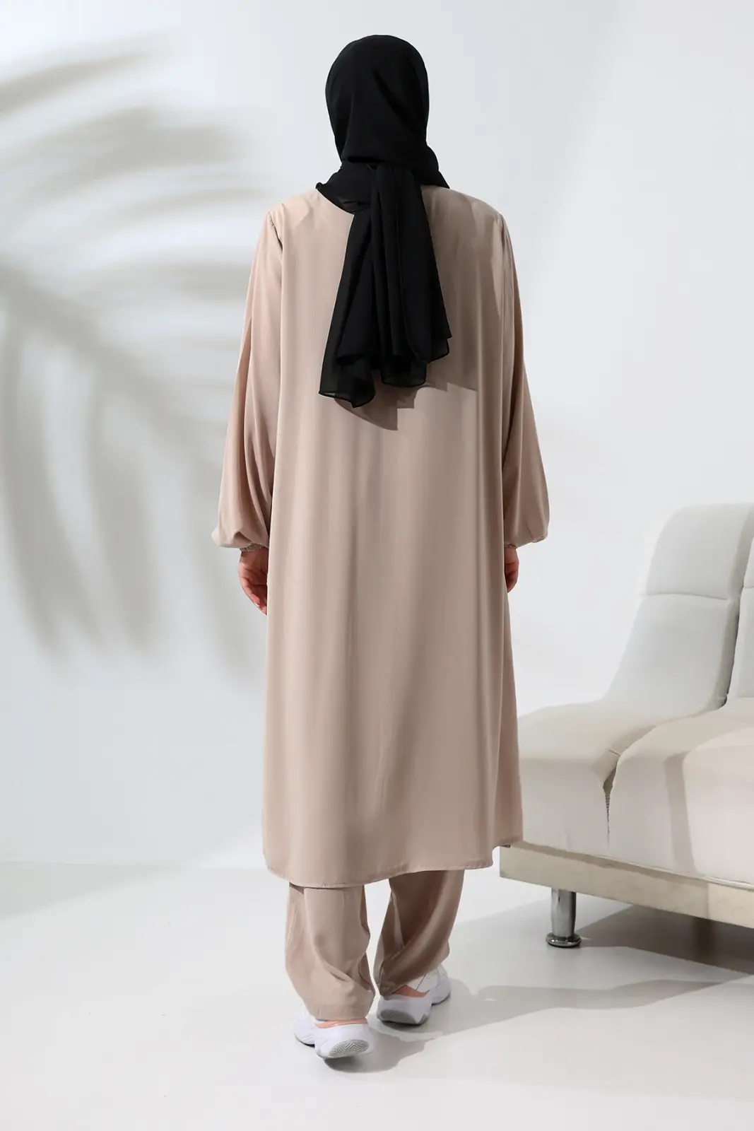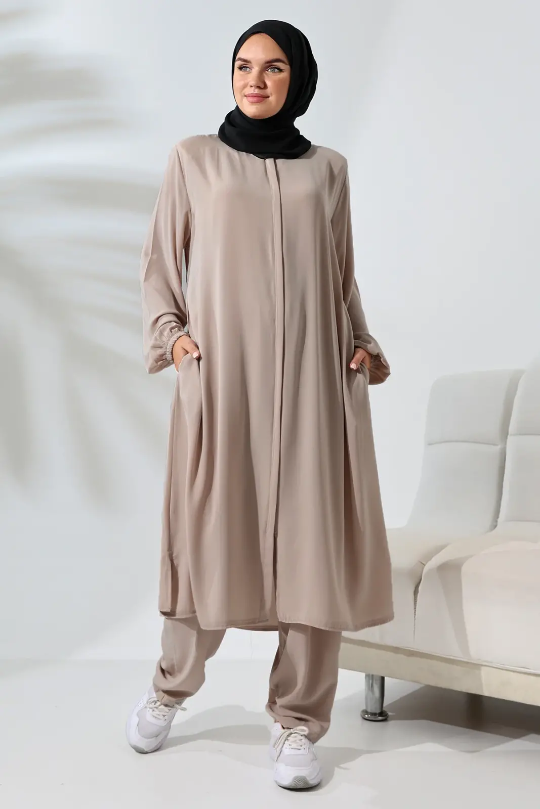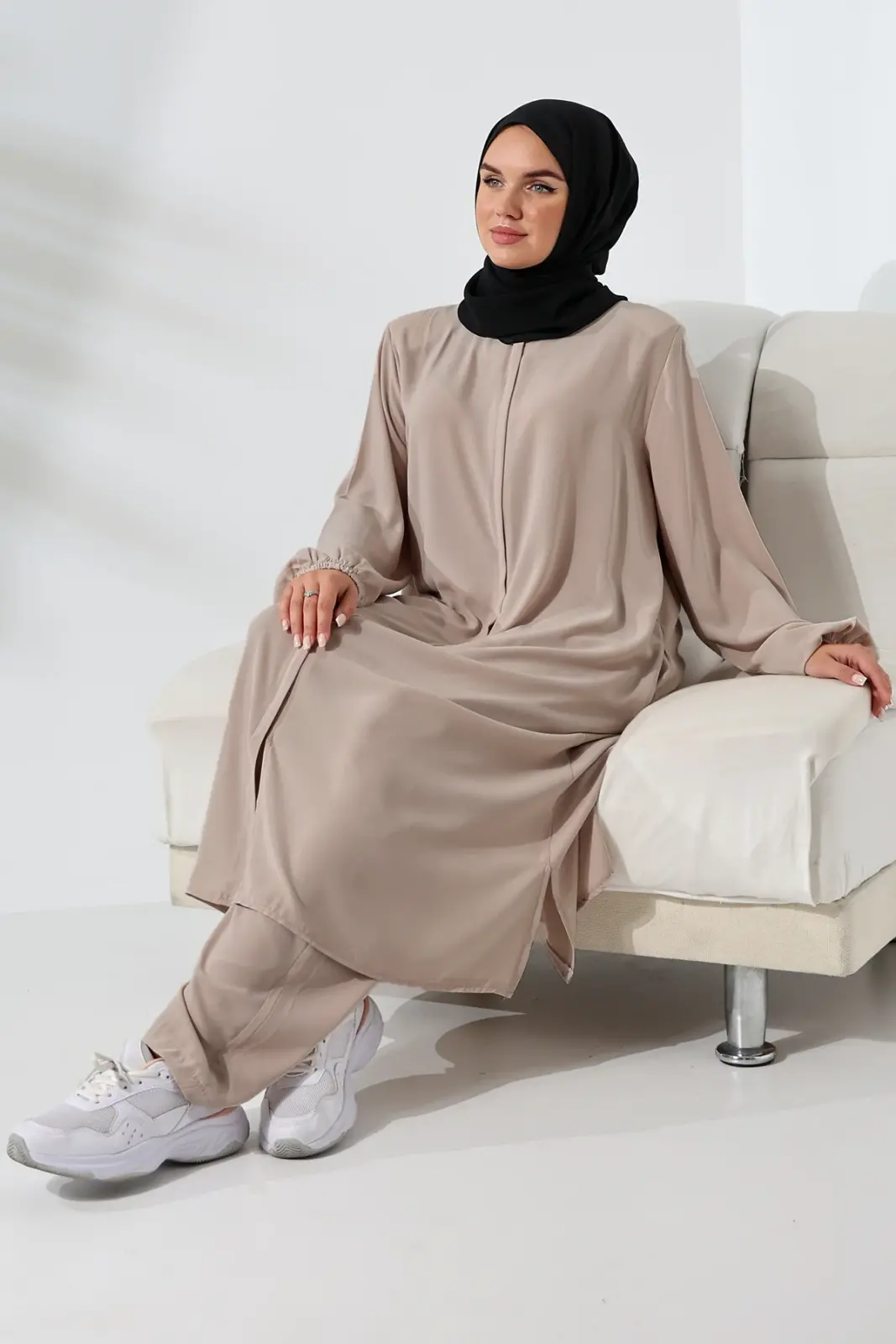 Kadın Medine İpeği Hac Umre Kıyafeti Tesettür İkili Takım - Açık Vizon