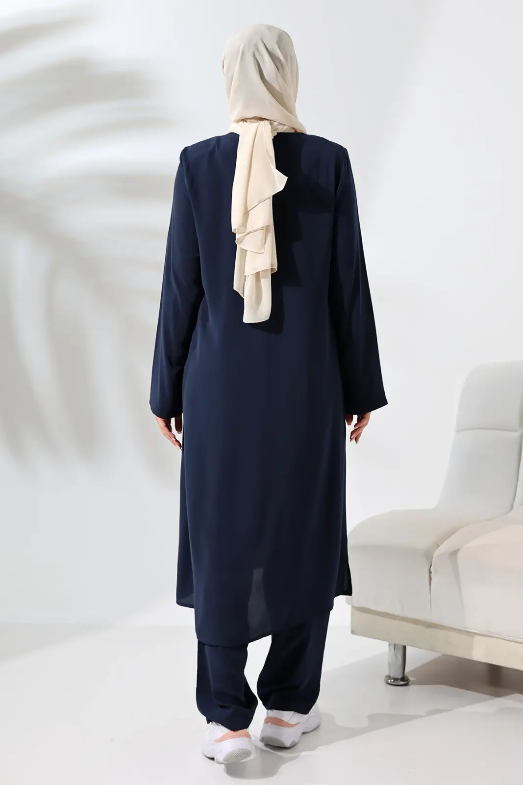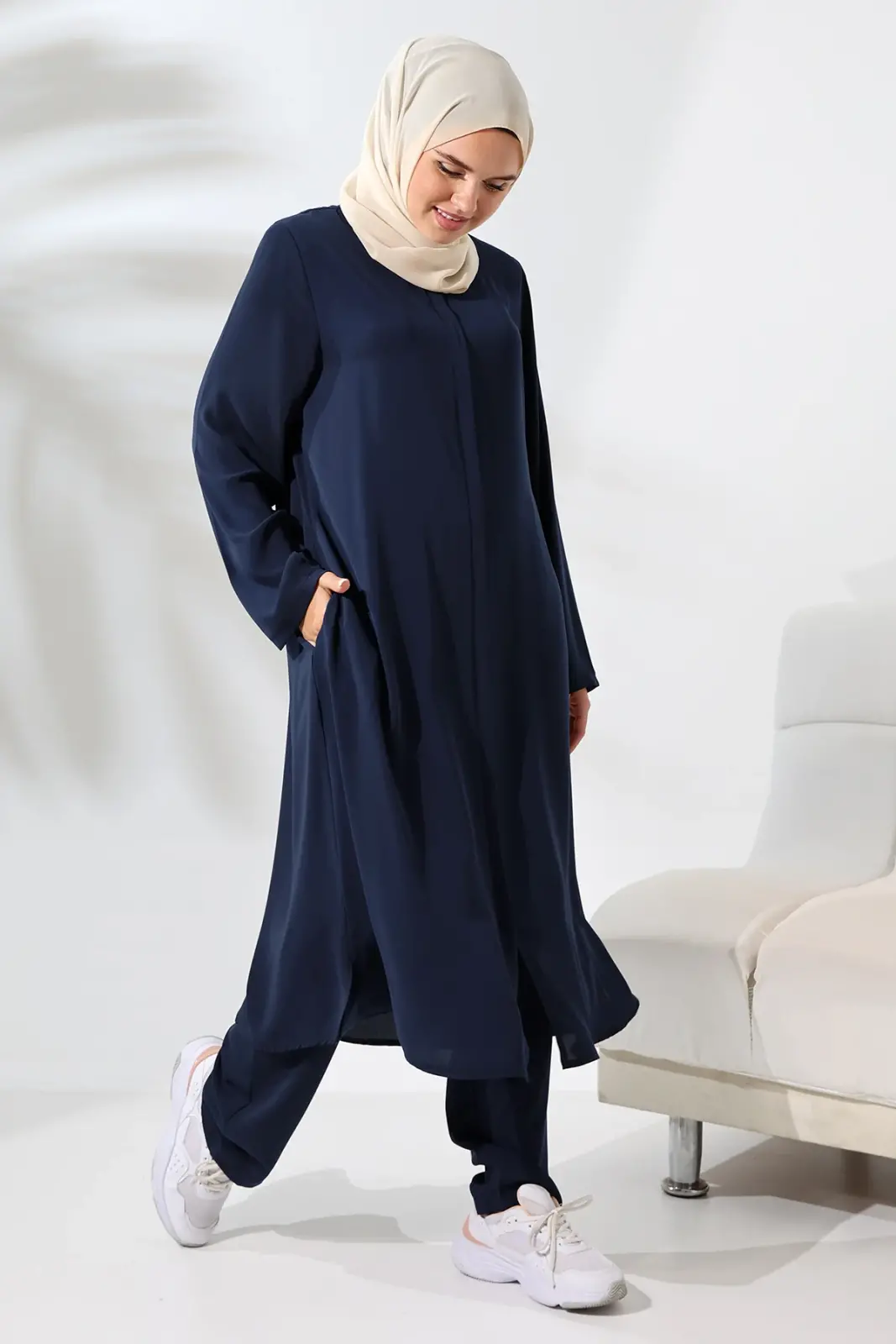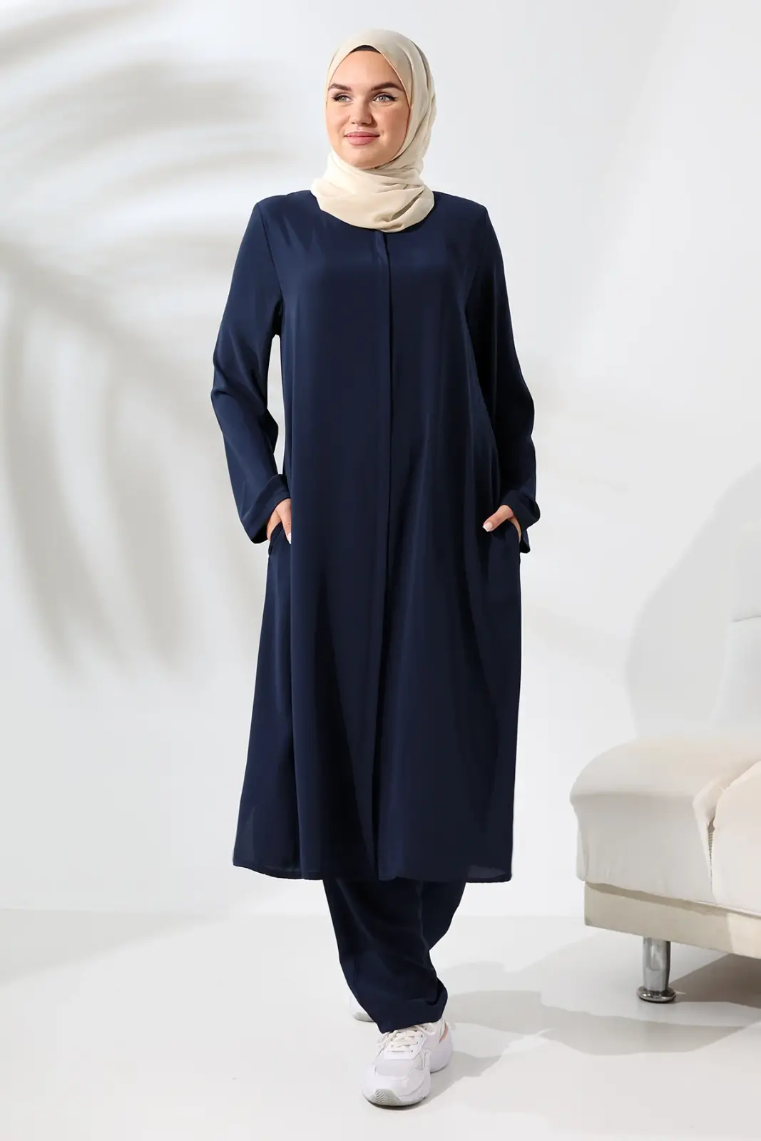 Kadın Medine İpeği Hac Umre Kıyafeti Tesettür İkili Takım - Lacivert