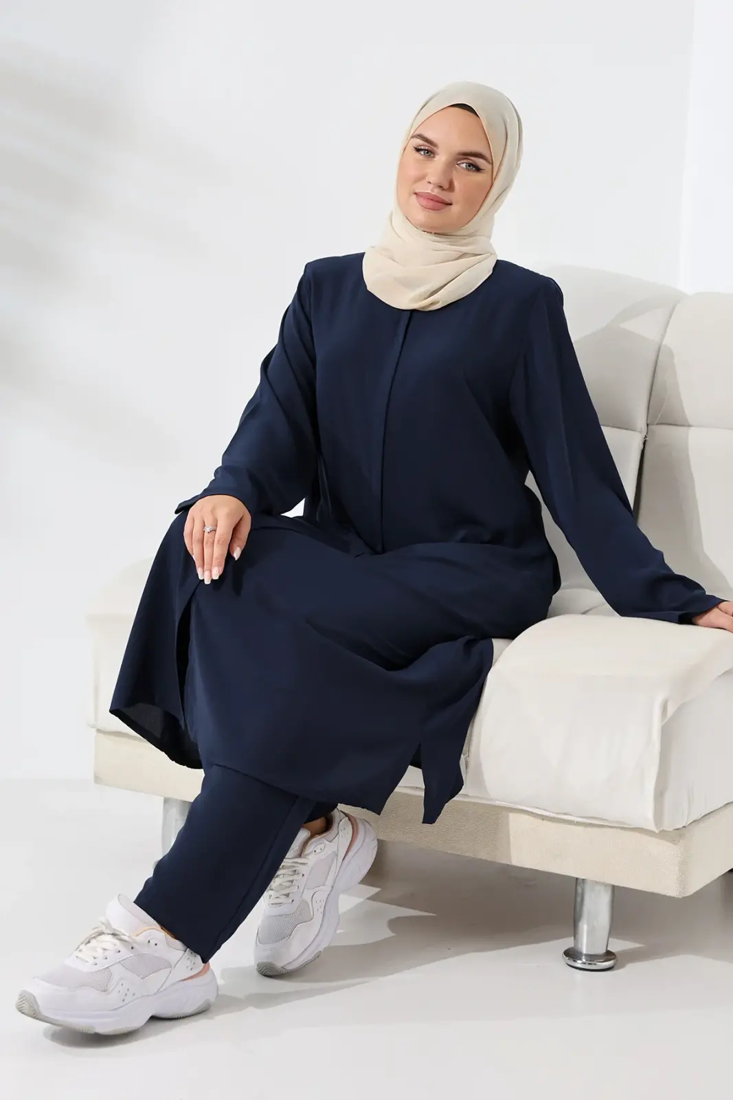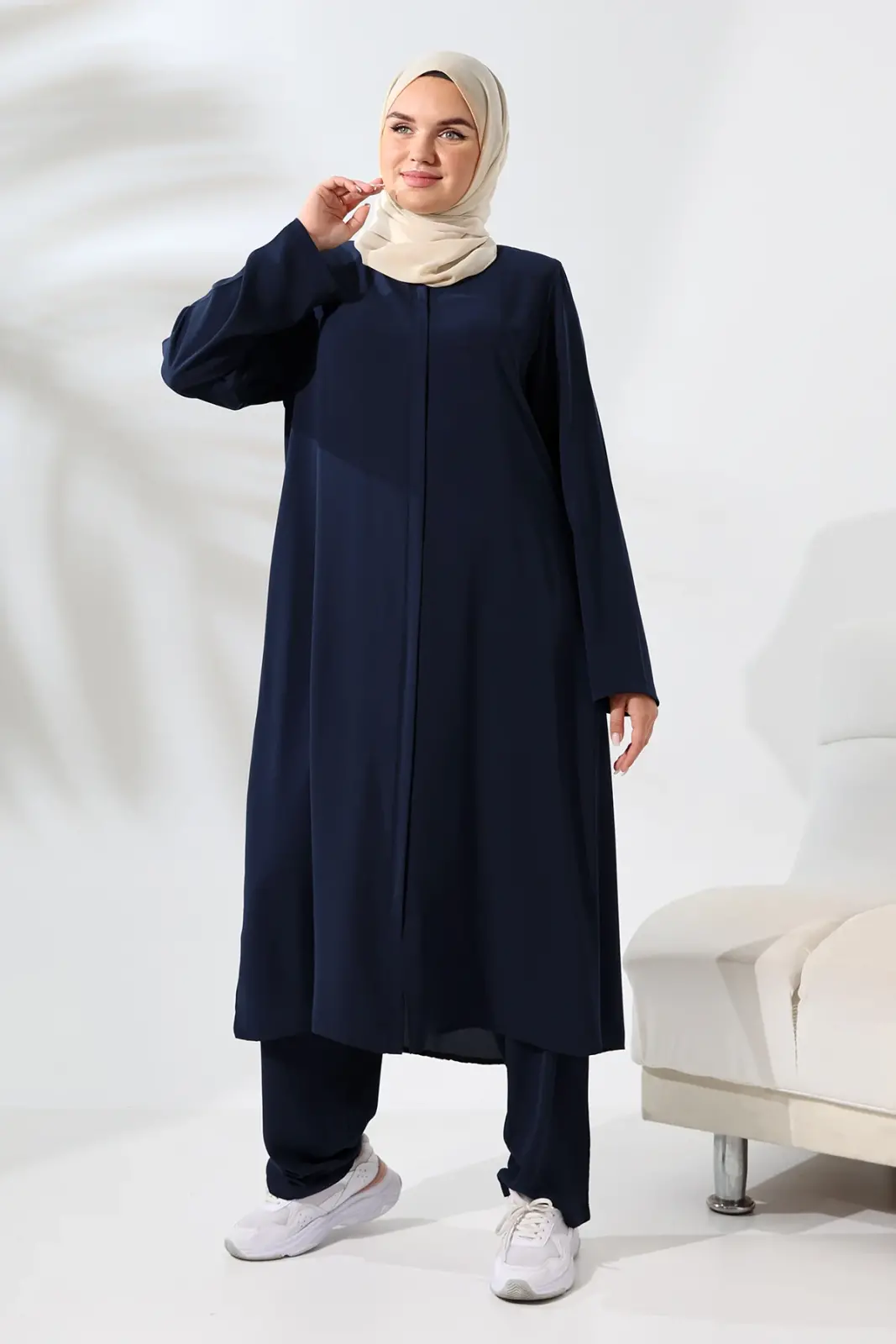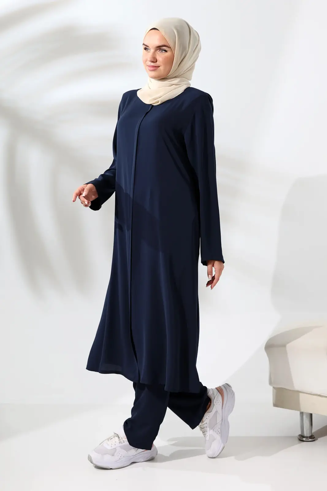 Kadın Medine İpeği Hac Umre Kıyafeti Tesettür İkili Takım - Lacivert