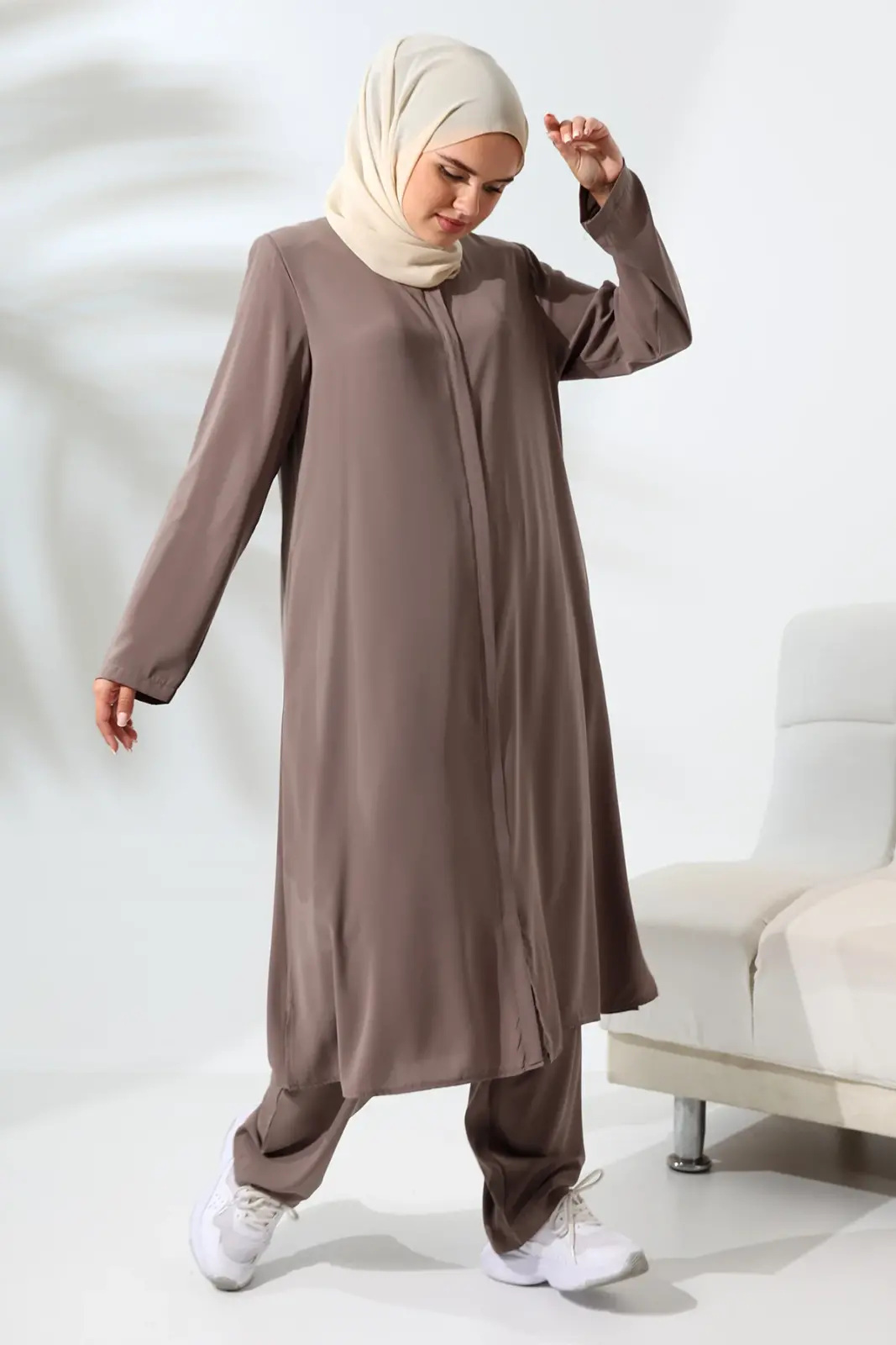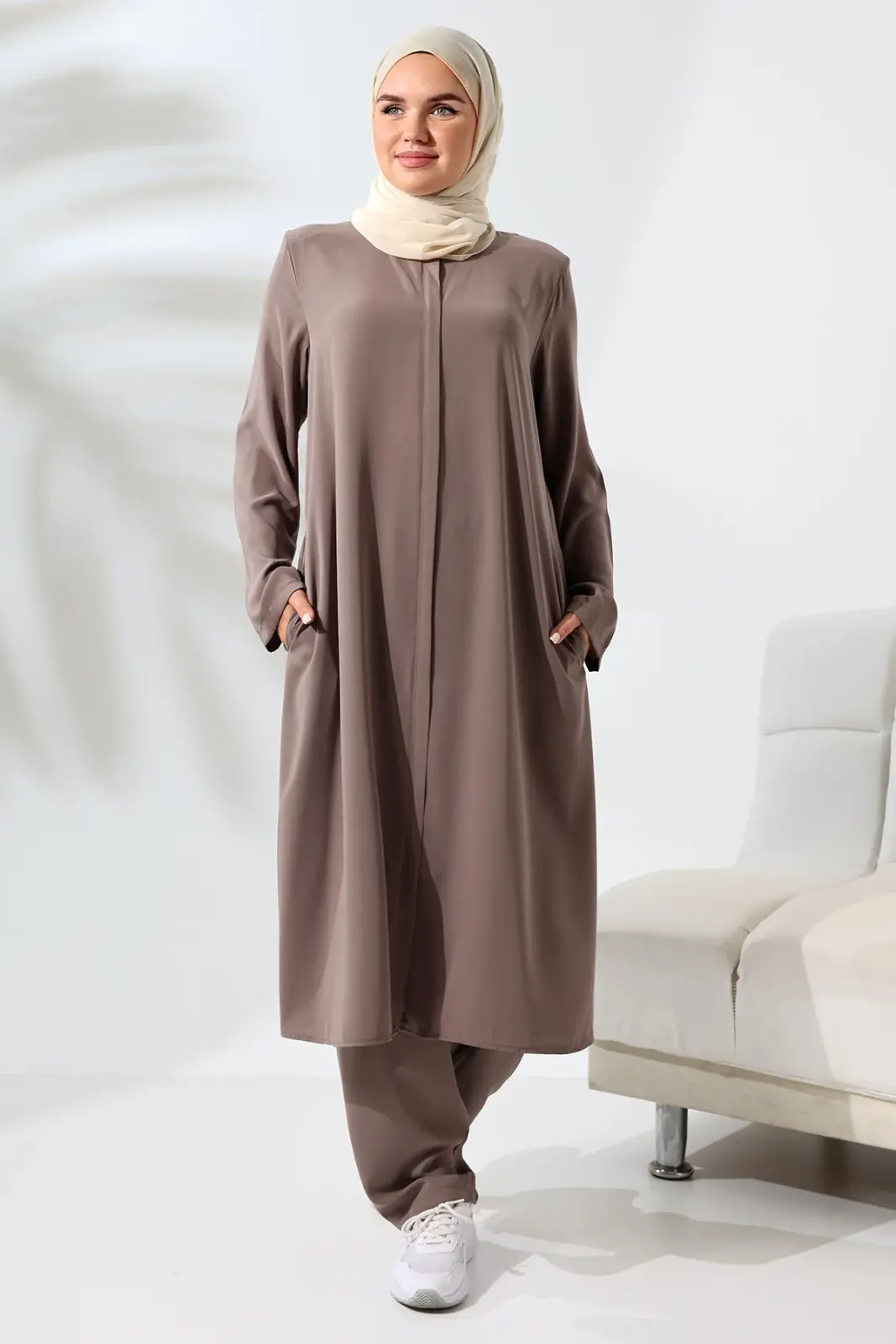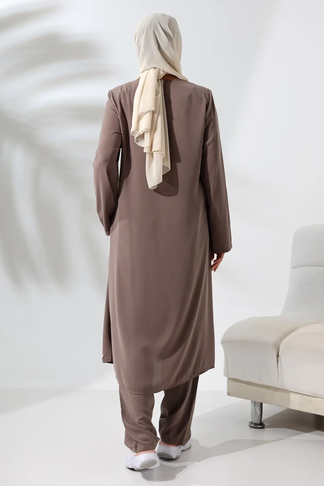 Kadın Medine İpeği Hac Umre Kıyafeti Tesettür İkili Takım - Sütlü Kahve